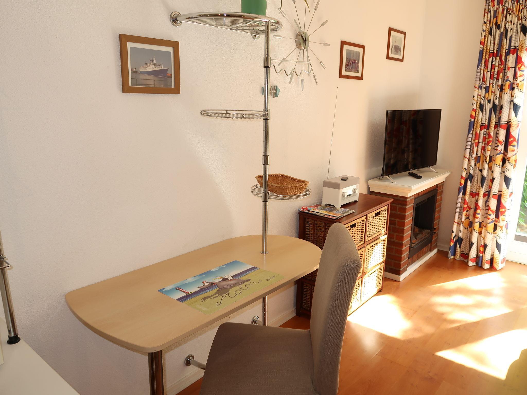 Resort "Tossens". 1 km from the centre of Tossens, on the outskirts, 13 km from the centre of Burhave, 24 km from the centre of Nordenham, 700 m from the sea, in the countryside. In the house: bistro, playroom, central heating system, bicycle rental. Parking at the house. Supermarket 1 km, bus stop 150 m, grass beach 700 m, indoor swimming pool 500 m. Please note: suitable for families. The photograph shows a typical example. All houses/apartments are individually designed/furnished. Guests receive a 50% discount on entry to the Aqua Mundo indoor swimming pool. All other facilities within the park can be used (some for a fee).