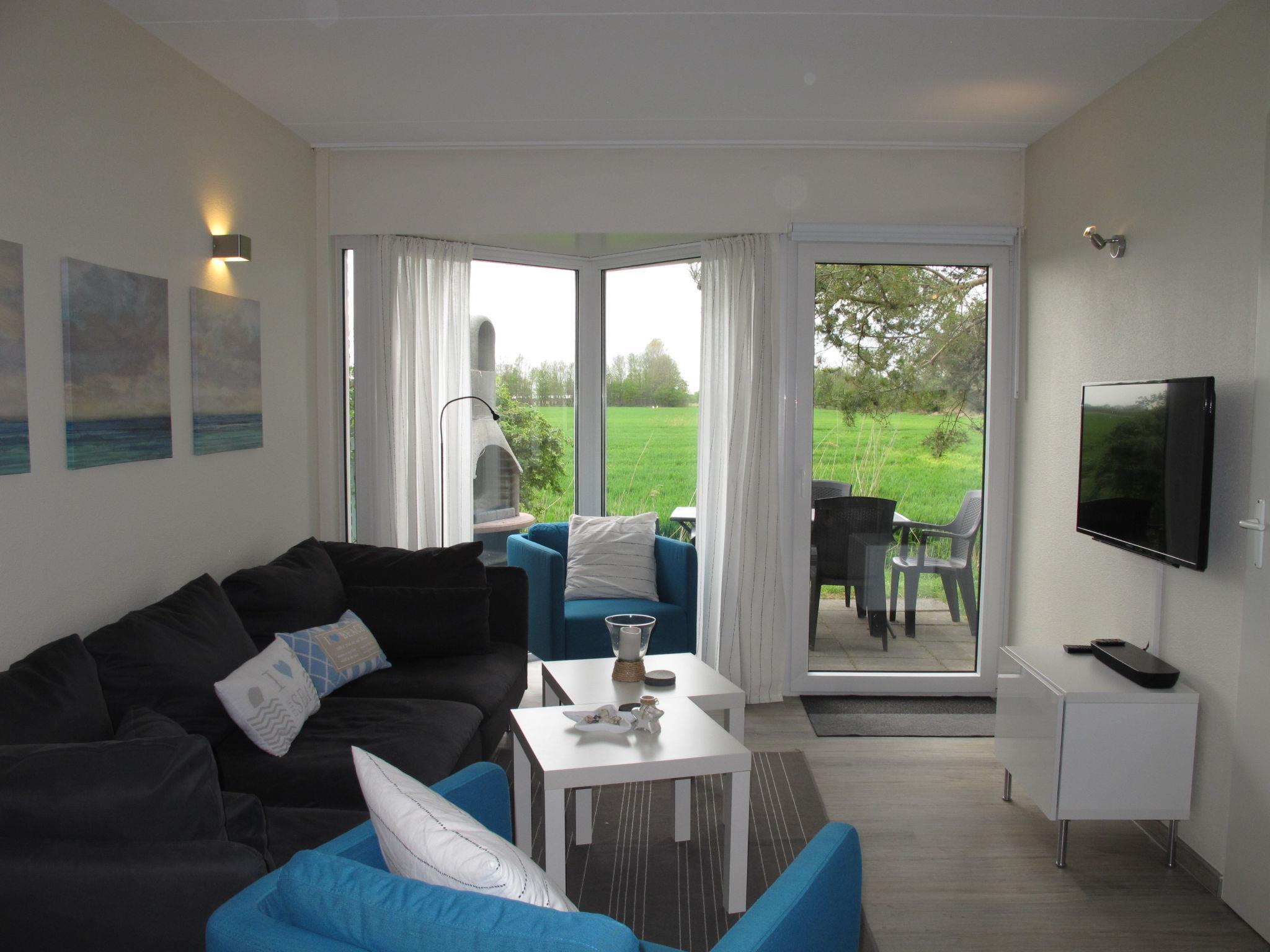 Resort "Tossens". 1 km from the centre of Tossens, on the outskirts, 13 km from the centre of Burhave, 24 km from the centre of Nordenham, 700 m from the sea, 400 m from the beach, in the countryside. Private: property with lawn, parking at the house. Supermarket 1 km, bus stop 150 m, grass beach 700 m, indoor swimming pool 500 m. Please note: suitable for families. The photograph shows a typical example. All facilities within the park can be used (some for a fee). All holiday properties are furnished differently depending on the owner and are well equipped.