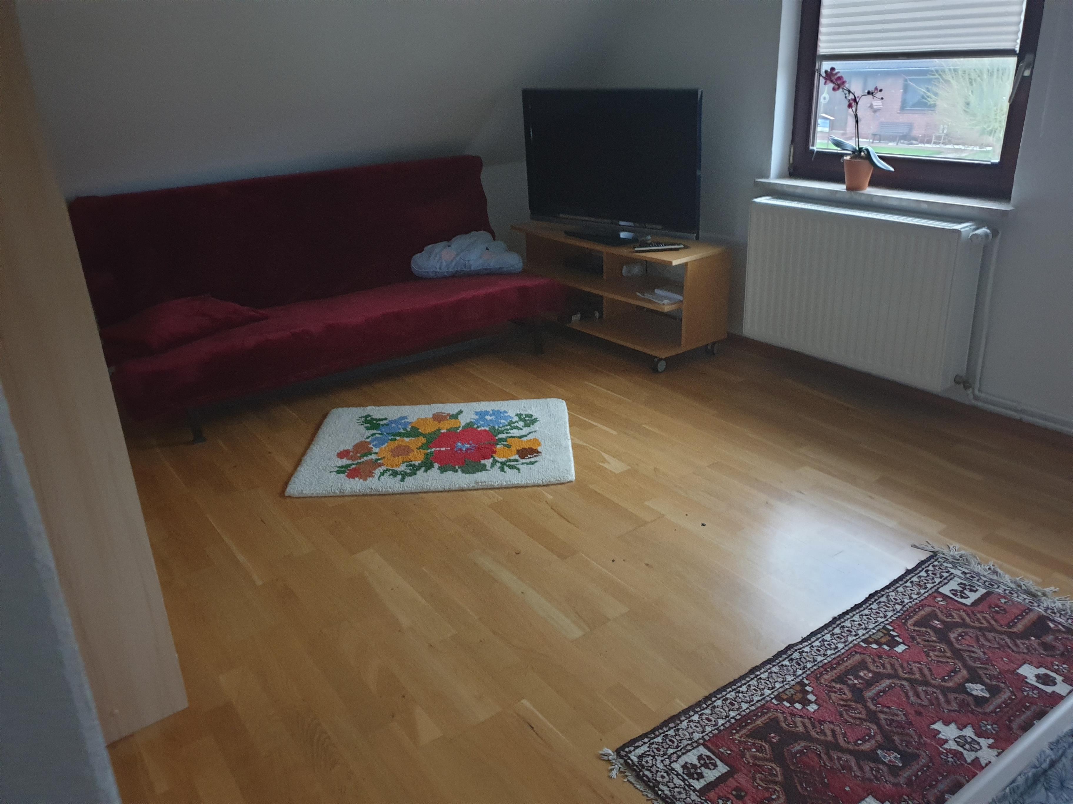 Sie haben einen Wohnbereich mit einer gemütlichen Couchgarnitur, einen Essbereich für alle Personen und einen Kochbereich, der mit einer Kochinsel zum Essbereich abgegrenzt ist. Die Küche ist vollausgestattet, Geschirrspüler, Mikrowelle, Backofen, Toaster, Kaffeemaschine, genügend Geschirr etc. Zwischen der Essecke und dem Wohnbereich gibt es einen Kaminofen, gegenüber wurde der Fernseher so angebracht, dass Sie von allen Plätzen aus schauen können. An Schlafgelegenheiten im Obergeschoss werden Ihnen zwei Zimmer mit Doppelbett und eines mit französischem Bett angeboten. Dort finden Sie auch ein Badezimmer mit Dusche vor, ein zweites befindet sich im Erdgeschoss, dort gibt es außerdem ein Gäste-WC. Grillen können Sie auf der Terrasse, Gartenmöbel vorhanden. Sie haben genügend PKW-Stellplätze. Bettwäsche und Handtücher können gegen Gebühr entliehen werden, es ist eine Waschmaschine vorhanden. Ein Kinderbett und Hochstuhl sind vorhanden. Das W-Lan wird kostenfrei angeboten und gegen Gebühr (zahlbar vor Ort) ist eine kleine Sauna im Garten vorhanden.