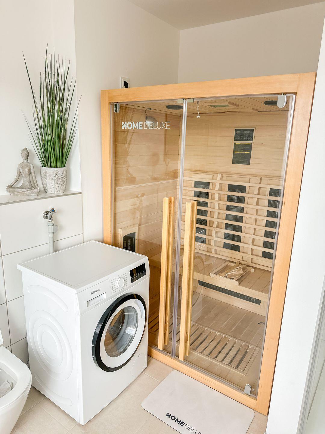 Ein echtes Highlight ist das großzügige Bad im Obergeschoss: bodengleiche Dusche, Zugang zur Dachterrasse und eine hochwertige Infrarotsauna – dein privater Spa-Moment mit Ausblick.