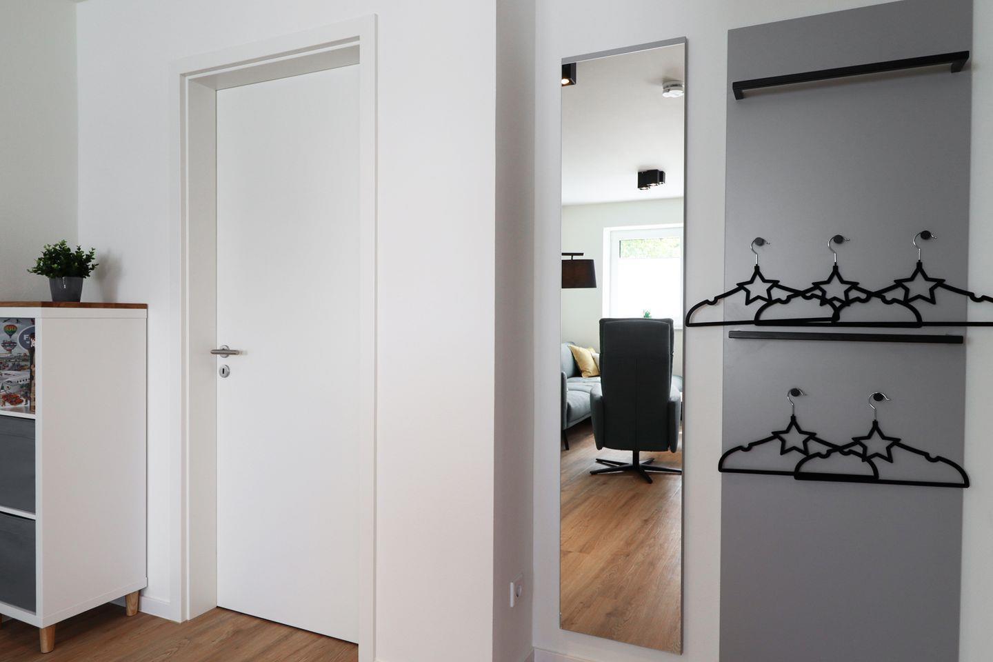 Moderne Ferienwohnung im Obergeschoss des neuen Ferienkomplexes KÜSTE33 in Tossens. Zwei Schlafzimmer mit Boxspringbetten, privater Sauna und Balkon bieten dir Komfort und Erholung. Familienfreundliche Ausstattung, eigener Parkplatz, Waschmaschine und kontaktloser Check-in inklusive. Nur 300 m bis zum Deich und 600 m zum Friesenstrand – ideal für Strandtage und Ausflüge.