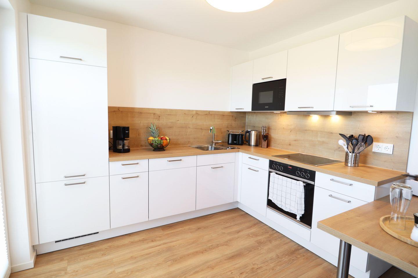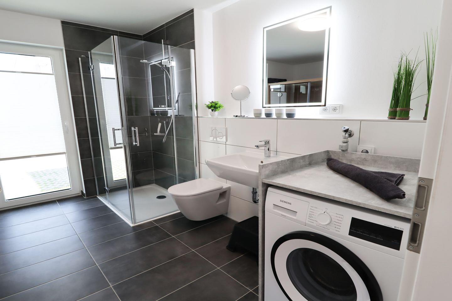 Kostenfreies WLAN, eine Waschmaschine, Smart-TV, umweltfreundliche Bauweise und ein eigener Pkw-Stellplatz direkt am Haus runden das Angebot ab.