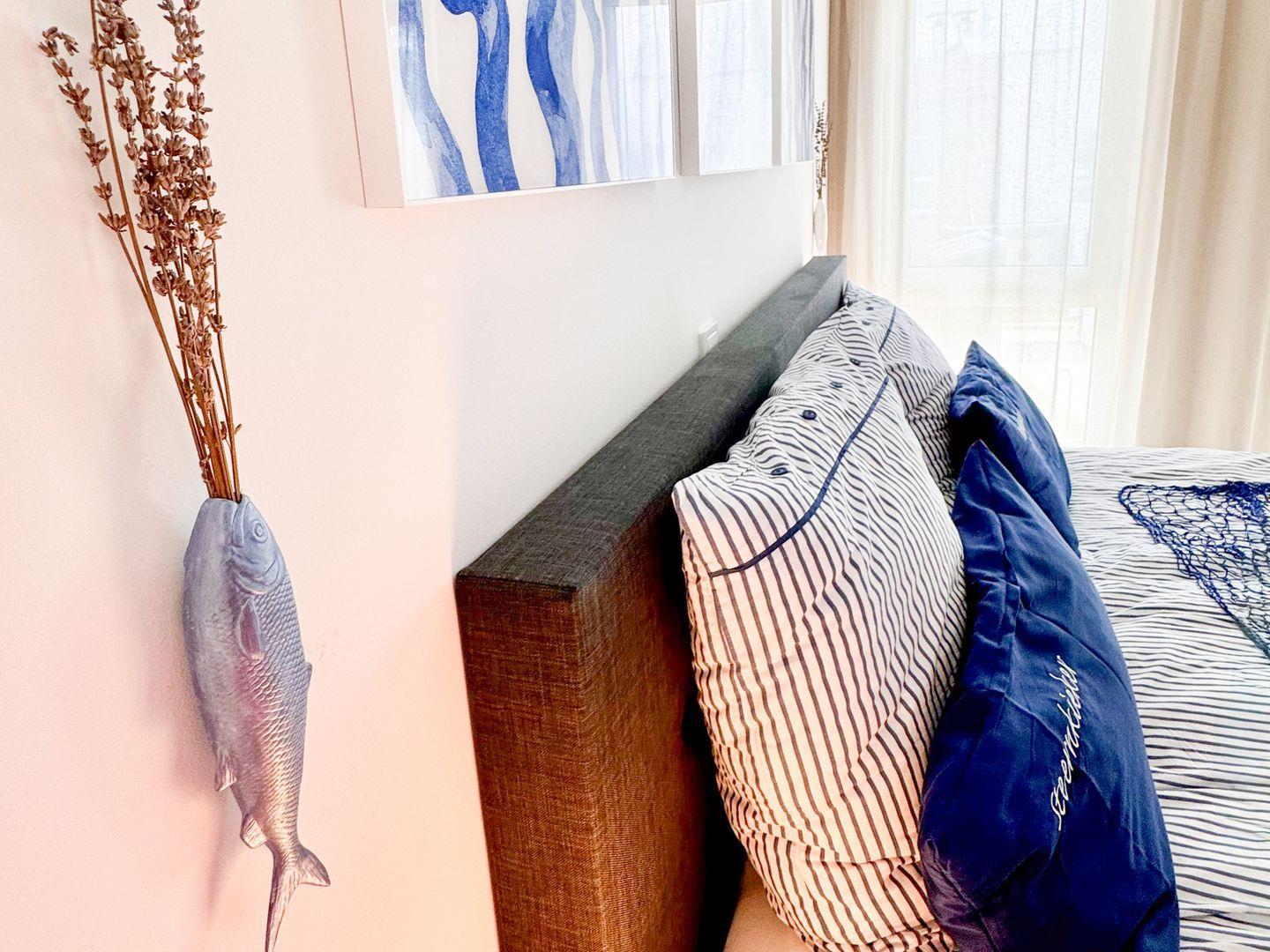 Das Schlafzimmer bietet ein komfortables Boxspringbett und ruhige Farbtöne für erholsame Nächte. Verdunkelungsvorhänge sorgen zusätzlich für einen ungestörten Schlaf.