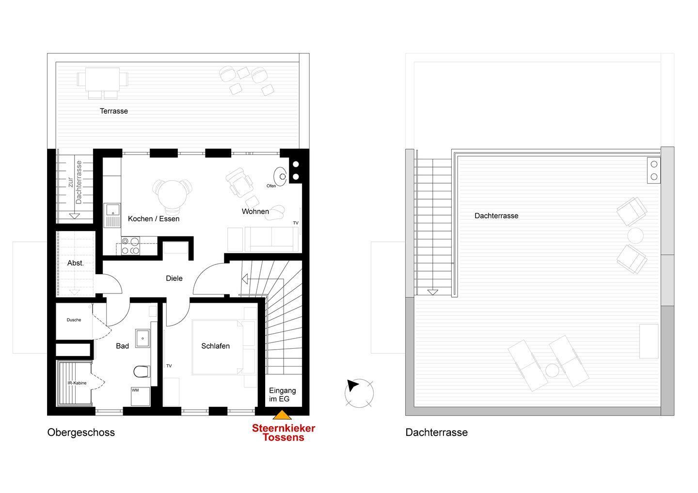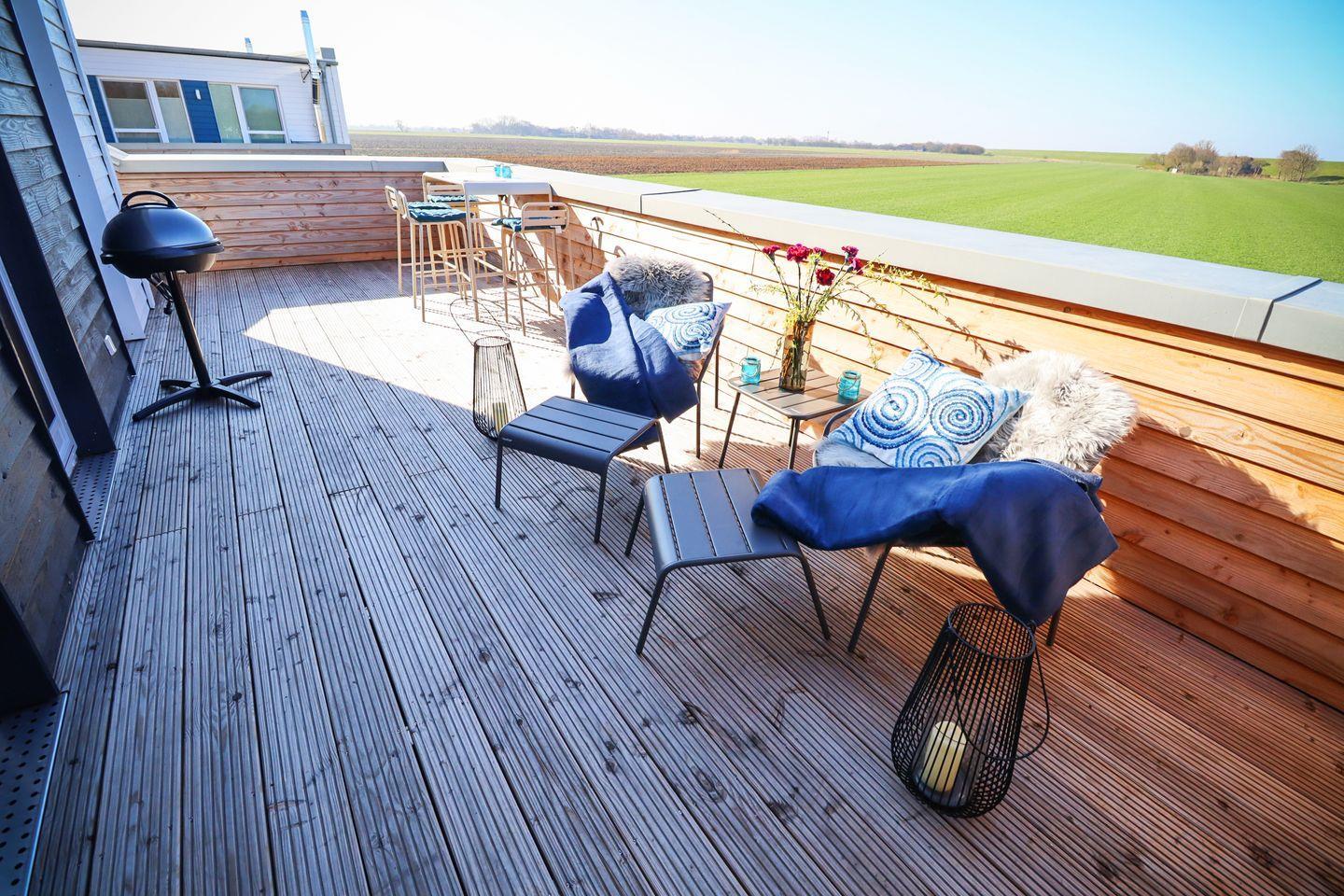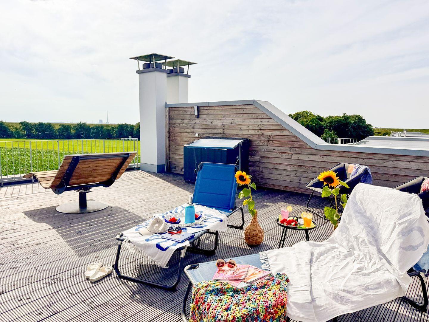 Ob Sundowner in der gemütlichen Sitzecke oder Entspannung auf der Design-Holzliege für zwei – die beiden Dachterrassen sind echte Highlights. Bei klarer Nacht kannst du hier sogar die Sterne beobachten – ganz im Sinne des Namens Steernkieker.