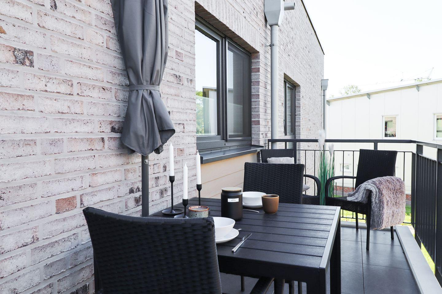 Im offenen Wohnbereich kannst du dich auf ein gemütliches Schlafsofa, einen Smart-TV und einen einladenden Esstisch freuen. Große Fenster bringen viel Licht in den Raum, und der direkte Zugang zum Balkon macht deinen Urlaub perfekt. Die offene Küche ist voll ausgestattet – inklusive Spülmaschine, Backofen und Kaffeemaschine.