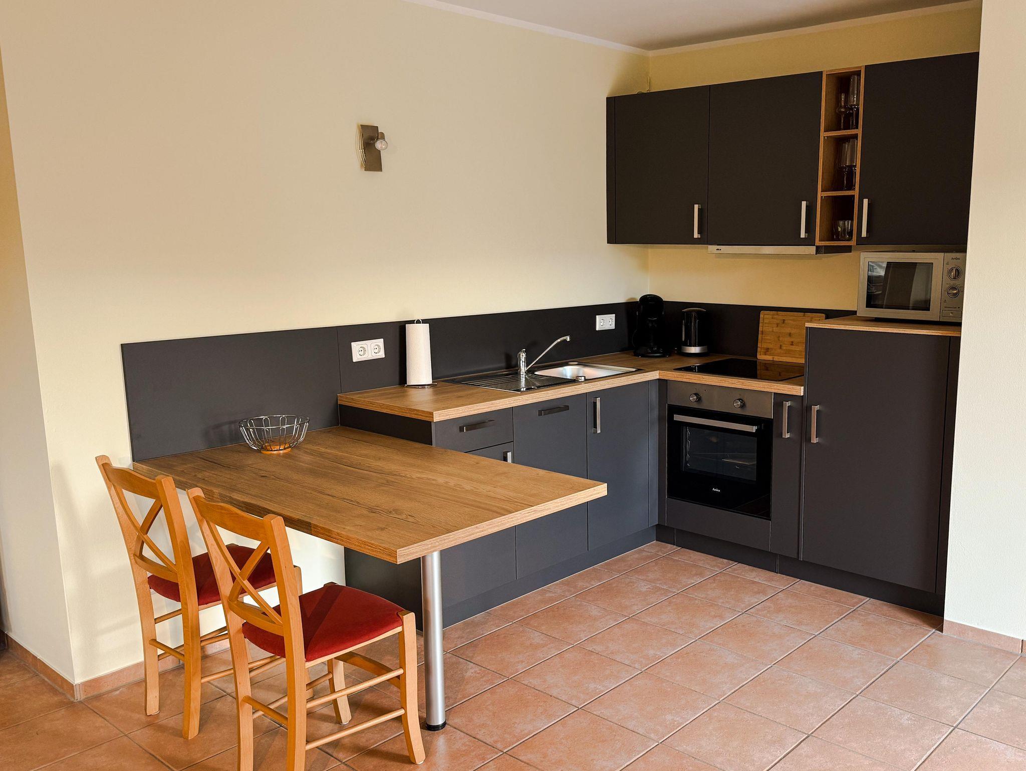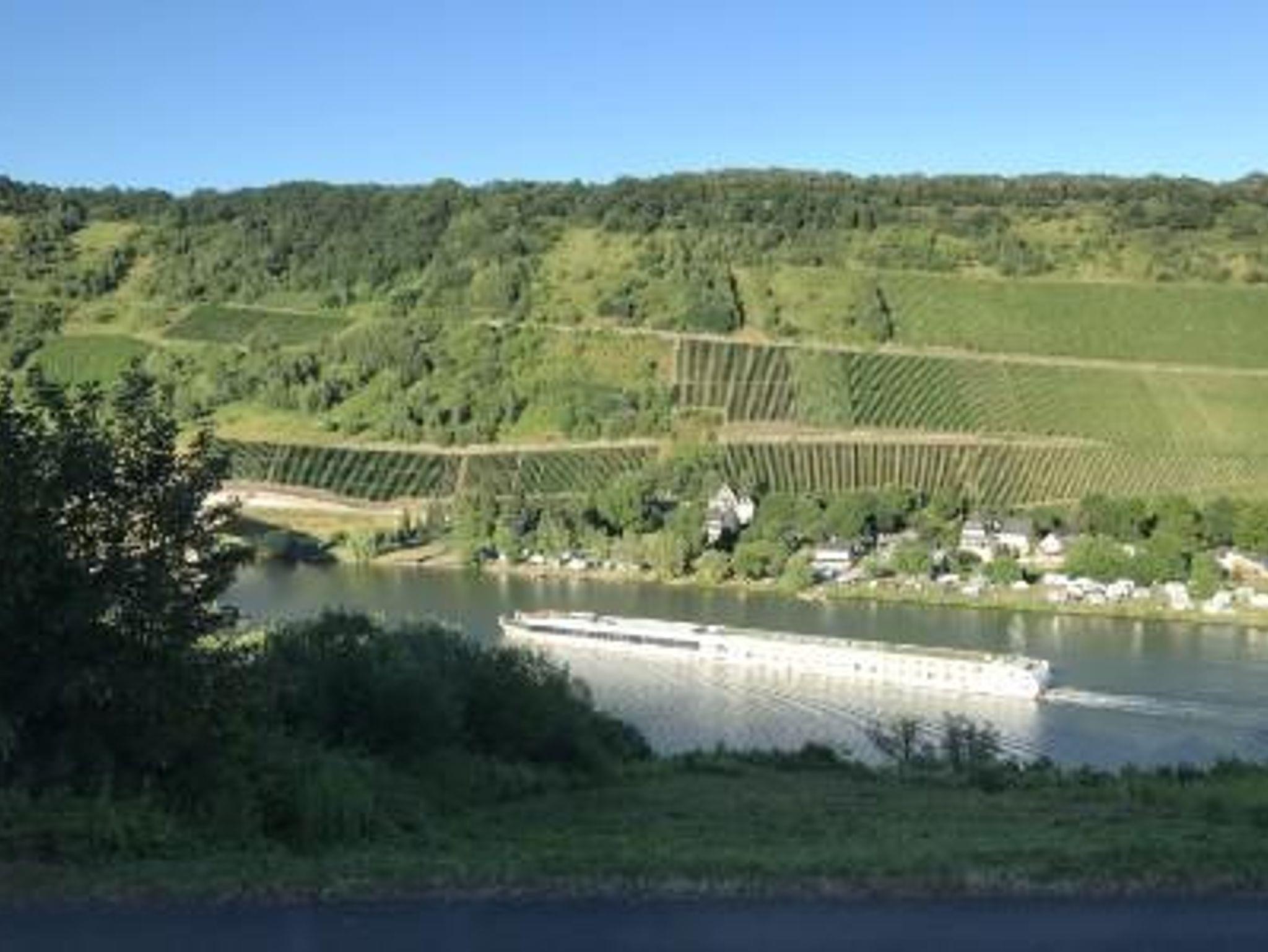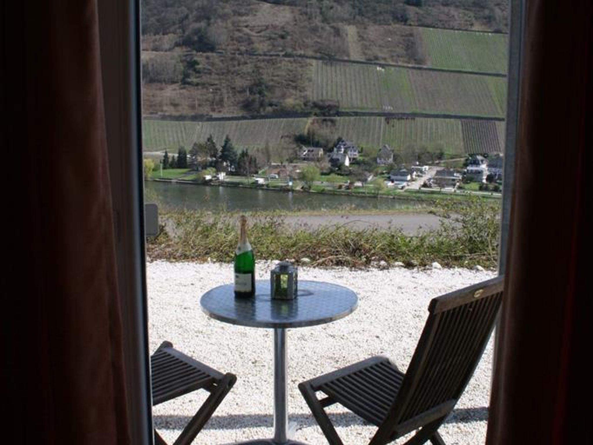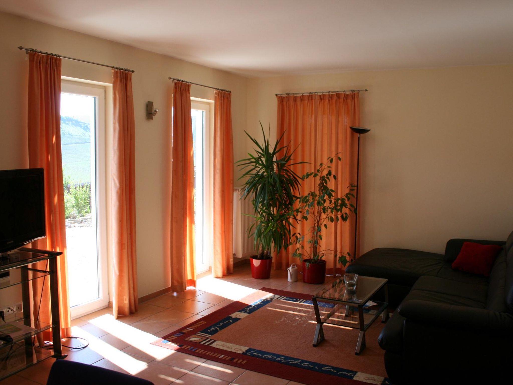 Großzügige Ferienwohnung (55 m²) mit unverbautem Moselblick und geschmackvoller Einrichtung. Wohn-/Essbereich mit Einbauküche incl. Spülmaschine und Mikrowelle; SAT-TV; WLAN; separates Schlafzimmer mit Doppelbett.