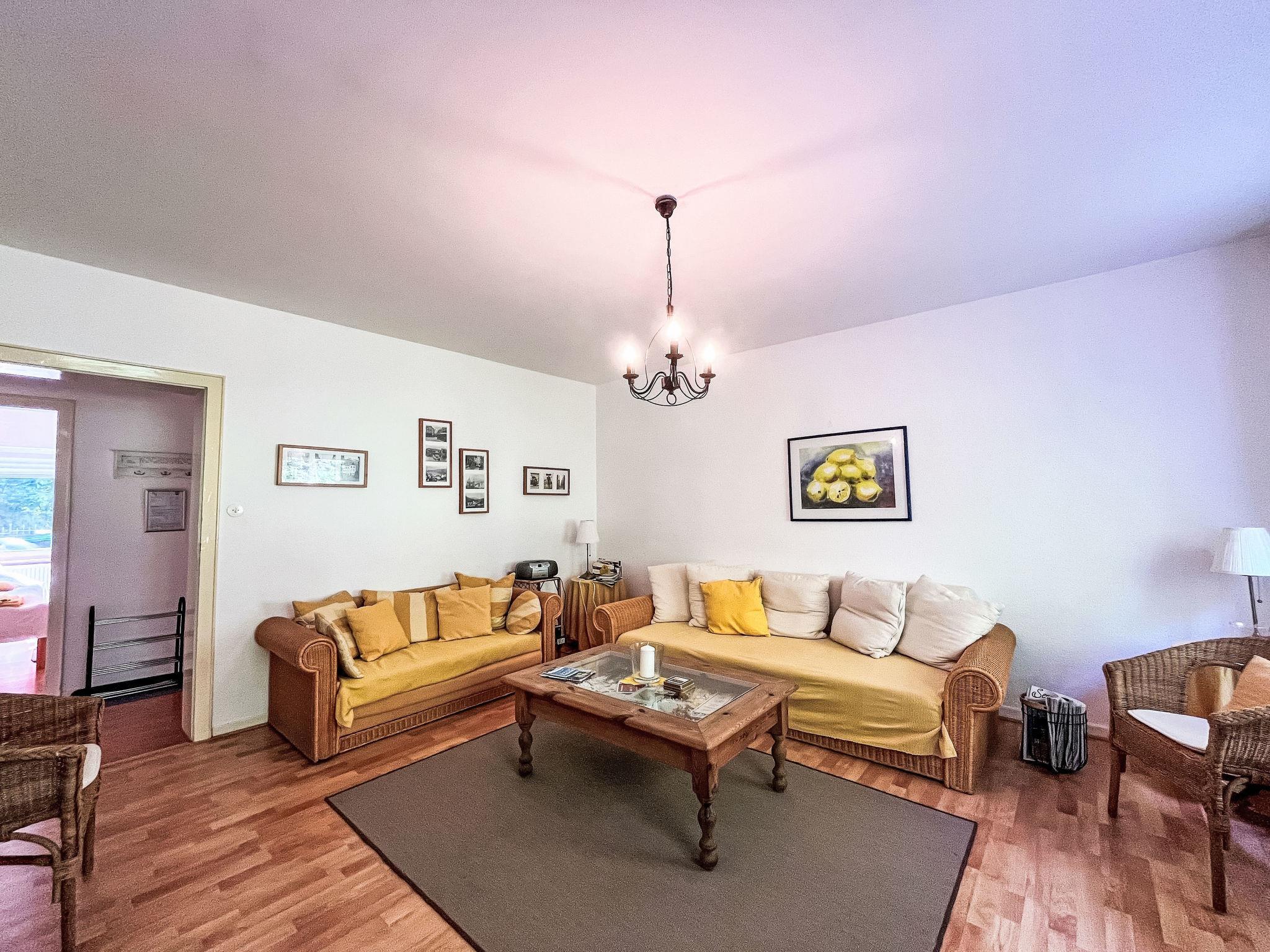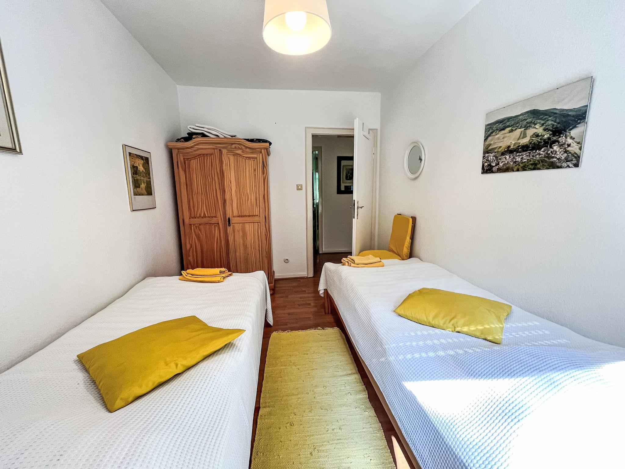 3-room apartment 75 m2, on the upper ground floor. Bright, cosy furnishings: living room with satellite TV, radio, CD-player and DVD. Exit to the balcony. 1 room with 2 beds. 1 double bedroom with radio. Kitchen (4 hot plates, oven, kettle, electric coffee machine) with dining table. Exit to the balcony. Bath/WC. Balcony 4 m2. Balcony furniture. Facilities: Internet (WiFi, free). Please note: non-smokers only. Smoke alarm.