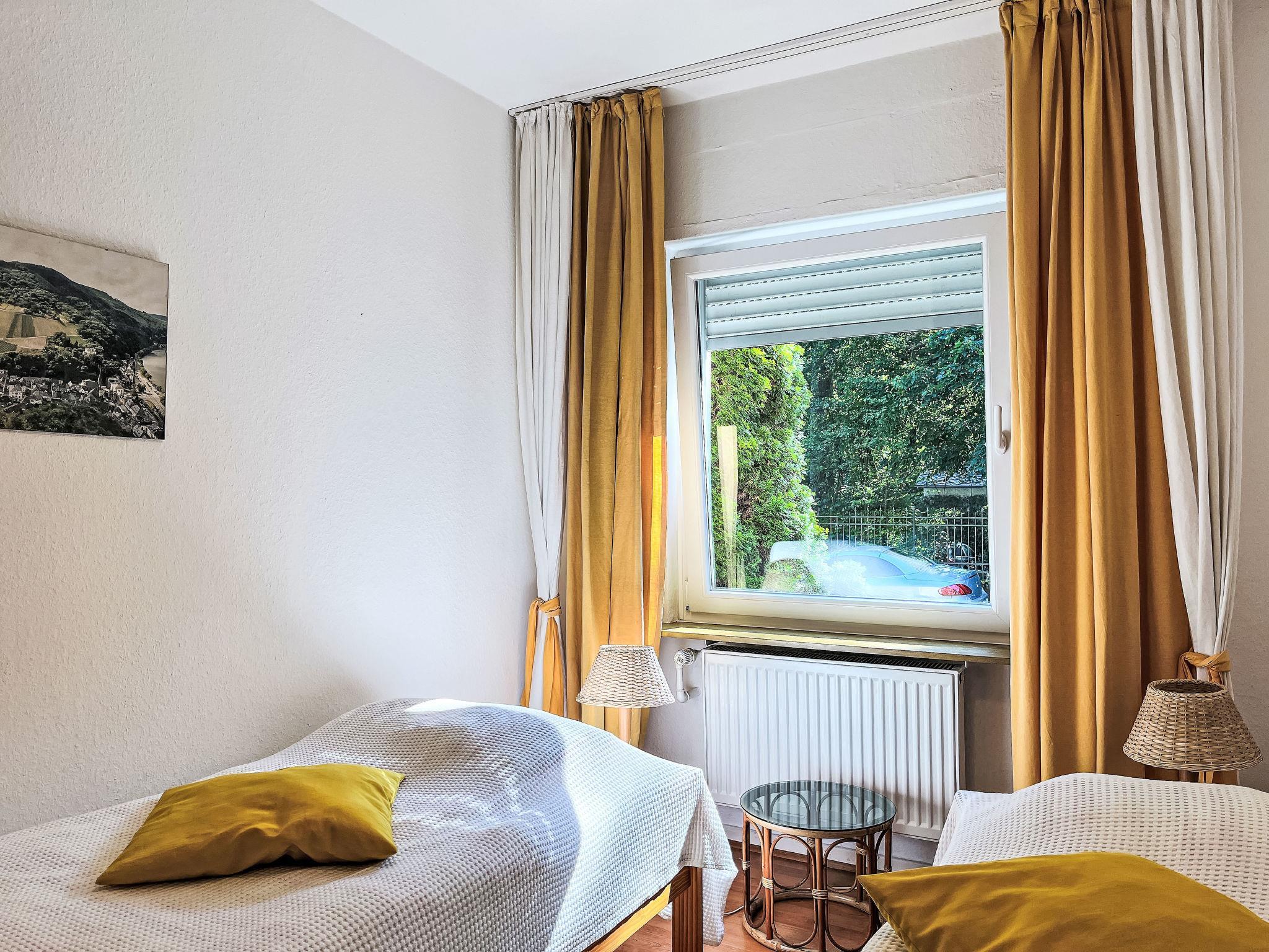 Cosy apartment house "Wildbadstrasse". In the district of Trarbach, 2 km from the centre of Traben, 1.5 km from the river. For shared use: small, well-kept garden with lawn for sunbathing. In the house: central heating system. Parking on the premises, public parking on the road. Shop 800 m, supermarket 1 km, restaurant 200 m, bicycle rental 600 m, bus stop 20 m, railway station 3 km, outdoor swimming pool 8 km, thermal baths "Moseltherme" 500 m. Golf course (18 hole) 25 km, tennis 50 m, minigolf 100 m.