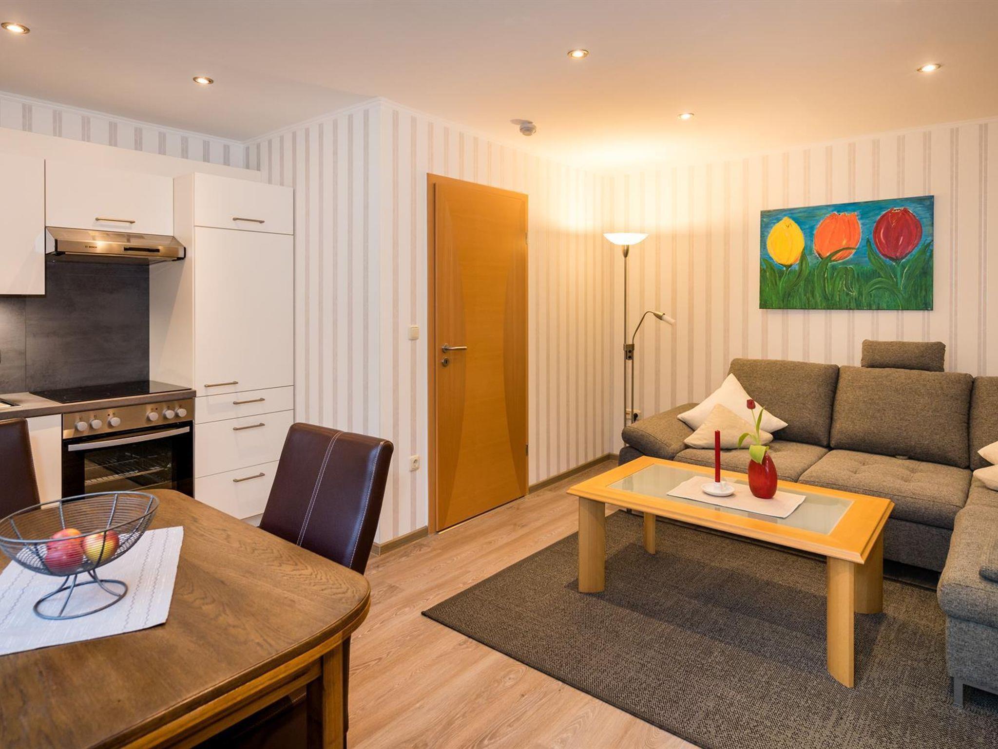 54 m² Wohnung mit schöner Wohnküche (Spülmaschine), 1 Doppelschlafzimmer, SAT-TV, Radio, (Klappbett und Kinderbett für 3. Person vorhanden, Zustellmöglichkeit im Wohn- oder Schlafzimmer) - NICHTRAUCHERWOHNUNG