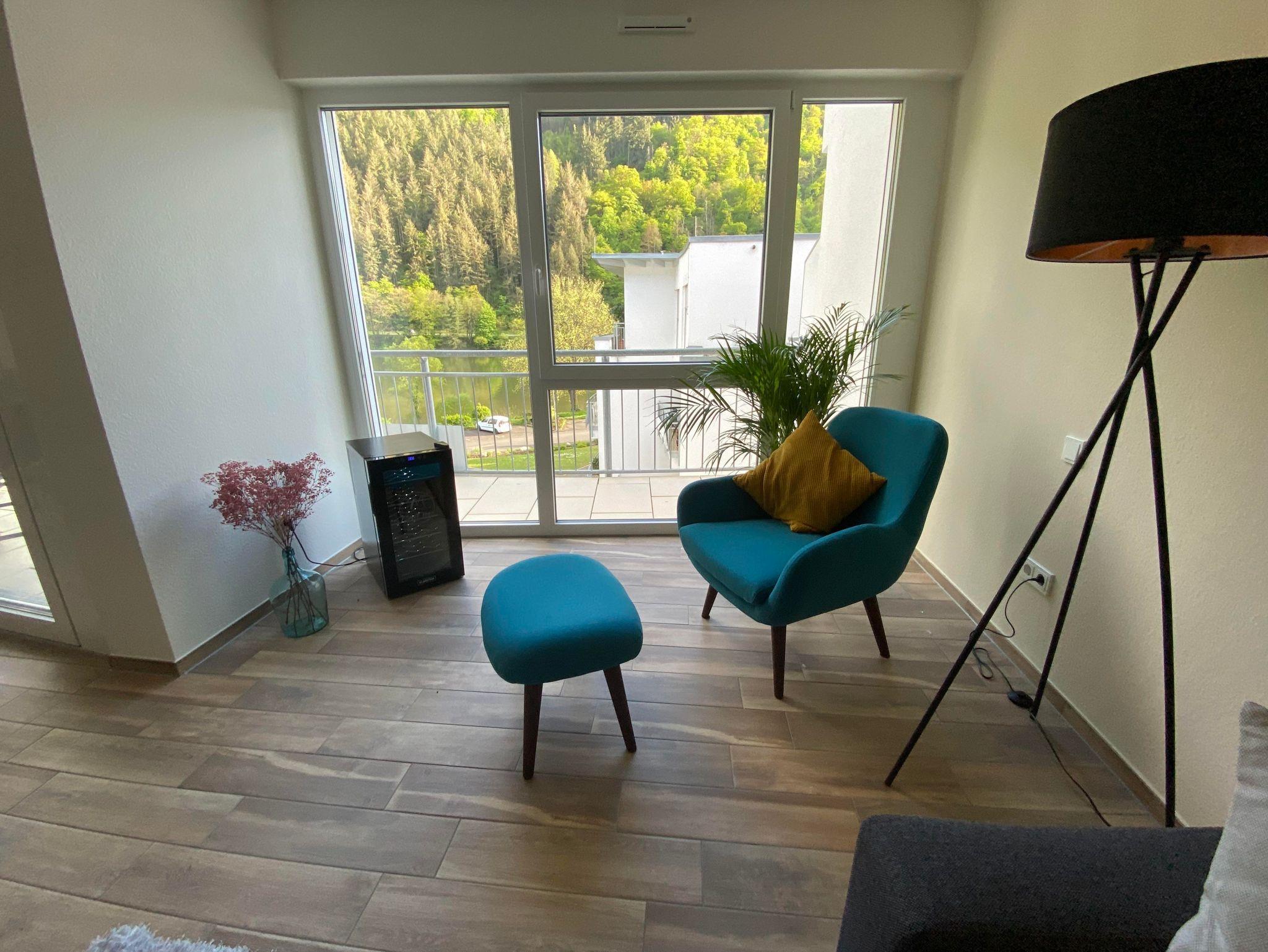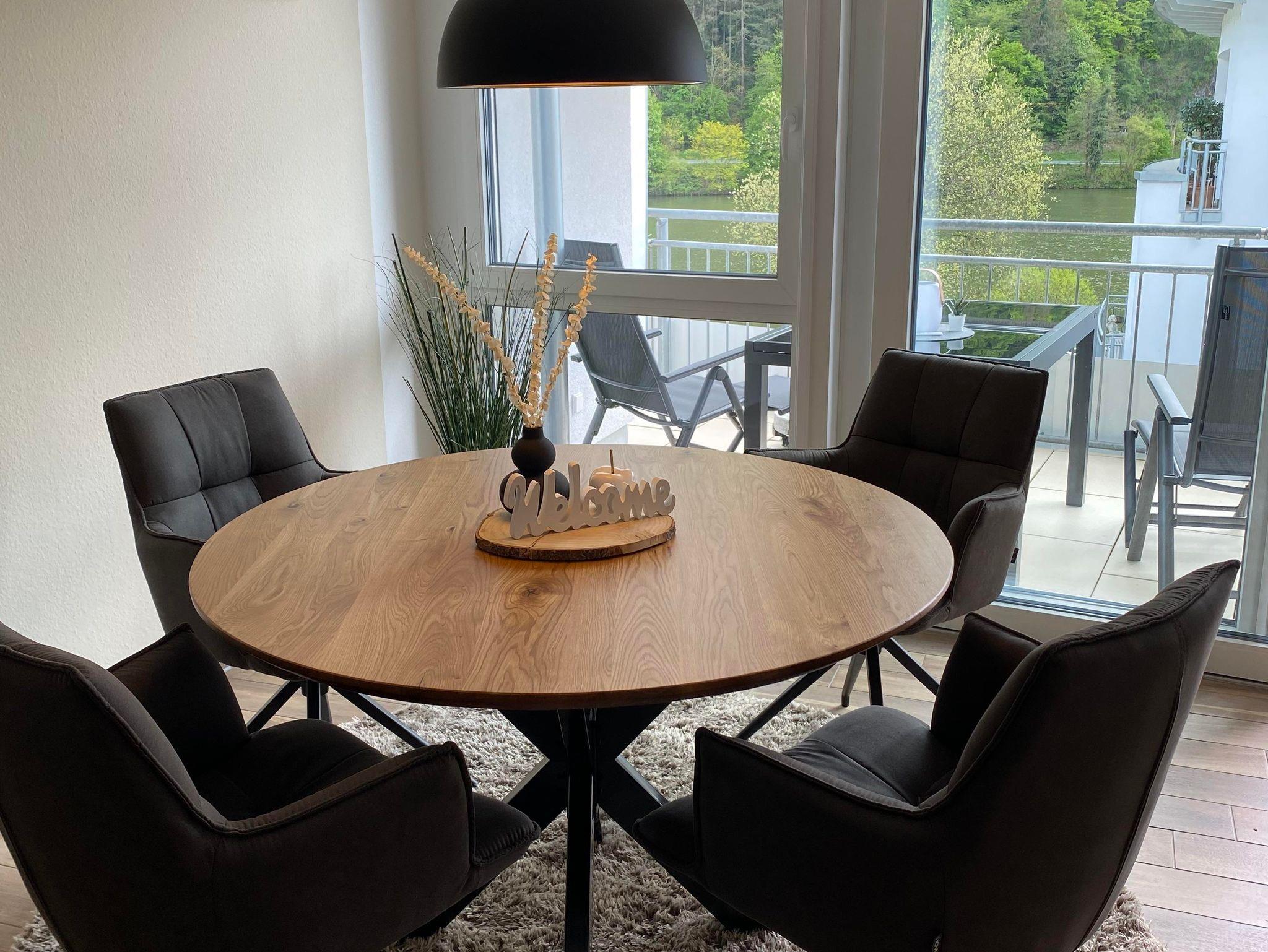 Die 90 qm große Ferienwohnung Mosel 106,5 befindet sich in der 2018 erbauten modernen Wohnanlage Moselpark in Traben-Trarbach. Direkt an der Mosel gelegen bietet sie Ruhe und einen malerischen Blick auf die Mosel und das Wahrzeichen der Stadt, die Grevenburg, die von hier aus gut zu sehen ist.