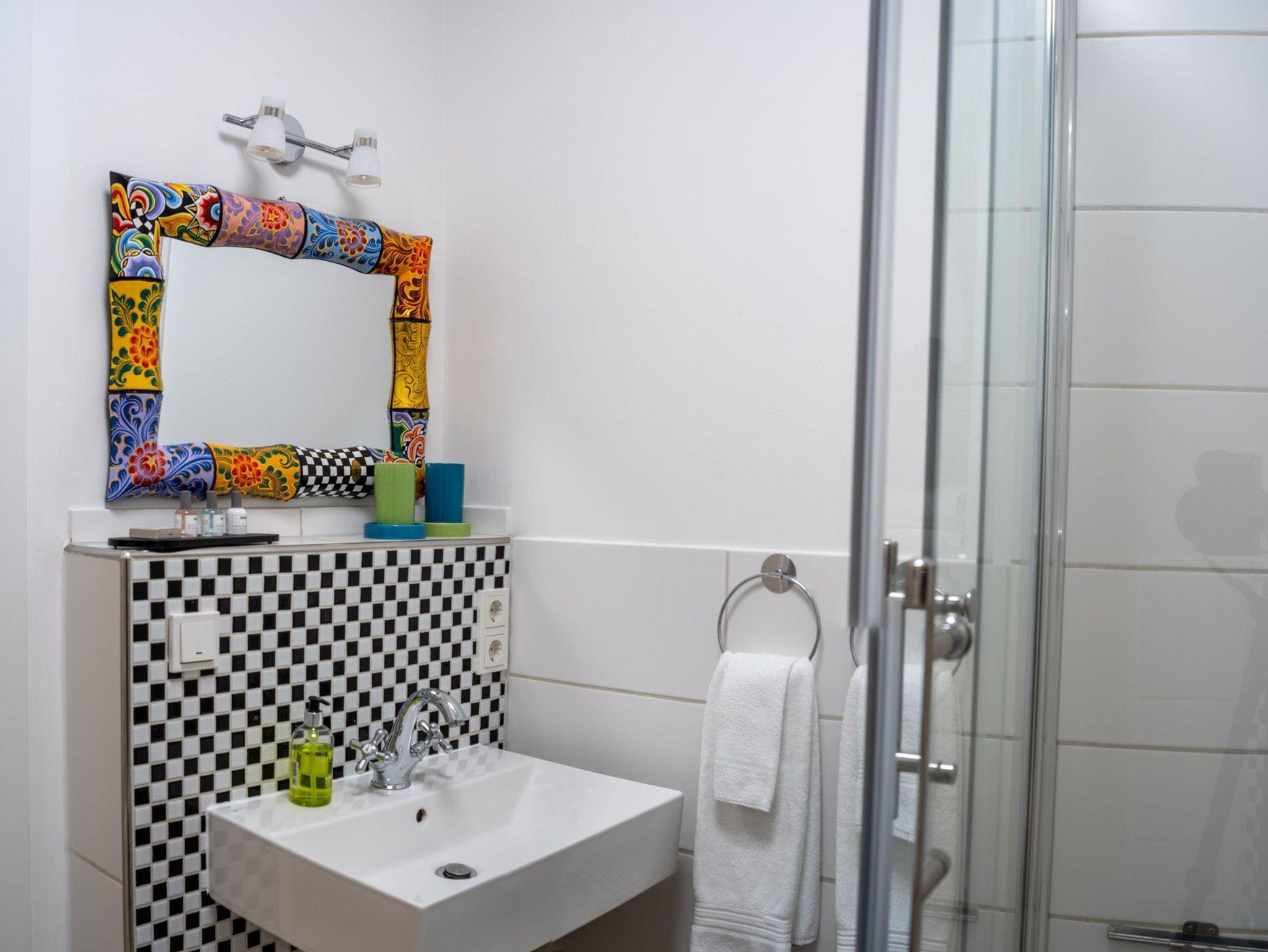 Dieses traumhafte und sehr kreativ eingerichtete Apartment im 1.OG verfügt über viele Annehmlichkeiten die einen entspannten Aufenthalt in mitten der Weinstadt Traben-Trarbach versprechen. Dieses Bijou verfügt über ein charmantes Wohn-Esszimmer, mit Blick zur Stadt. In der gut ausgestatteten Küche lassen sich vielerlei Köstlichkeiten zaubern. Eine Regenwasserdusche macht selbst ein kleines Badezimmer zur Wellness Oase.