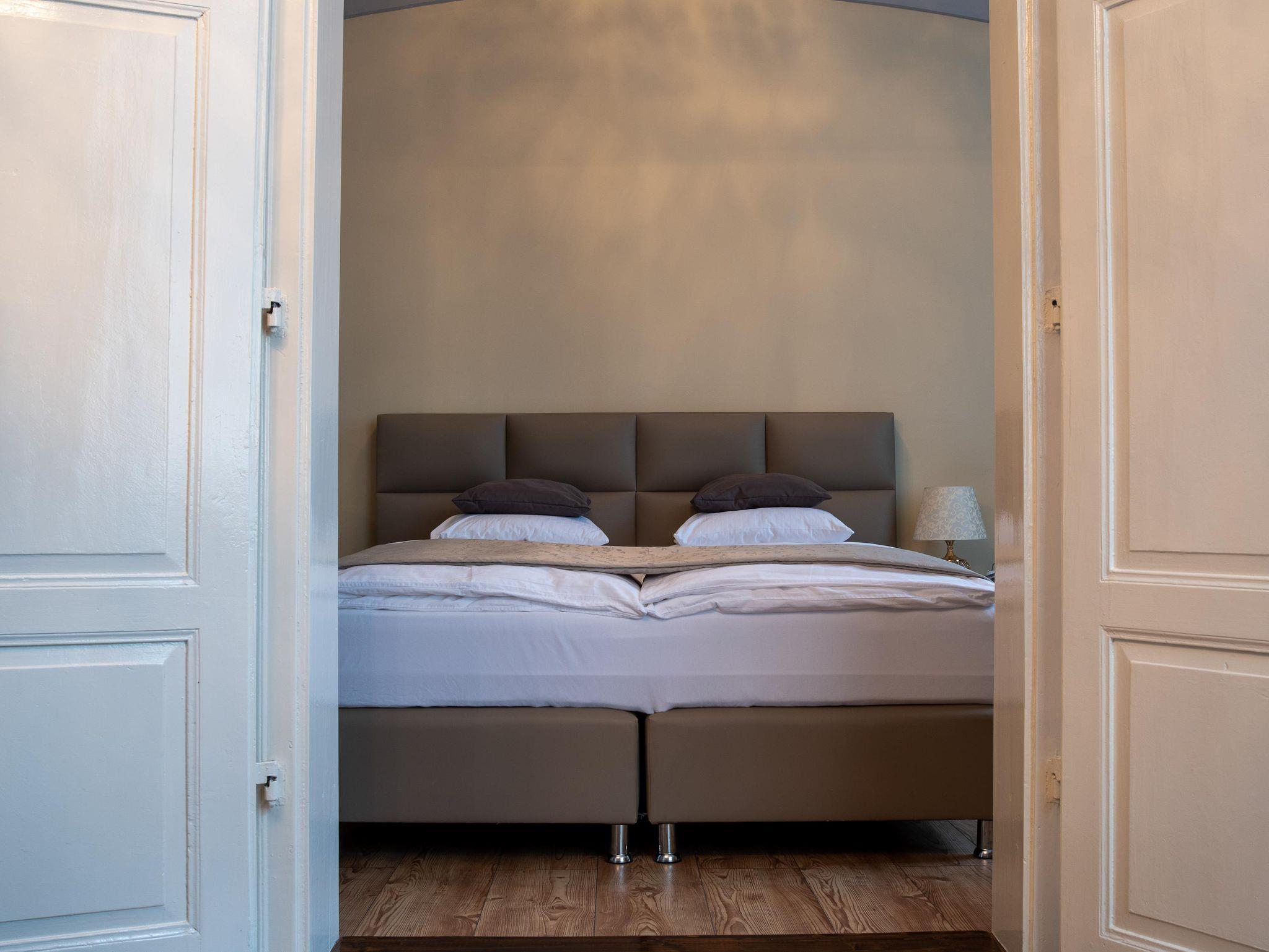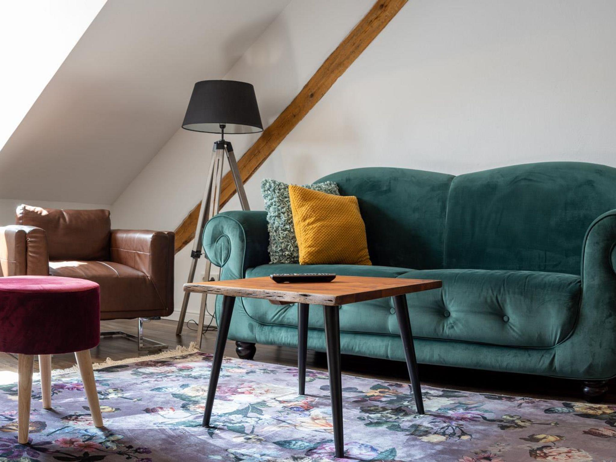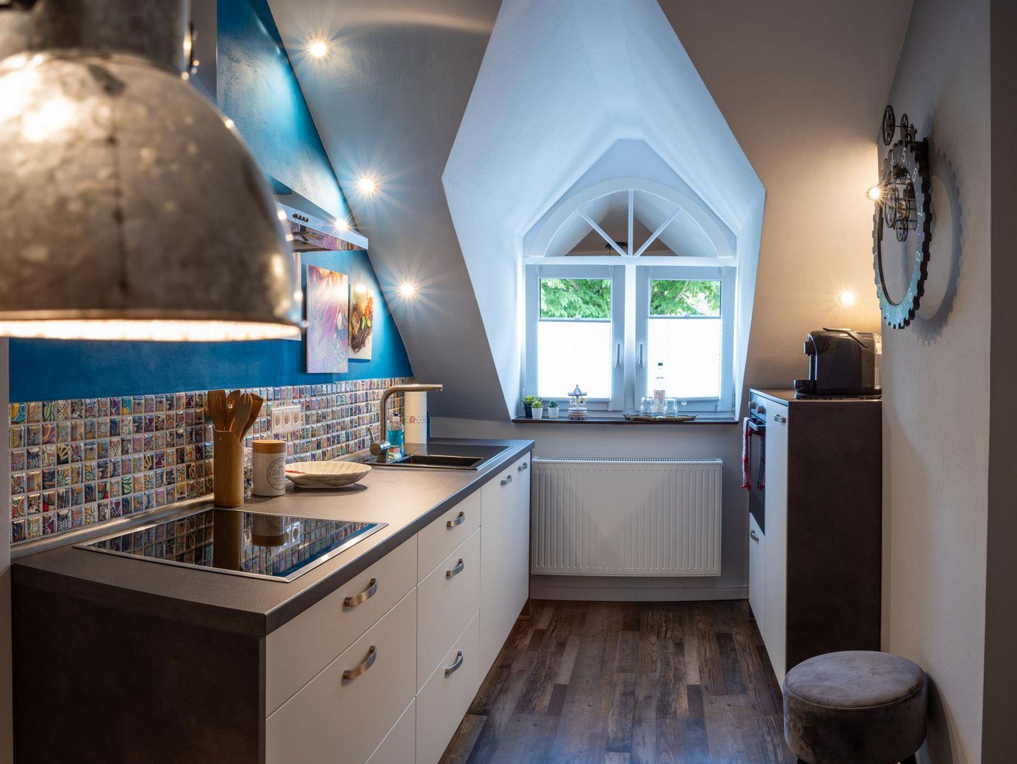 Der Aufstieg in die dritte Etage lohnt sich nicht nur wegen der sehr schönen Aussicht auf die Stadt, die Weinberge und oder das Wahrzeichen der Stadt, die Grevenburg. Das Bijou in der dritten Etage lässt keine Wüsche offen. Ein Ort zum Träumen ist nicht nur das romantische Schlafzimmer, sondern auch das sehr spezielle Badezimmer mit Regenwasserdusche. Die Highlights in diesem Apartment die Moped-Bar oder auch die Rock ola Musikbox.
