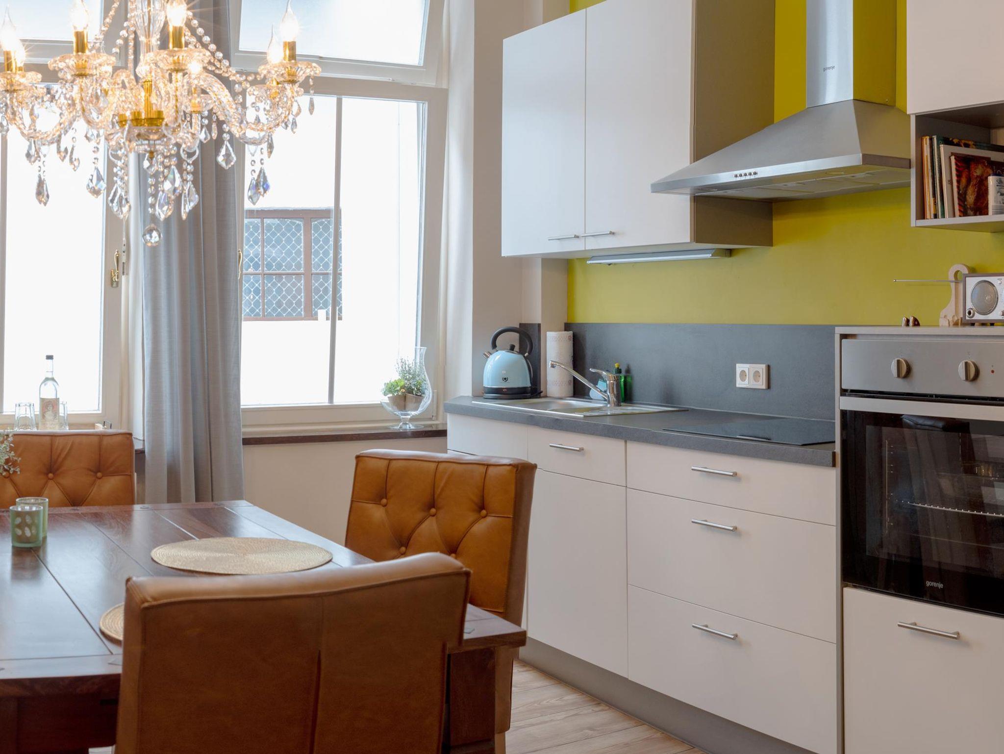 Das großzügige Apartment im 1. OG ist mit viel Liebe zum Detail eingerichtet. Die behagliche gut ausgestattete Küche mit Blick zum gepflegten Innenhof bietet Platz für kulinarische Höhenflüge genauso wie für gemütliche Abende zu zweit. Das große Badezimmer mit Regenwasser Dusche lässt keine Wünsche offen. Das stilvolle Wohnzimmer wie auch das sehr romantische Schlafzimmer lässt Sie erholsame Nächte im Jugendstil Ort Traben-Trarbach verbringen.