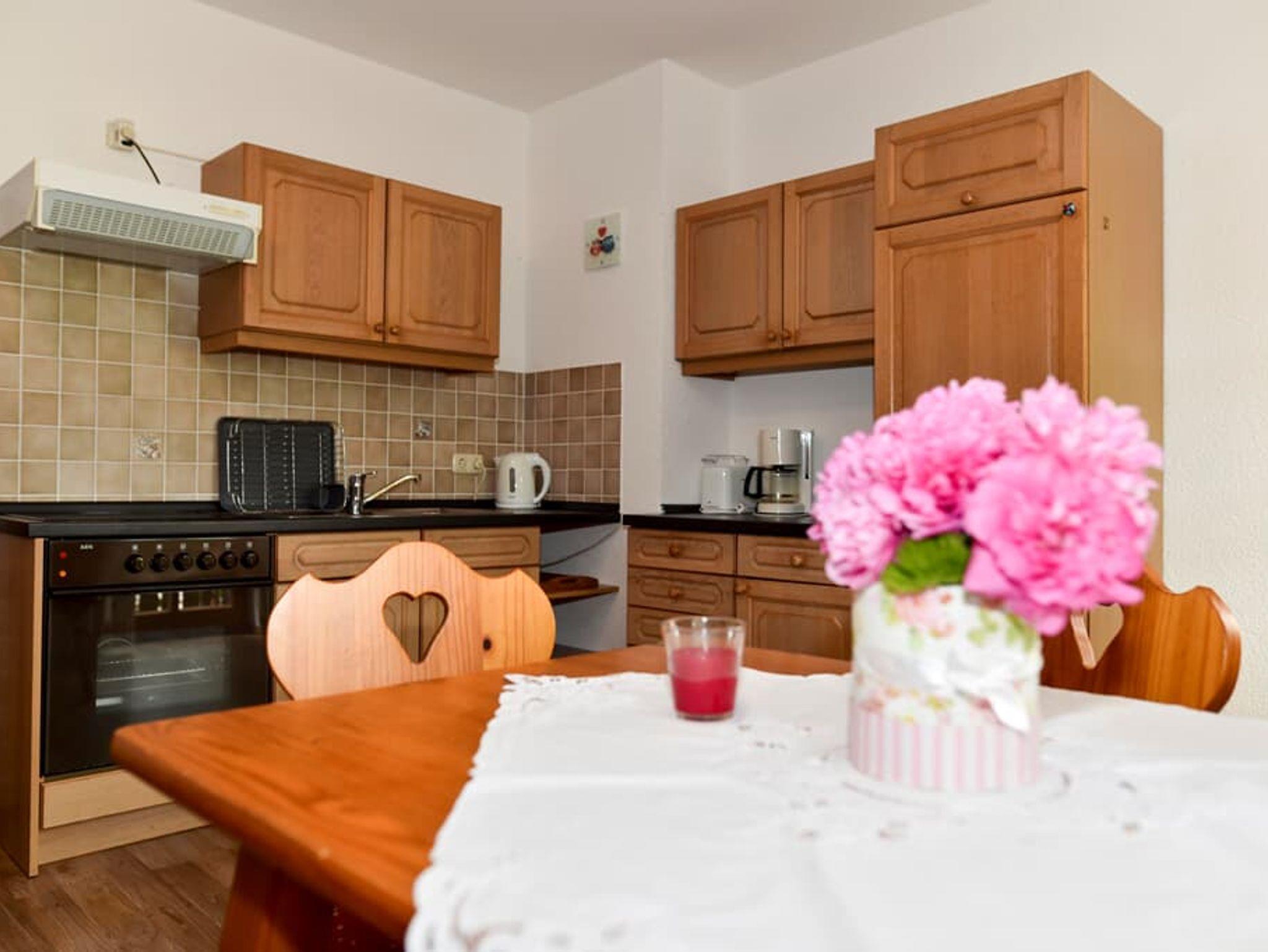 Freundliche, gemütliche, renovierte Ferienwohnung Nr.5 (40qm, Obergeschoß) mit Sichtbalken im Landhausstil und Süd-Balkon. Ideale Wohnung für zwei Personen die gerne auf dem Balkon die Sonne geniesen. Im Wohnbereich lädt eine Eckcouch bei TV oder Musik zum entspannen ein. Die Wohnküche ist mit einem Backofen mitsamt Cerankochfeld sowie Kühlschrank inklusiv Gefrierfach und Kaffeemaschine/Wasserkocher/Toaster praktisch eingerichtet. Geschirr-und Spültücher liegen bereit. Einen hellen, gemütlichen Platz bietet der Esstisch. Ausgestattet ist das Schlafzimmer mittels einem Boxspringdoppelbett samt offenem Fußteil, das bei Ihrer Anreise bezogen ist. Im Bad mit Badewanne/Dusche inklusiv und WC liegen Bade-und Handtücher und ein Fön bereit. Für Ordnung sorgt eine Gardarobe im Vorraum. Die große Scheune bietet genug Platz für Ihre Fahrräder oder Motorräder zum kostenlosen Unterstellen.