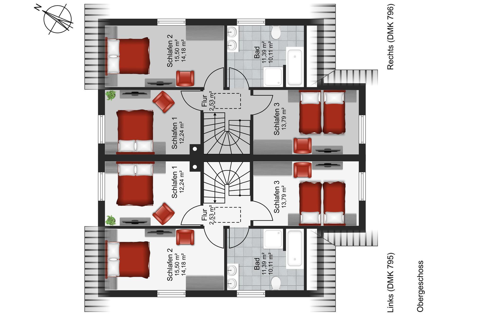 Soveværelse 14m2 (nr. 3) - 2 Sovepladser. (Dobbeltseng(e)).