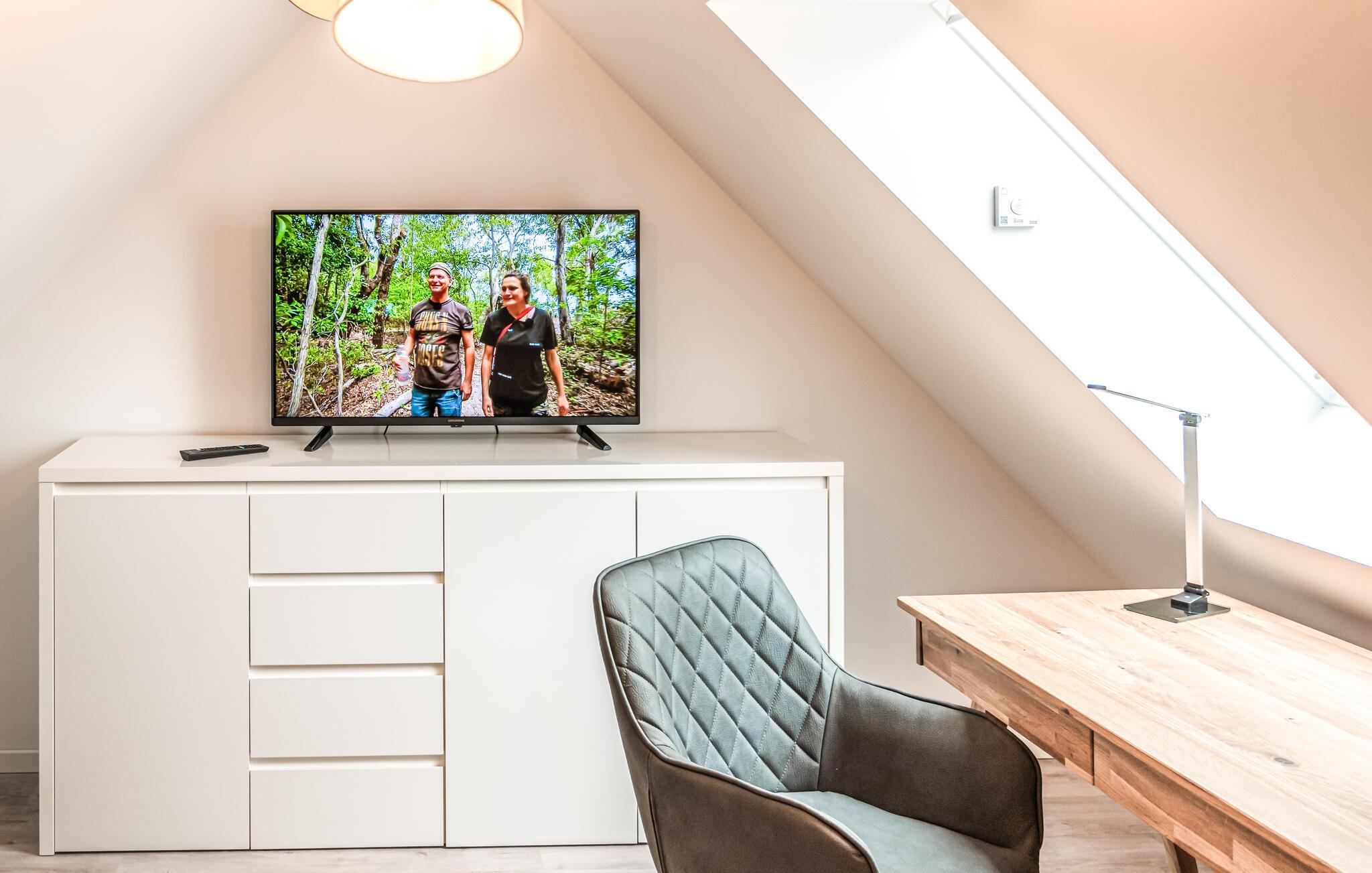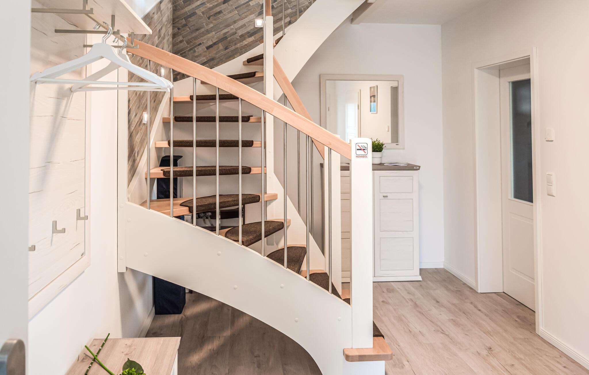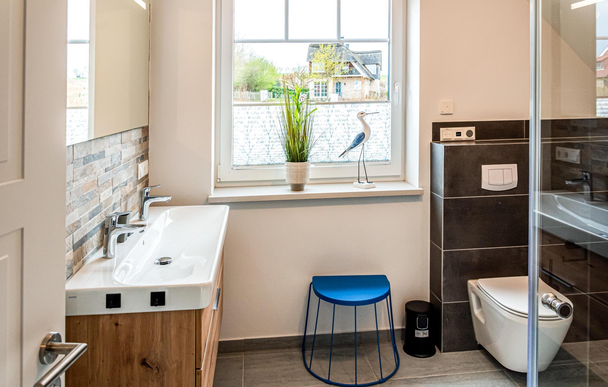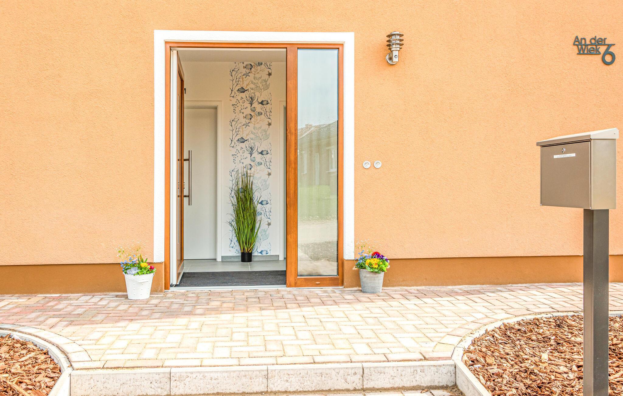 Træd ind i jeres feriehus ved søsporvognene nær Schwerin og lad jer betage af de stilfulde og komfortable møbler. Den åbne planløsning bidrager til en behagelig følelse af fællesskab. Gør jer komfortable i den hyggelige stue eller saml jer omkring spisebordet til fælles måltider og familieaktiviteter såsom brætspil eller kortspil. Det moderne køkken tilbyder masser af plads til at nyde måltider eller jeres morgenkaffe.