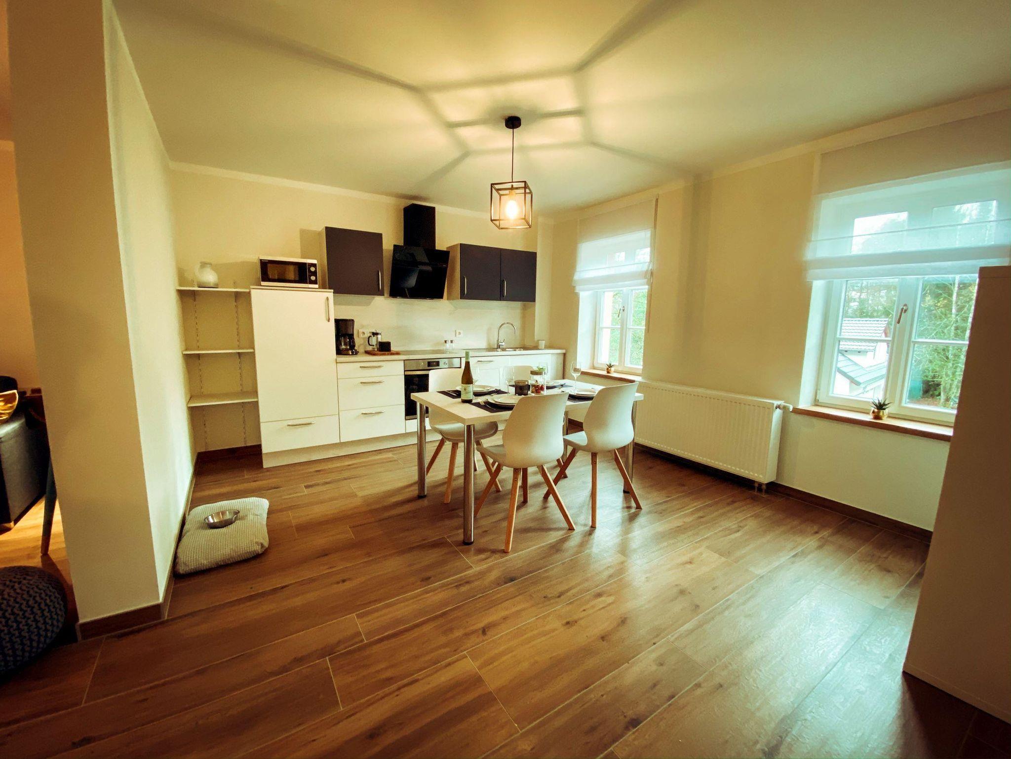 Jede Wohnung ist hochwertig ausgestattet mit Einbauküche (Herd, Backofen, Geschirrspülmaschine, Mikrowelle), Bad/WC mit barrierefreier Dusche, W-LAN und TV.