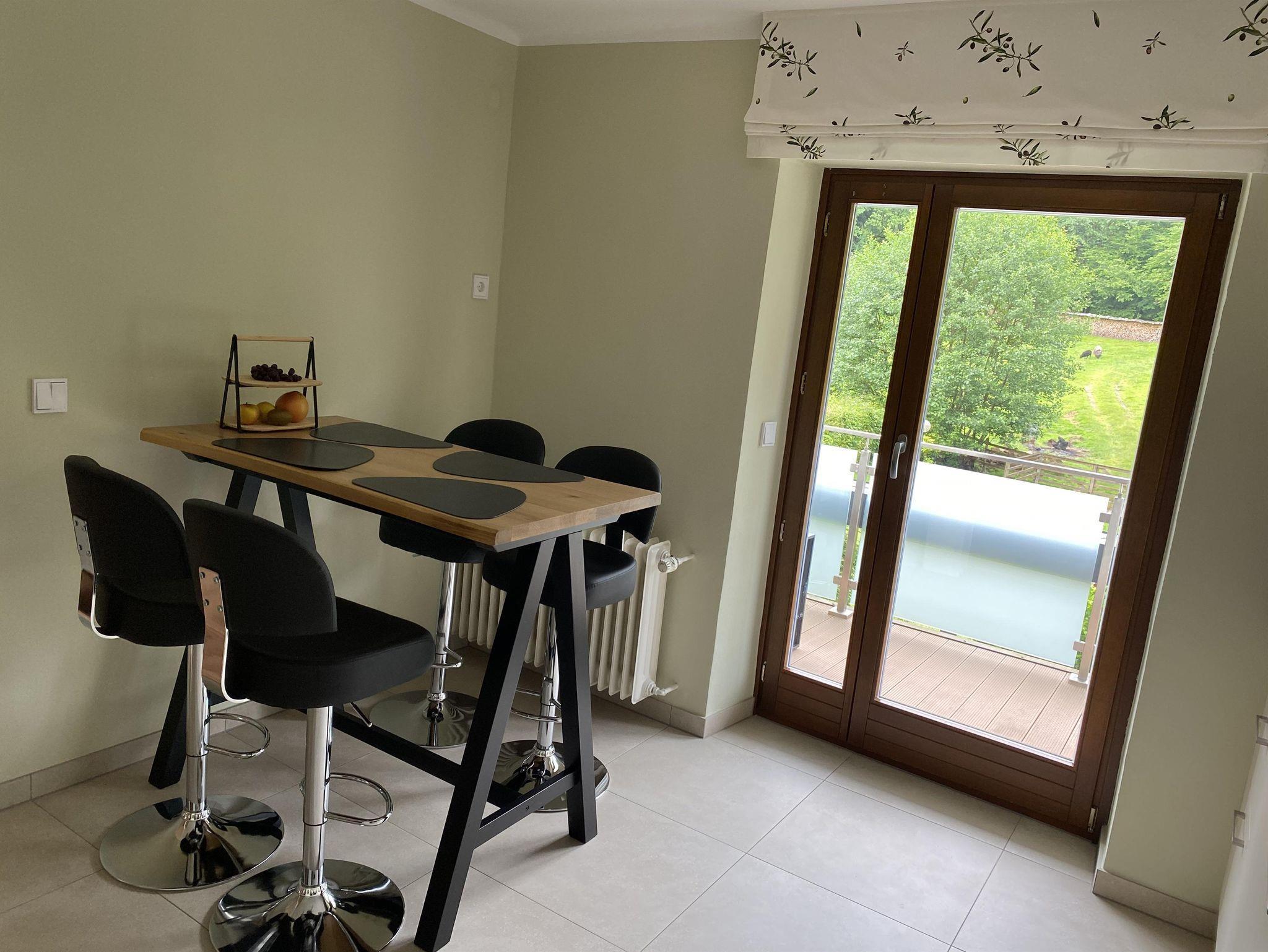 Die komplett neu renovierte Ferienwohnung bietet eine moderne Einrichtung und Ausstattung. Hier finden Sie auf 90 qm-Wohnfläche viel Platz um sich im Urlaub zu erholen. Von der sep. Küche mit Geschirrspülmaschine und vom Wohnzimmer mit Ledersofa und Sesseln haben Sie einen direkten Zugang zum großzügigen Balkon. Hier können Sie entspannen und den traumhaften Waldblick genießen. Zusätzlich verfügt die Ferienwohnung über ein sep. Doppelschlafzimmer mit 2 Einzelbetten und ein Doppelschlafzimmer mit Doppelbett und einem direkten Durchgang zum Wohnzimmer. Im Badezimmer finden Sie eine ebenerdige Dusche.