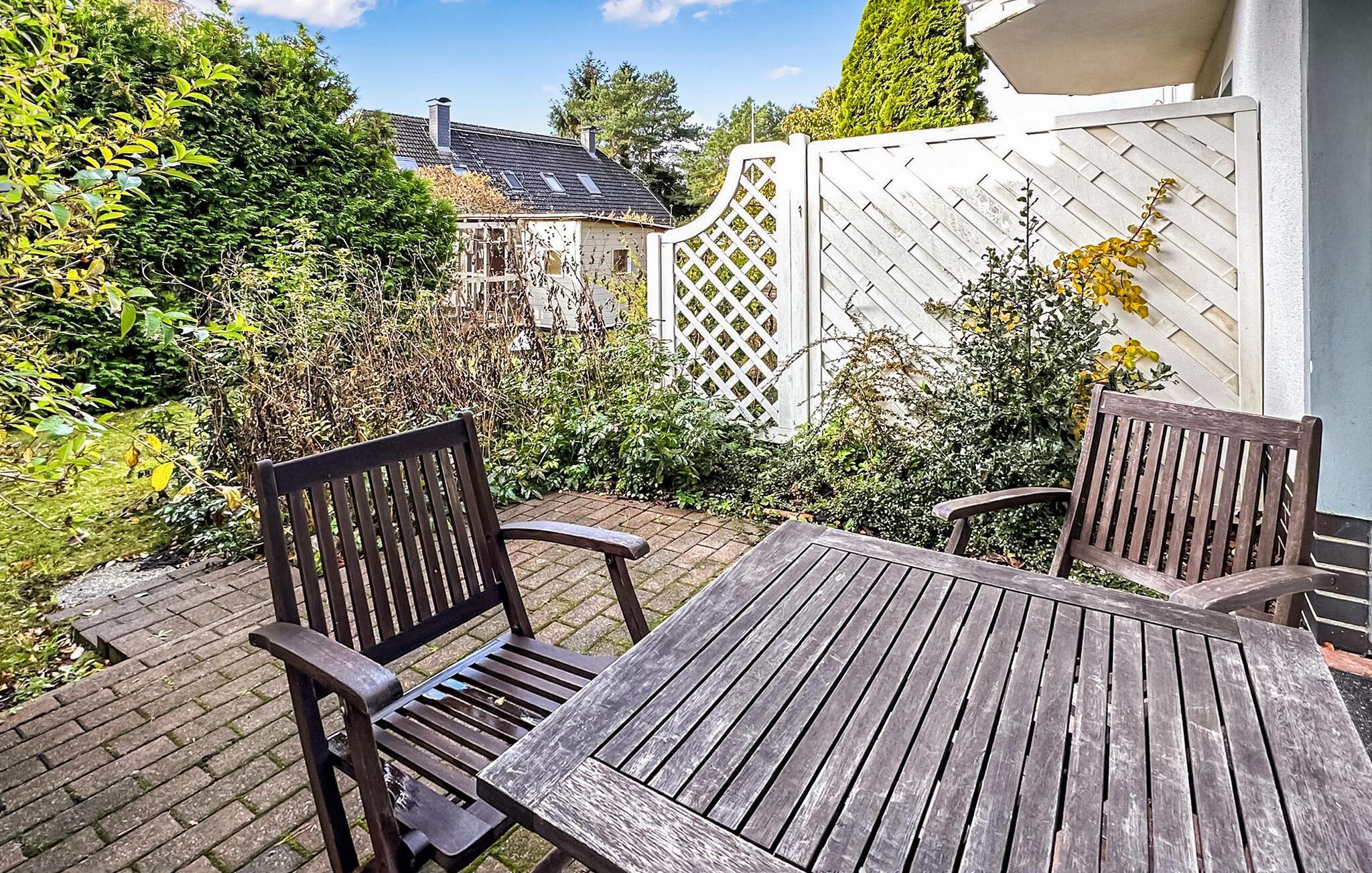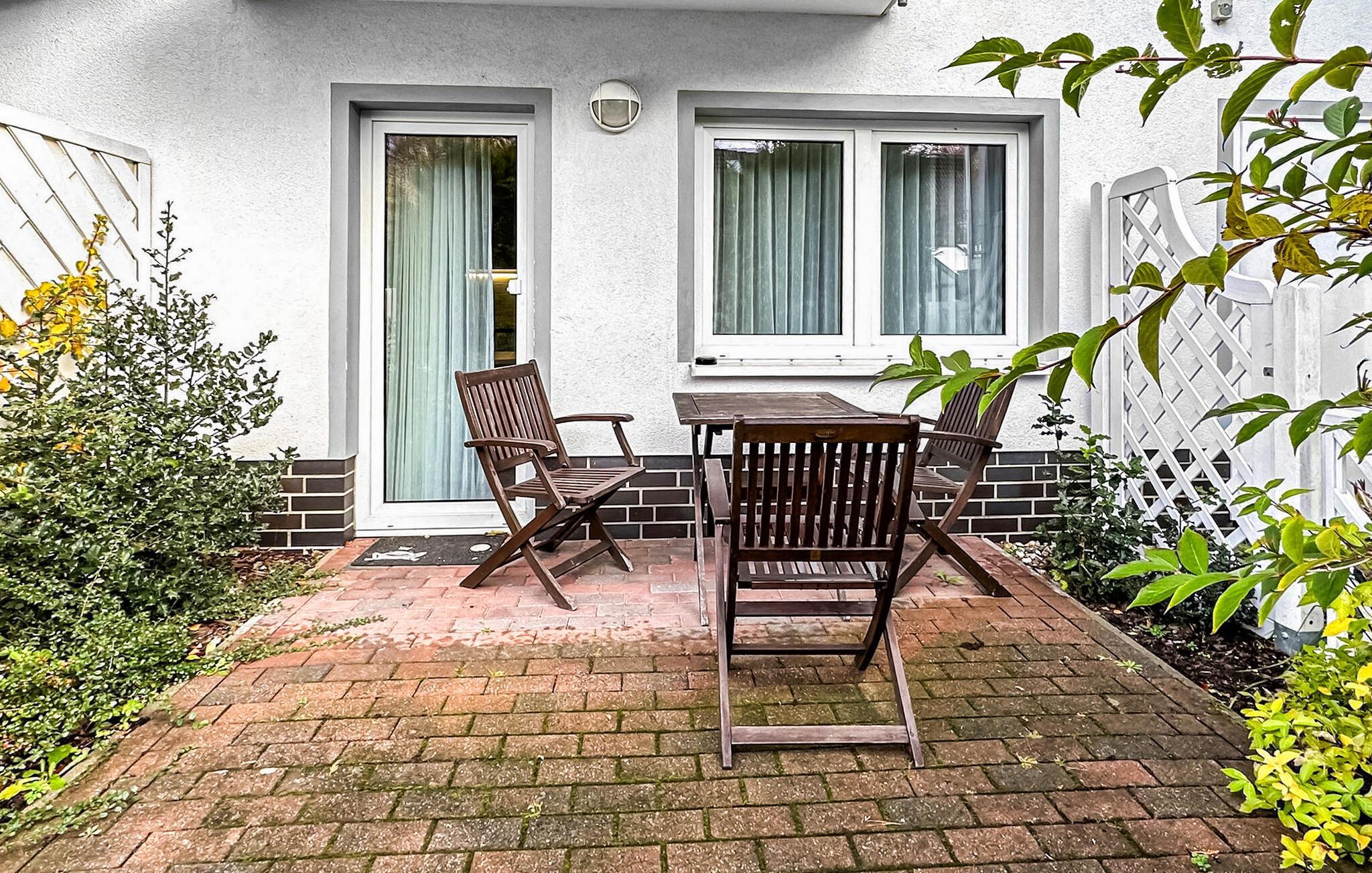 De fire ikke-ryger ferielejligheder ligger i et feriehus på en grund på cirka 1.400 kvadratmeter centralt i Østersøferiestedet Trassenheide. Der er omkring 1,6 km til Østersøstranden. Butikker, restauranter og caféer er inden for få hundrede meter.Alle lejligheder blev omfattende moderniseret og nyindrettet i 2020. Den 45 kvm store 2-værelses lejlighed til 2 personer ligger i husets stueetage og kan nås via en central trappe. Lejligheden har opholdsstue med spisebord og åbent tekøkken (polstrede møbler, fladskærms-tv, spisebord, el-komfur, ovn, køleskab med fryser, mikroovn, diverse køkkenmaskiner), soveværelse (dobbeltseng) og et badeværelse med brus/toilet. Fra stuen er der udgang til den møblerede terrasse og den tilstødende lille havegrund. En barneseng og høj stol kan stilles til rådighed for små børn. WiFi er også tilgængeligt. Der er parkeringsplads, cykelstativer og central grillplads på naboejendommen til rådighed for hver lejlighed på ejendommen. Den samlede pris inkluderer slutrengøring, sengelinned, håndklæder samt vand- og energiforbrug. I feriestedet Trassenheide ved Østersøen er feriegæster forpligtet til at betale en spaskat (betales kontant på stedet). Trassenheide, badebyen i den nordlige del af øen Usedom, er kendetegnet ved sin fine sandstrand. Nudist- og hundebadestrand i nærheden. Stedet er forbundet med øens cykelnet. Begivenheder og koncerter finder sted på promenaden om sommeren.