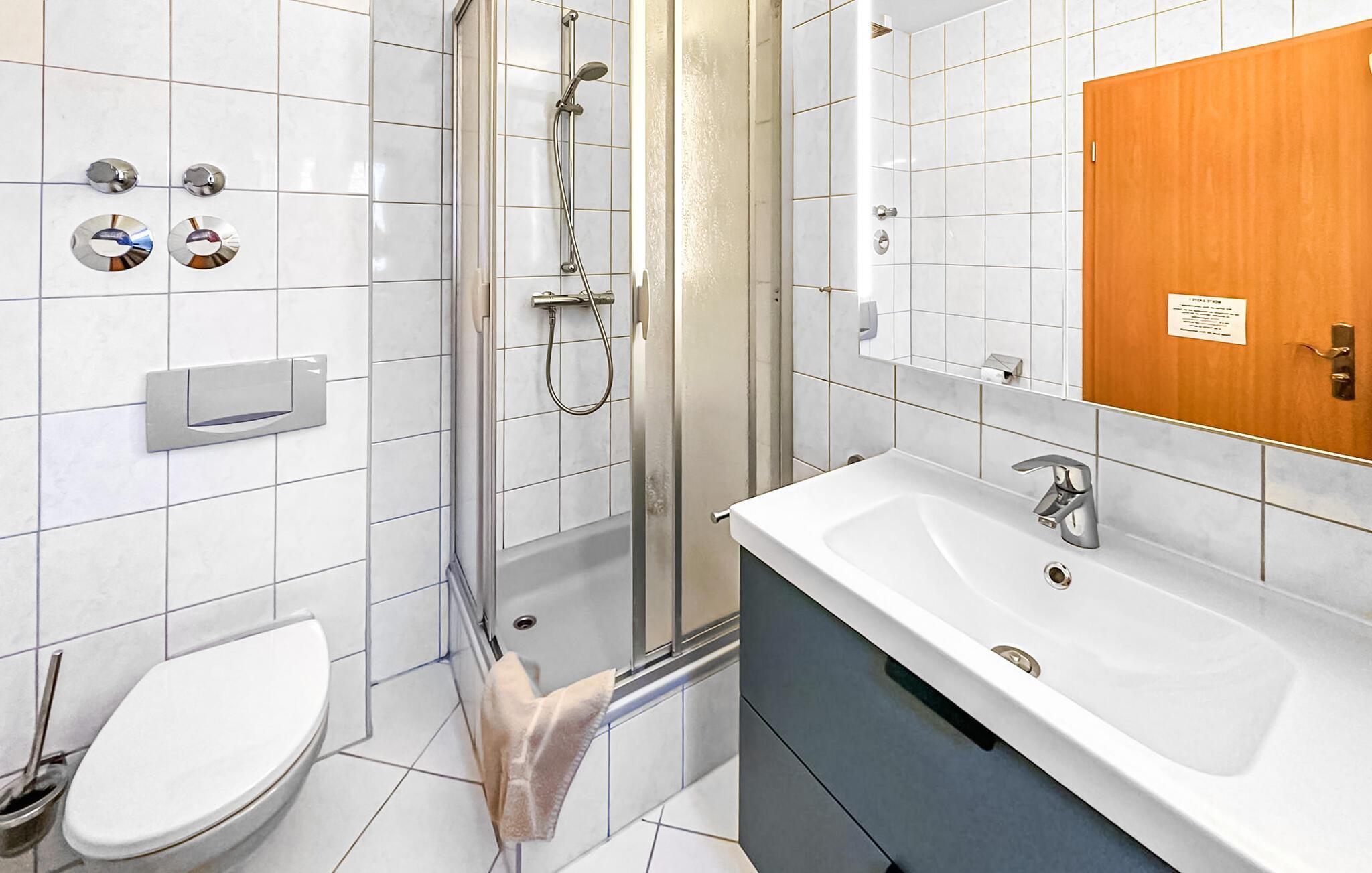 Badeværelse (nr. 1) - WC. Varmt og koldt vand. Bruser