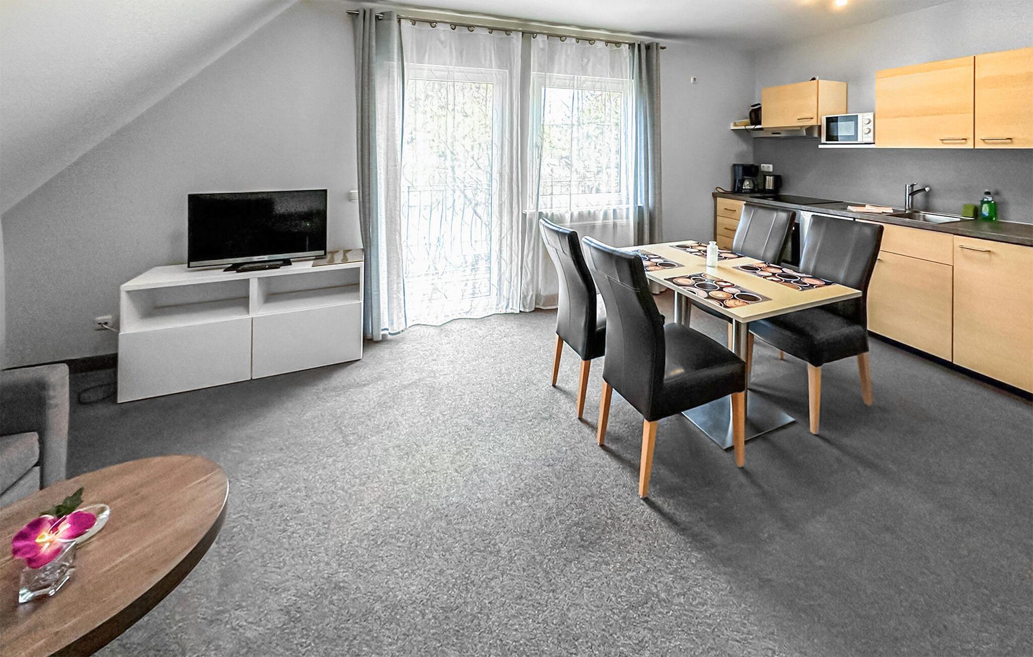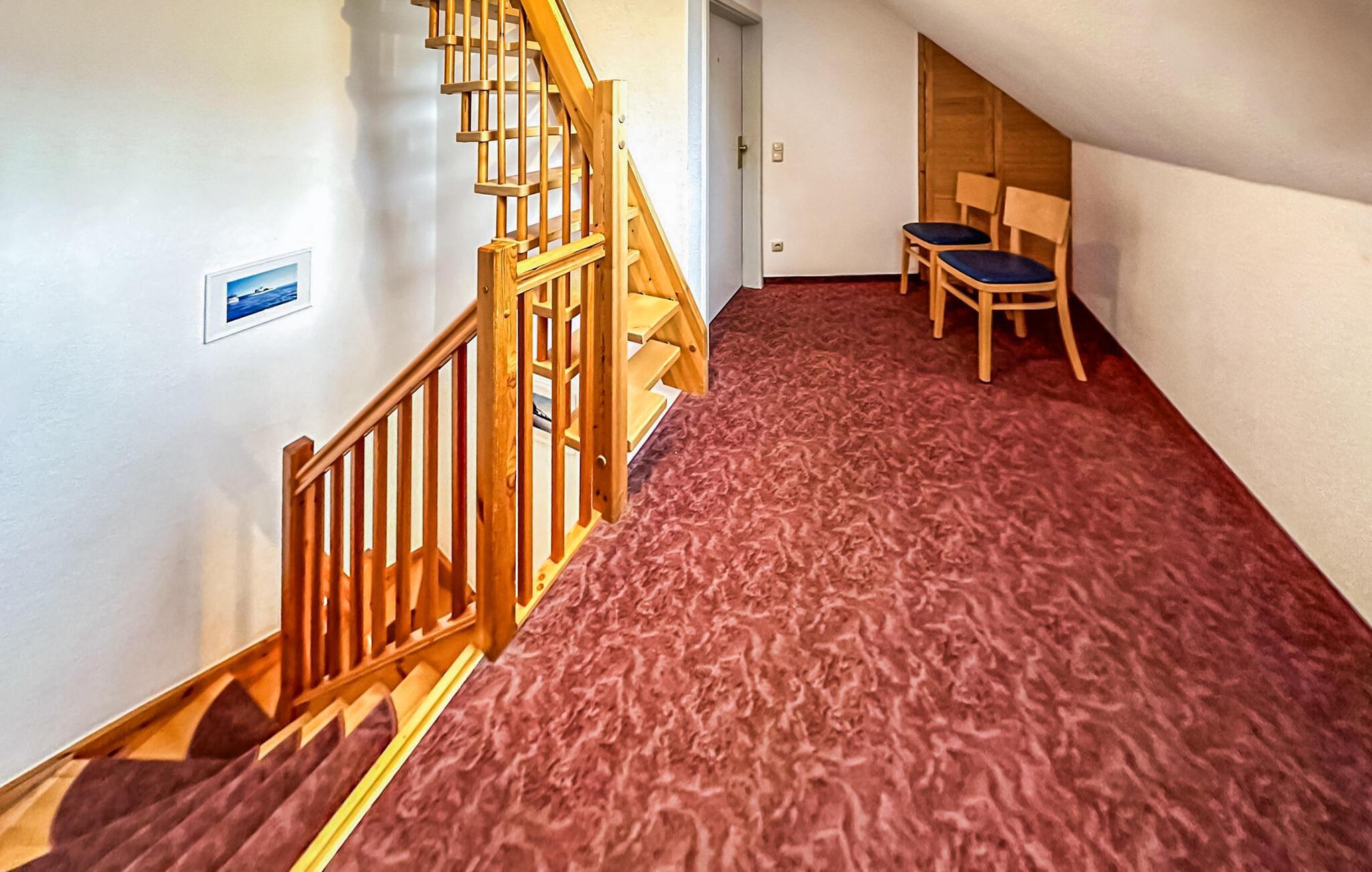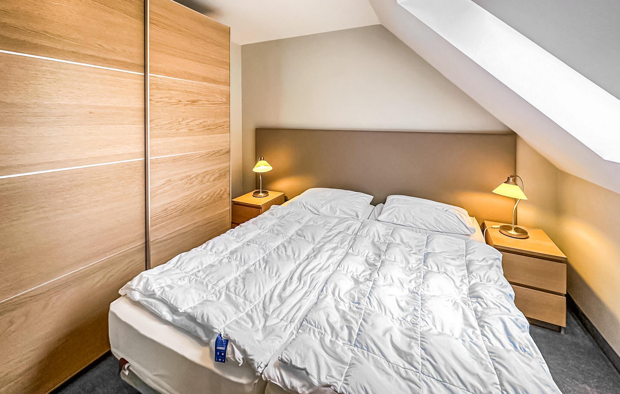 Den ikke-ryger ferielejlighed til 4 personer + ekstra opredning i babyseng ligger på øverste etage i et feriehus på en grund på cirka 1.400 kvadratmeter centralt i Østersøferiestedet Trassenheide. Der er omkring 1,6 km til Østersøstranden. Butikker, restauranter og caféer ligger inden for få hundrede meter. 3-værelses lejligheden er på 65 kvadratmeter og er i 2020 blevet omfattende moderniseret og nyindrettet. Det har en stue med spisebord og åbent tekøkken (polstrede møbler, fladskærms-tv, spisebord, elektrisk kogeplade, ovn, køleskab med fryser, opvaskemaskine, mikroovn, diverse køkkenmaskiner), badeværelse med bruser/toilet og 2 soveværelser med hver en dobbeltseng. Der er også en møbleret balkon. En barneseng og høj stol kan stilles til rådighed for små børn. Der er parkeringsplads, cykelstativer og en central grillplads til rådighed på ejendommen. Den samlede pris inkluderer slutrengøring, sengelinned, håndklæder samt vand- og energiforbrug. I feriestedet Trassenheide ved Østersøen er feriegæster forpligtet til at betale en spaskat (betales kontant på stedet). Trassenheide, badebyen i den nordlige del af øen Usedom, er kendetegnet ved sin fine sandstrand. Nudist- og hundebadestrand i nærheden. Stedet er forbundet med øens cykelnet. Begivenheder og koncerter finder sted på promenaden om sommeren.