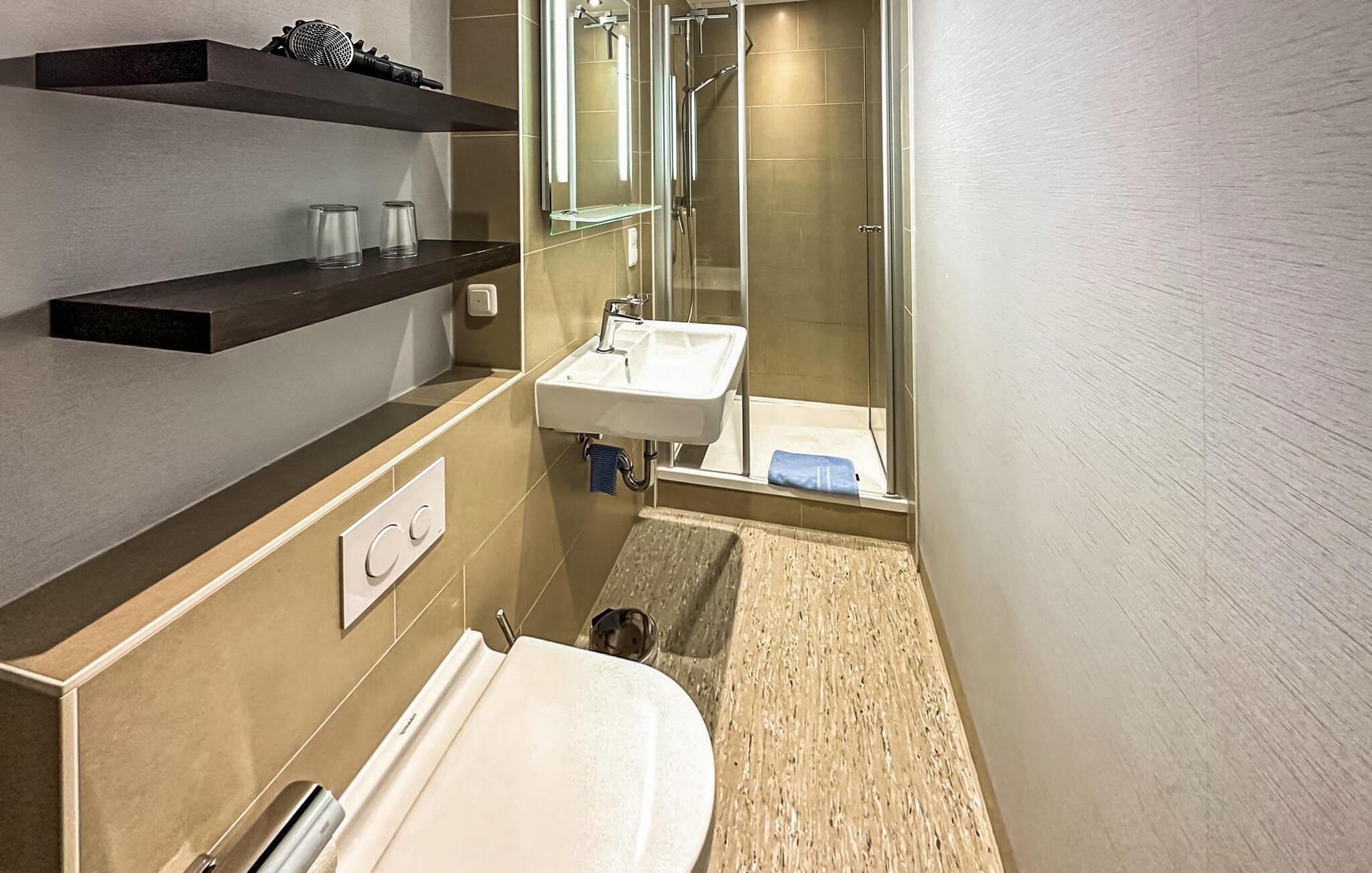 Badeværelse (nr. 1) - WC. Varmt og koldt vand. Bruser