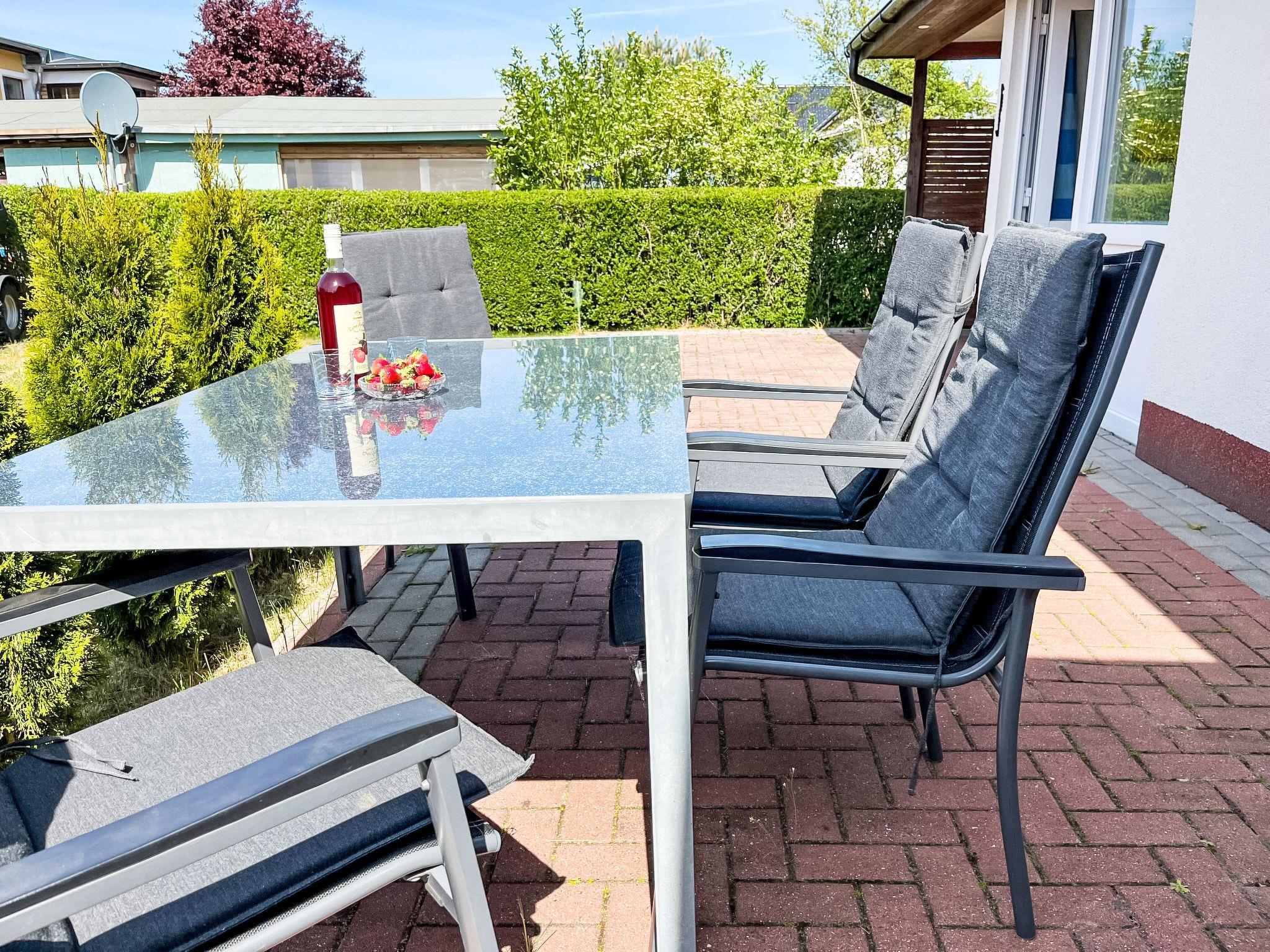 Trassenheide: Cosy bungalow. On the outskirts, 2 km from the sea, 2 km from the beach. Supermarket 300 m, restaurant 350 m, bakery, café 300 m, bicycle rental 700 m, bus stop 500 m, railway station 1.5 km.