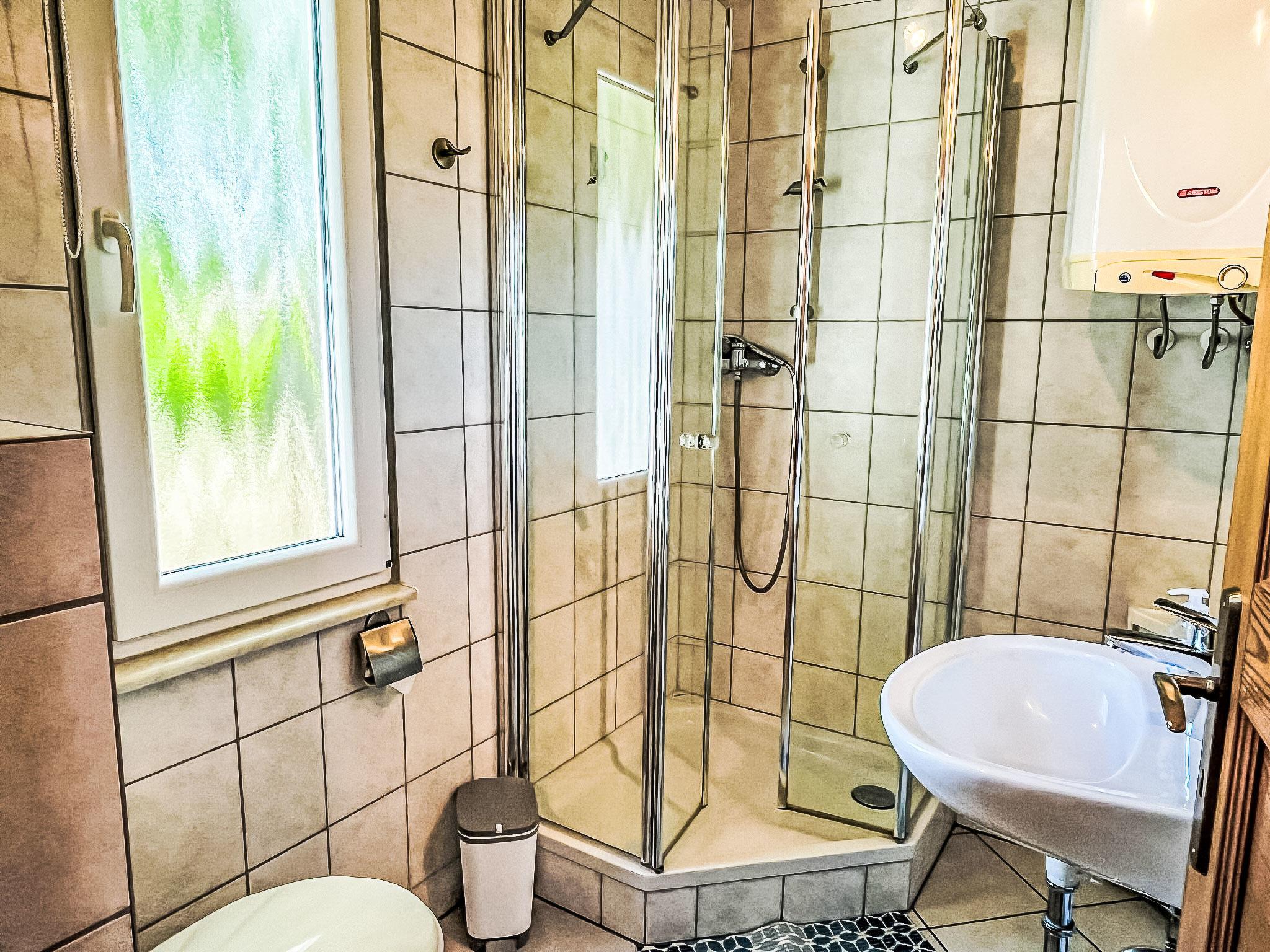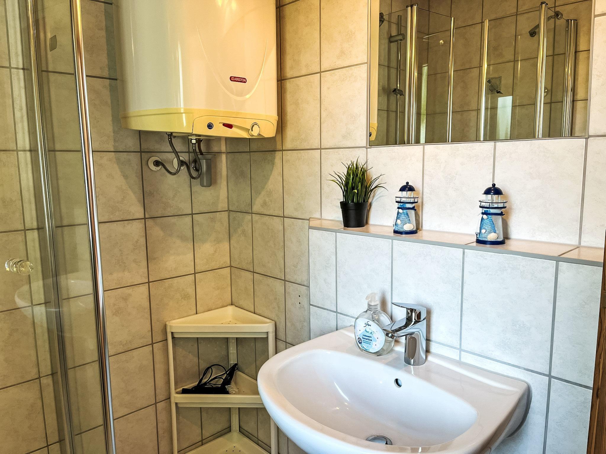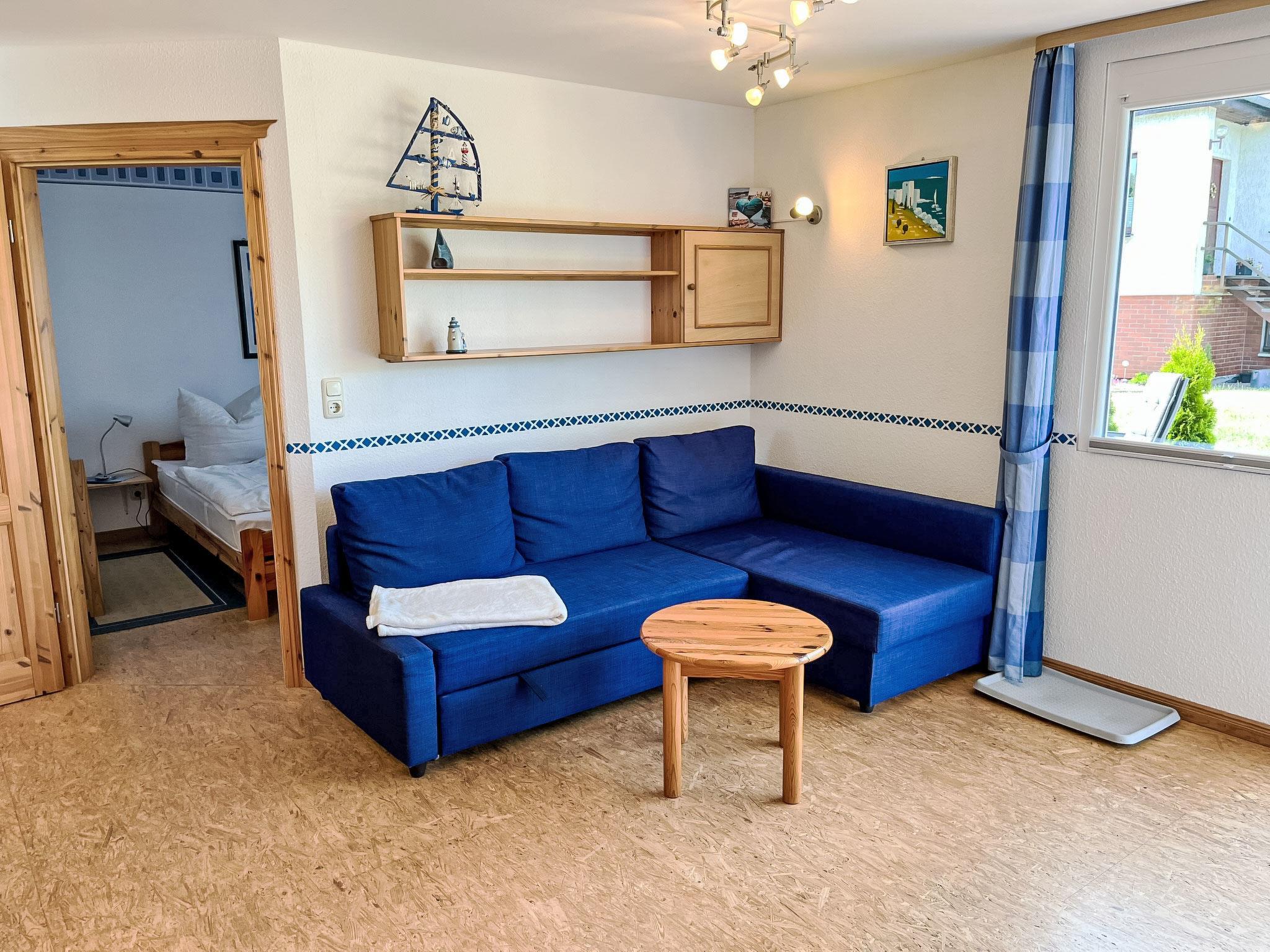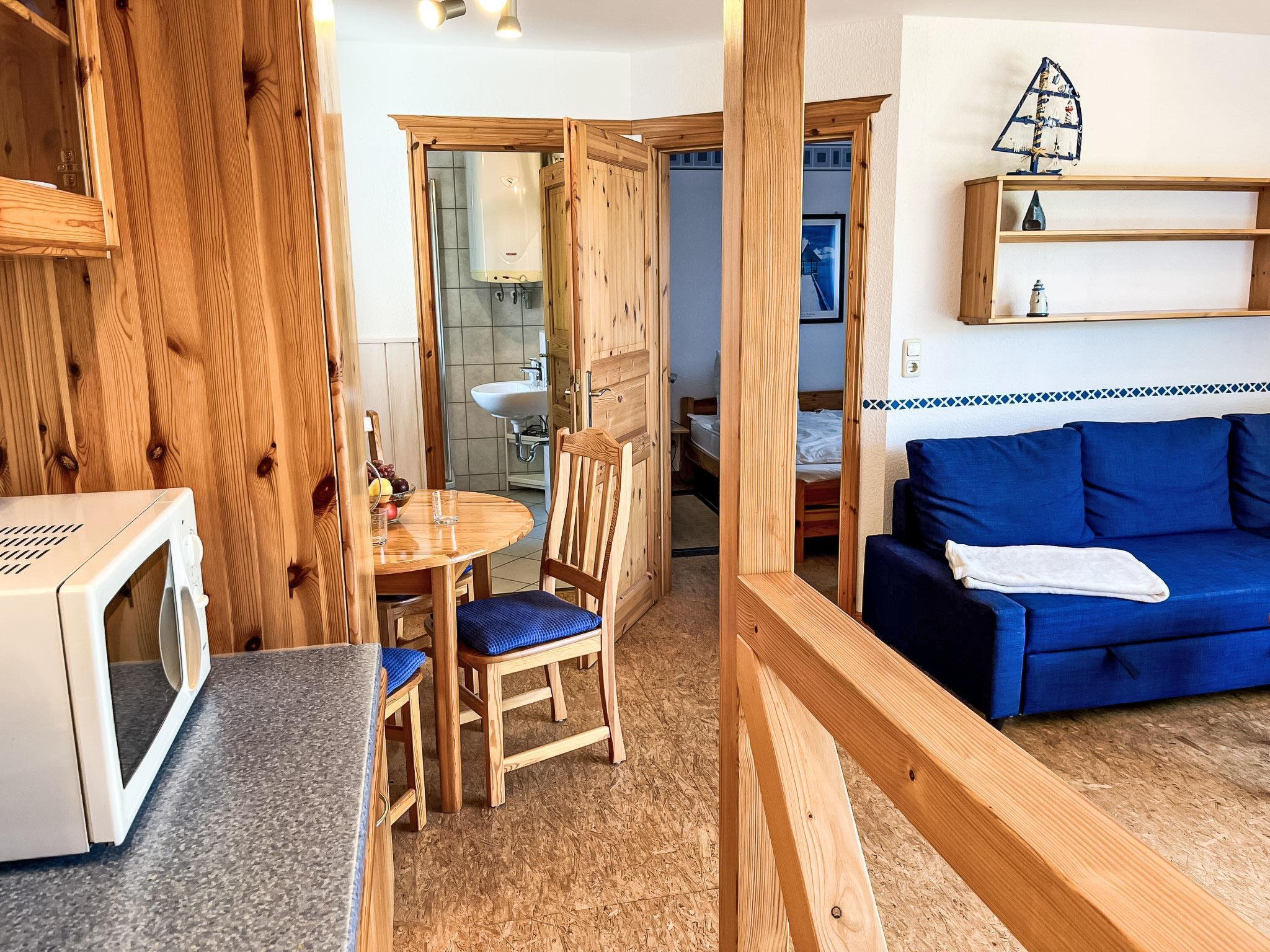 "Emma", 2-room bungalow 34 m2. Object suitable for 2 adults + 1 child. 1 room with dining table, kitchen corner and satellite TV (flat screen), radio. Exit to the terrace. 1 room with 1 double bed (180 cm, length 200 cm). Kitchen-/living room (2 hot plates, toaster, kettle, microwave, electric coffee machine). Shower/WC. Underfloor heating. Terrace. Terrace furniture. Facilities: Internet (WiFi, free). Parking (roofed, 1 car). Please note: suitable for families. Non-smokers only. Smoke alarm.