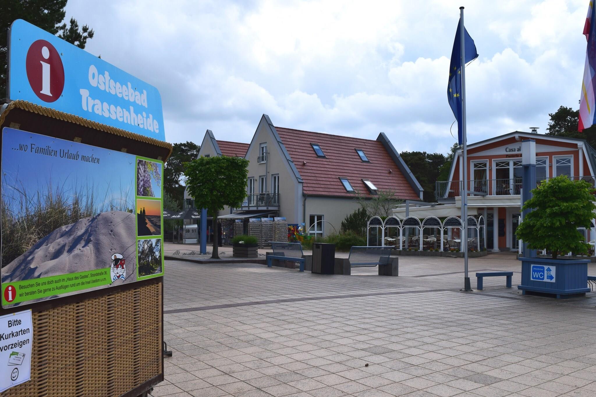 Moderne, hyggelig lejlighed kun 300 meter fra sandstranden. Din bolig ligger i udkanten af det lille, idylliske feriekompleks Strandidyll, i huset tættest på den skønne, lange strand. Trassenheide er en mere rolig badeby i den nordlige del af Usedom, som er populær blandt både fredssøgende og vandelskere. Kun 3 kilometer væk ligger den mere livlige by Zinnowitz, som du nemt kan nå ved at gå en tur på stranden. De tre kejserlige bade Bansin, Heringsdorf og Ahlbeck ligger mellem 26 og 30 kilometer væk. Aktiviteter i nærheden: Station af Usedomer Baderbahn 900 meter. Badminton, fitnesscenter, sauna og squash i umiddelbar nærhed. Besøg "huset på hovedet" ved Trassenheide og føl dig som en flue på loftet. Oplev huset fuld af overraskelser, sjov for hele familien er uundgåelig! Der er også meget at opleve i Kinderland Trassenheide: karrusel, børnetog, westerntog, en af de mange hoppeborge, slæder eller trampoliner, som kan bruges til hjertens lyst uden ekstra omkostninger. Alle vil finde noget til deres smag her! Kæmpe legoklodser og et rummeligt fitnessrum med masser af sportsudstyr hører også til. Mens de voksne nyder en kop kaffe, kan de små slippe dampen ud på den superstore nye hoppebold. Scooterbiler og motorcykler samt elektriske gravemaskiner og minigolf er tilgængelige for en mønt eller et mindre tillæg Ikke egnet til personer med nedsat mobilitet