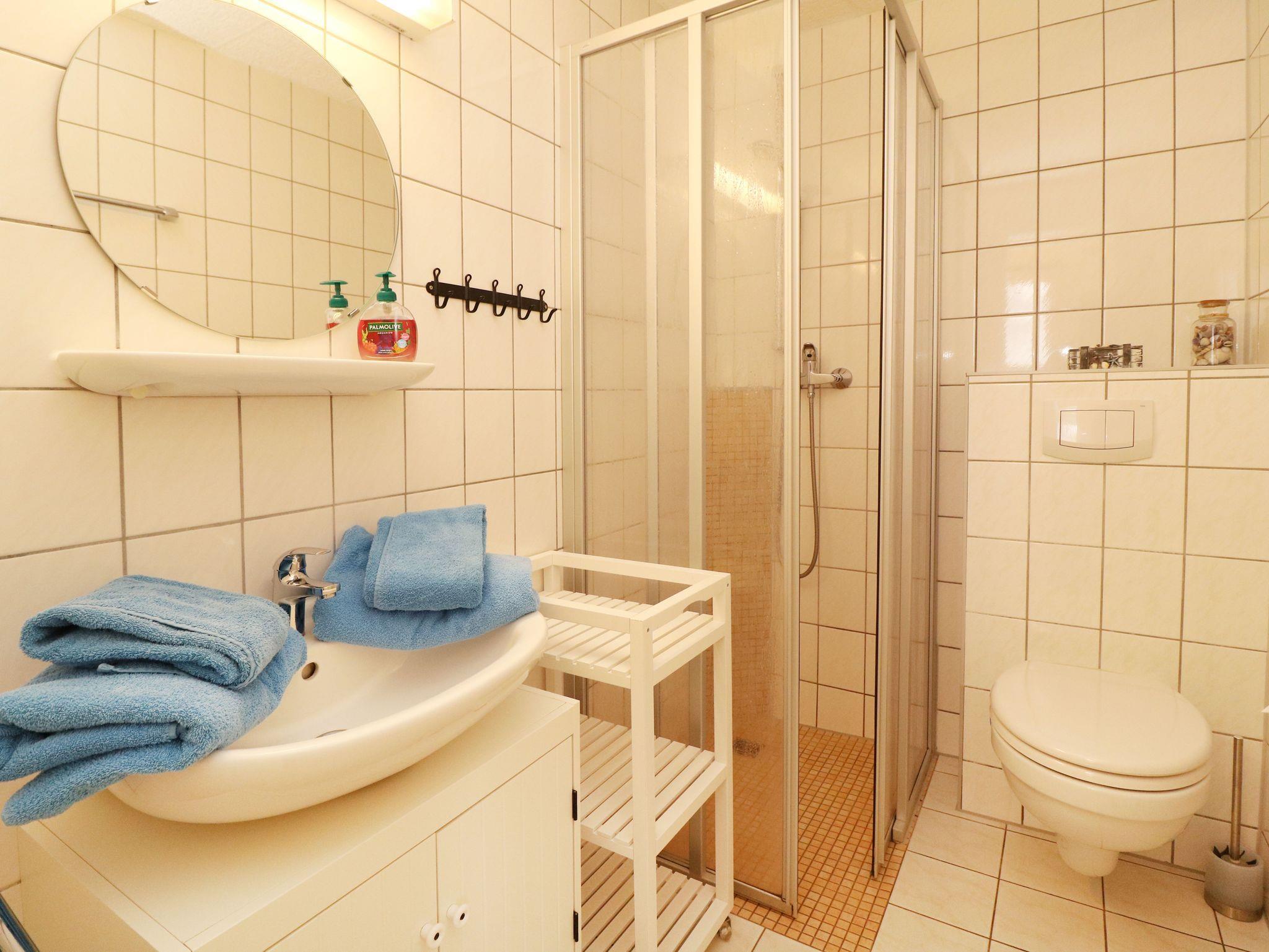 Das Bad befindet sich separat und beinhaltet Dusche und WC.