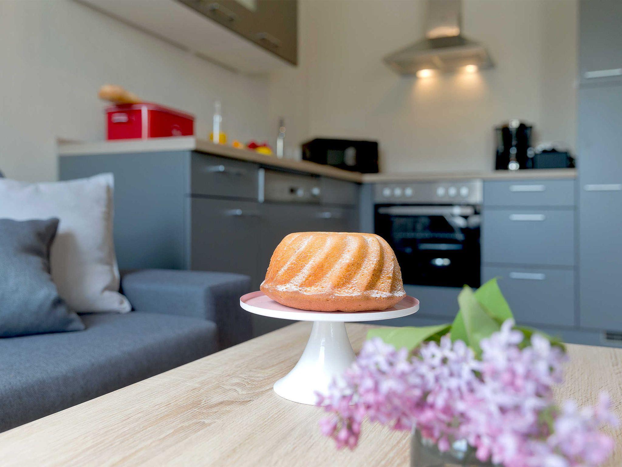 Herzlich Willkommen in der 54 m² großen Ferienwohnung. Diese bietet Ihnen all das was für Sie für einen erholsamen Urlaub benötigen. Der Wohnbereich ist mit einer offenen Küche und dem Essbereich ausgestattet. Ebenso gibt es ein Schlafzimmer mit einem Doppelbett sowie ein Badezimmer mit Dusche/WC. Bei Bedarf kann ein Kinderreisebett mit im Schlafzimmer aufgestellt werden.