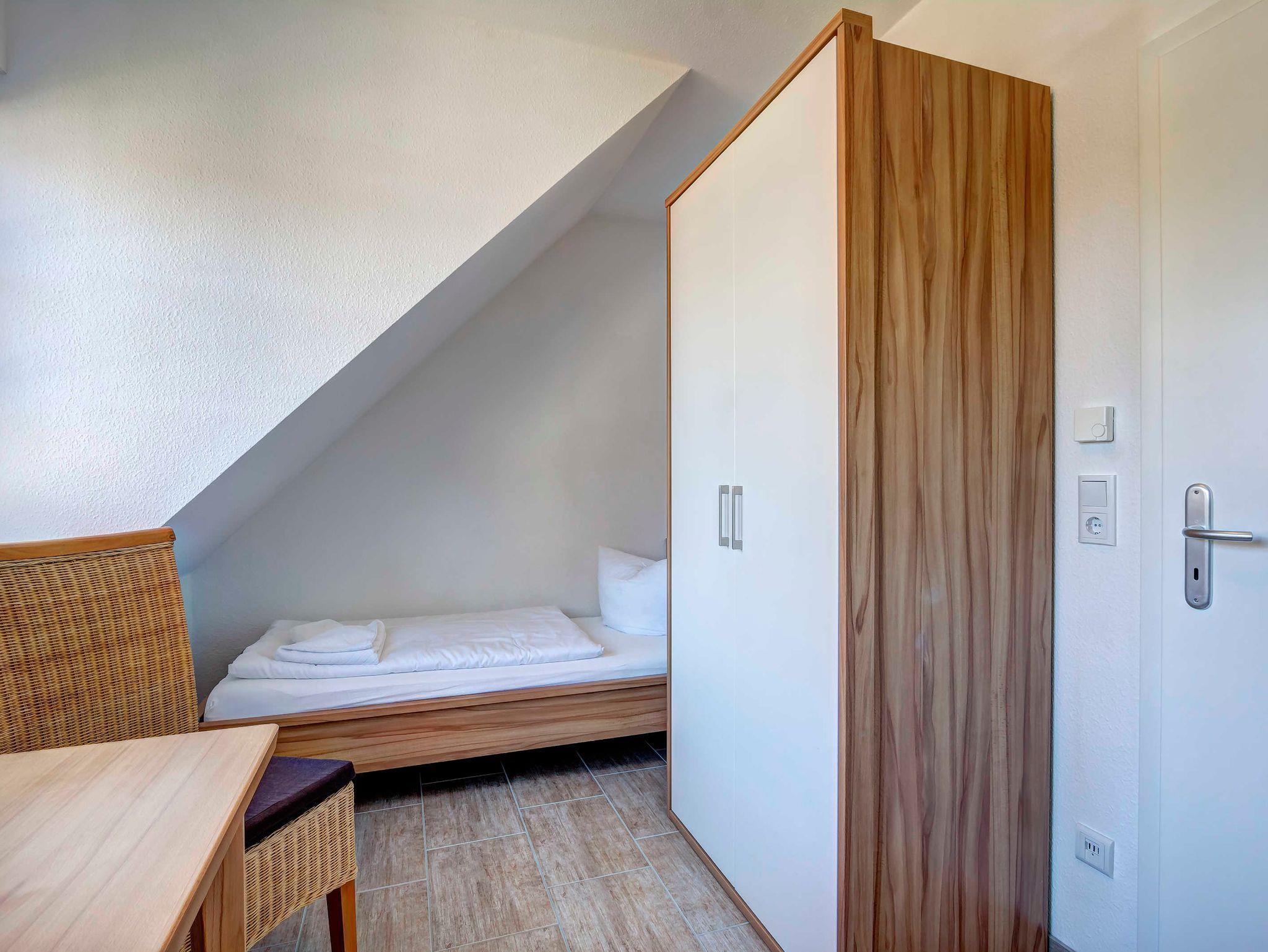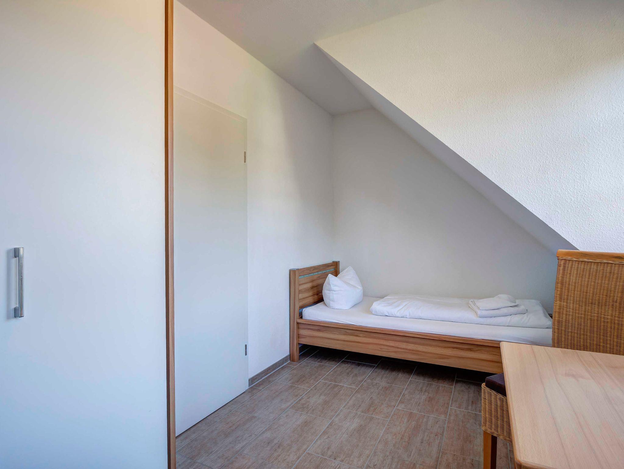 - 1 Schlafzimmer mit 2 Einzelbetten je 1 x 90 x 200 cm im Obergeschoß,