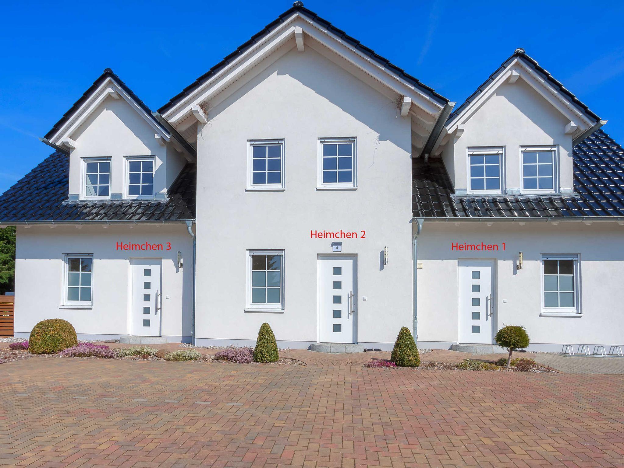 Das Ferienhaus Heimbürger mit seinen drei Ferienhaushälften liegt auf einem abgeschlossenen Grundstück, das von drei Seiten eingezäunt und zur vierten Seite mit einer natürlichen Hecke bewachsen ist. Die drei Parkplätze befinden sich im großen Vorgarten auf dem fast komplett eingezäunten Grundstück.