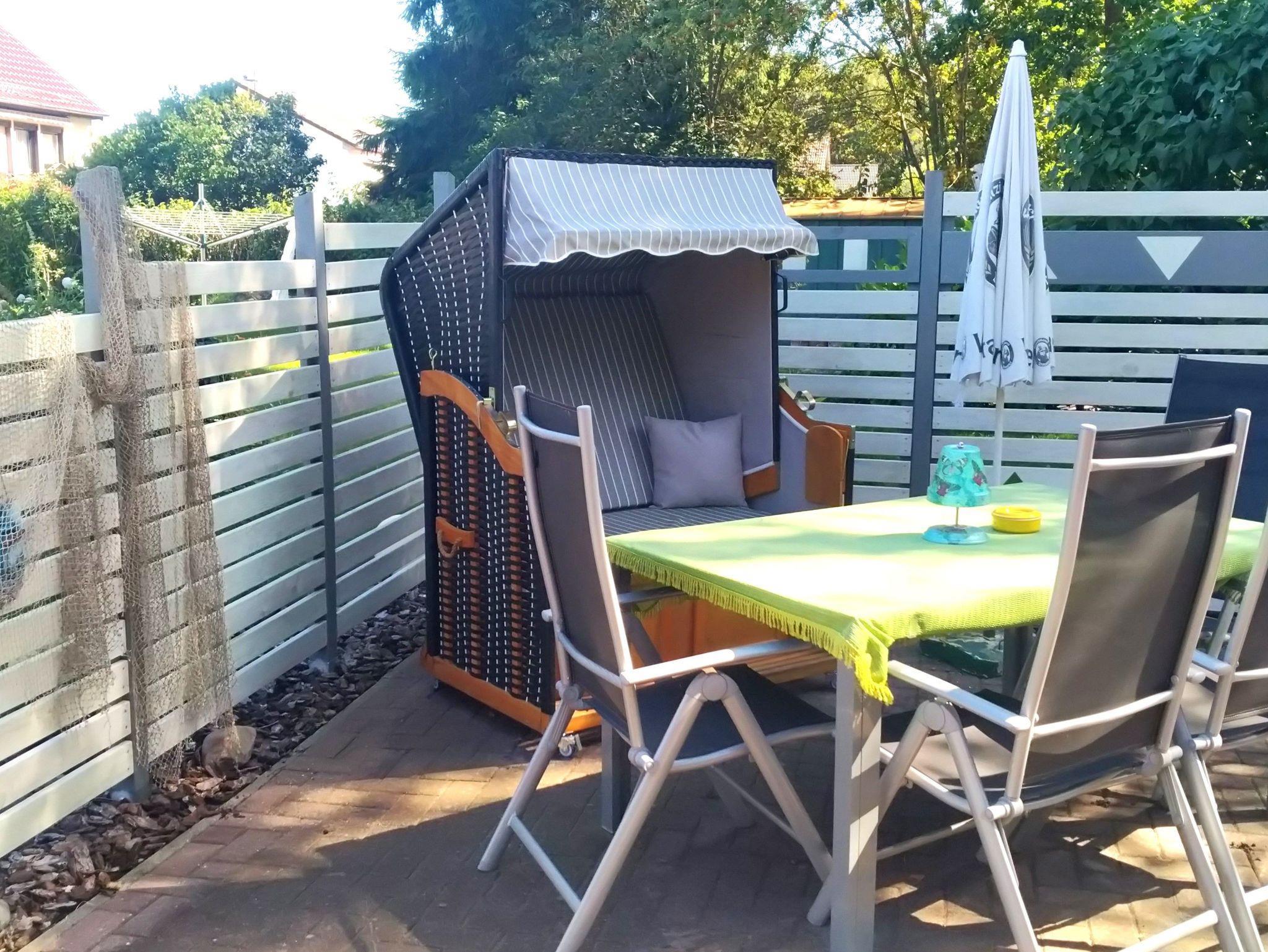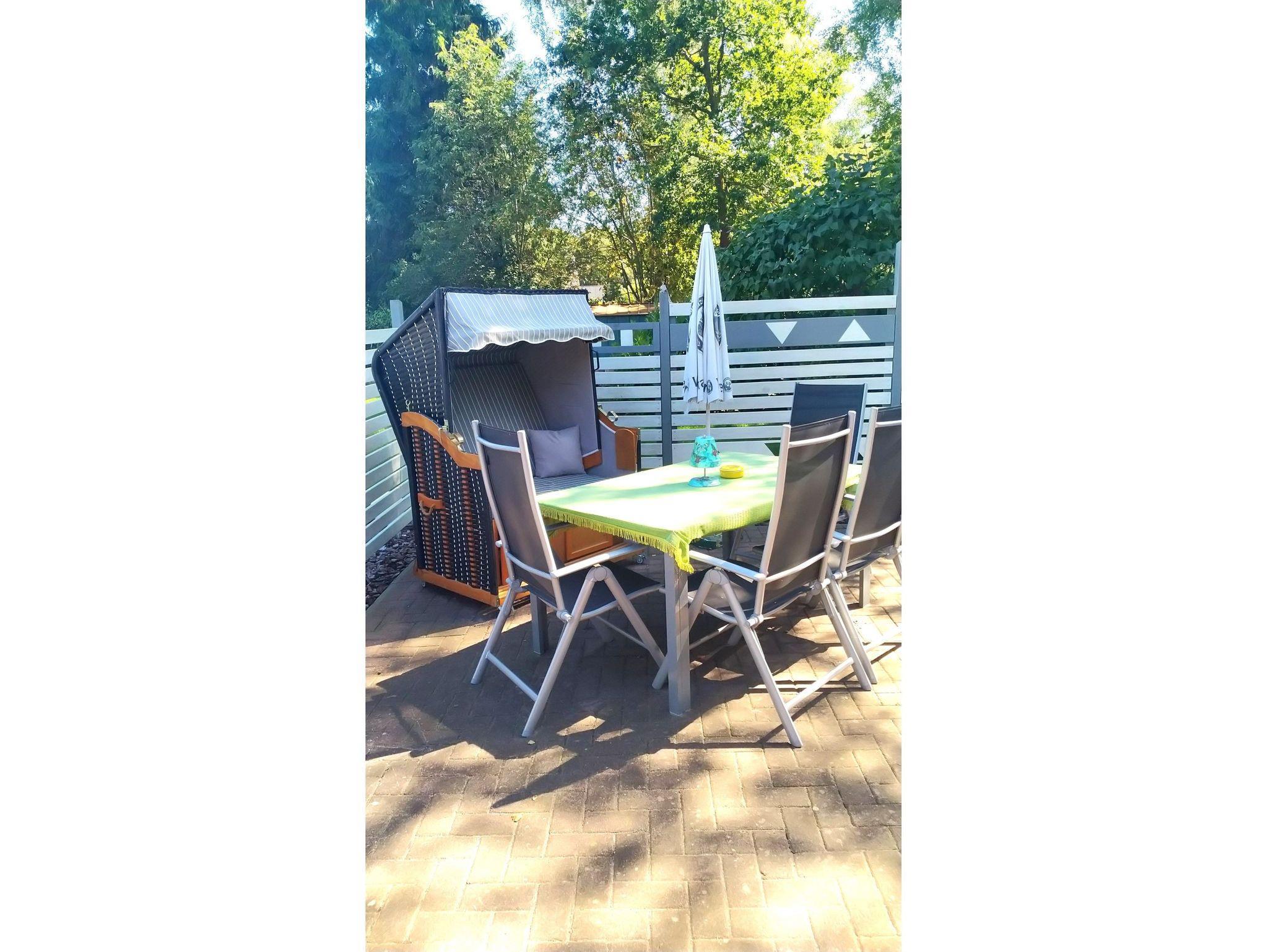 Zur Wohnung gehört eine gemütliche Sitzecke im Garten mit Grillmöglichkeit. Ein PKW- Stellplatz ist auch vorhanden. Unter dem Carport können Sie Ihre Fahrräder unterstellen. Teure E-Bikes können beim Vermieter in der Garage untergestellt werden. Die Wohnung ist für Kleinkinder unter 5 Jahren nicht geeignet.