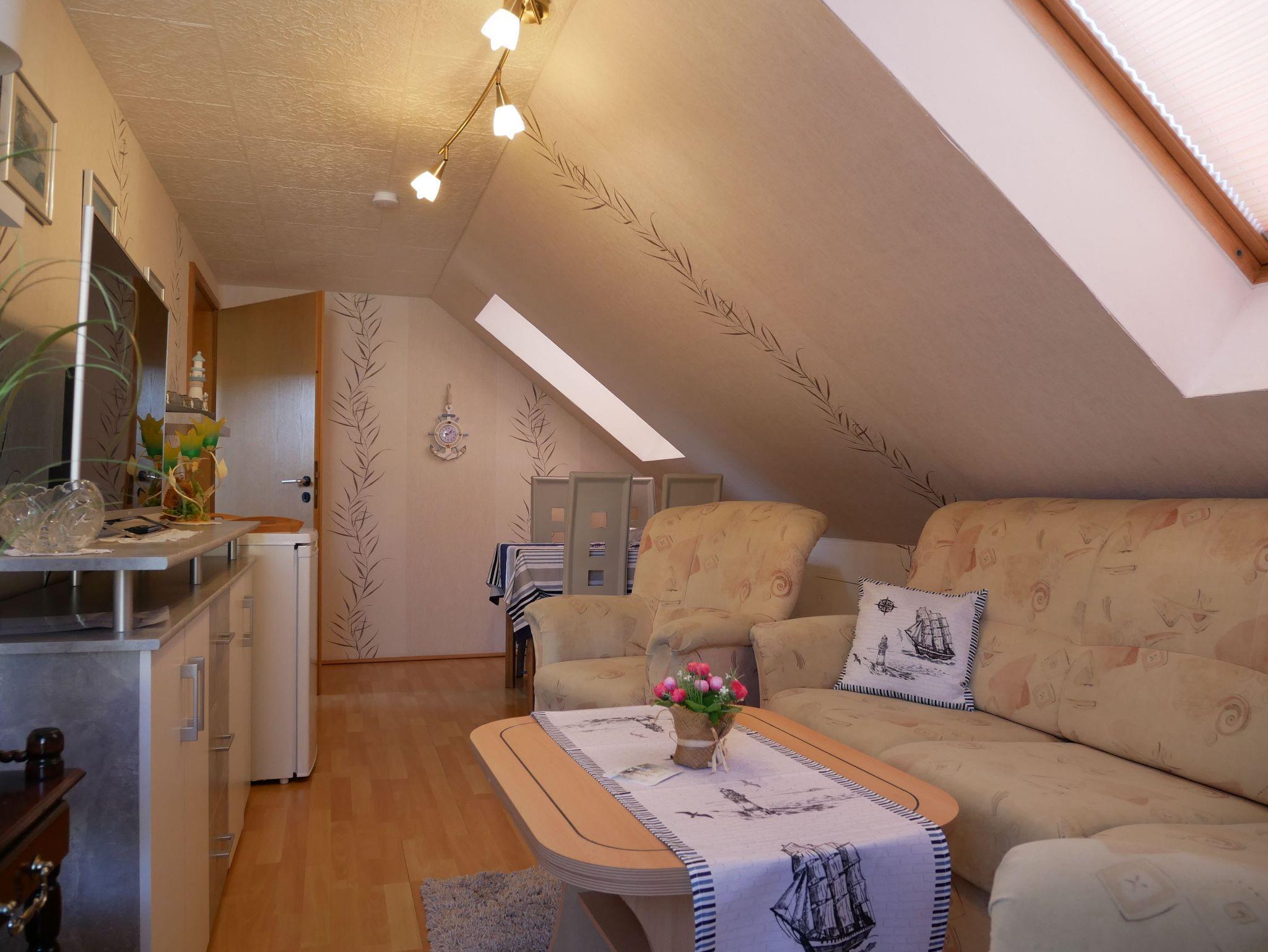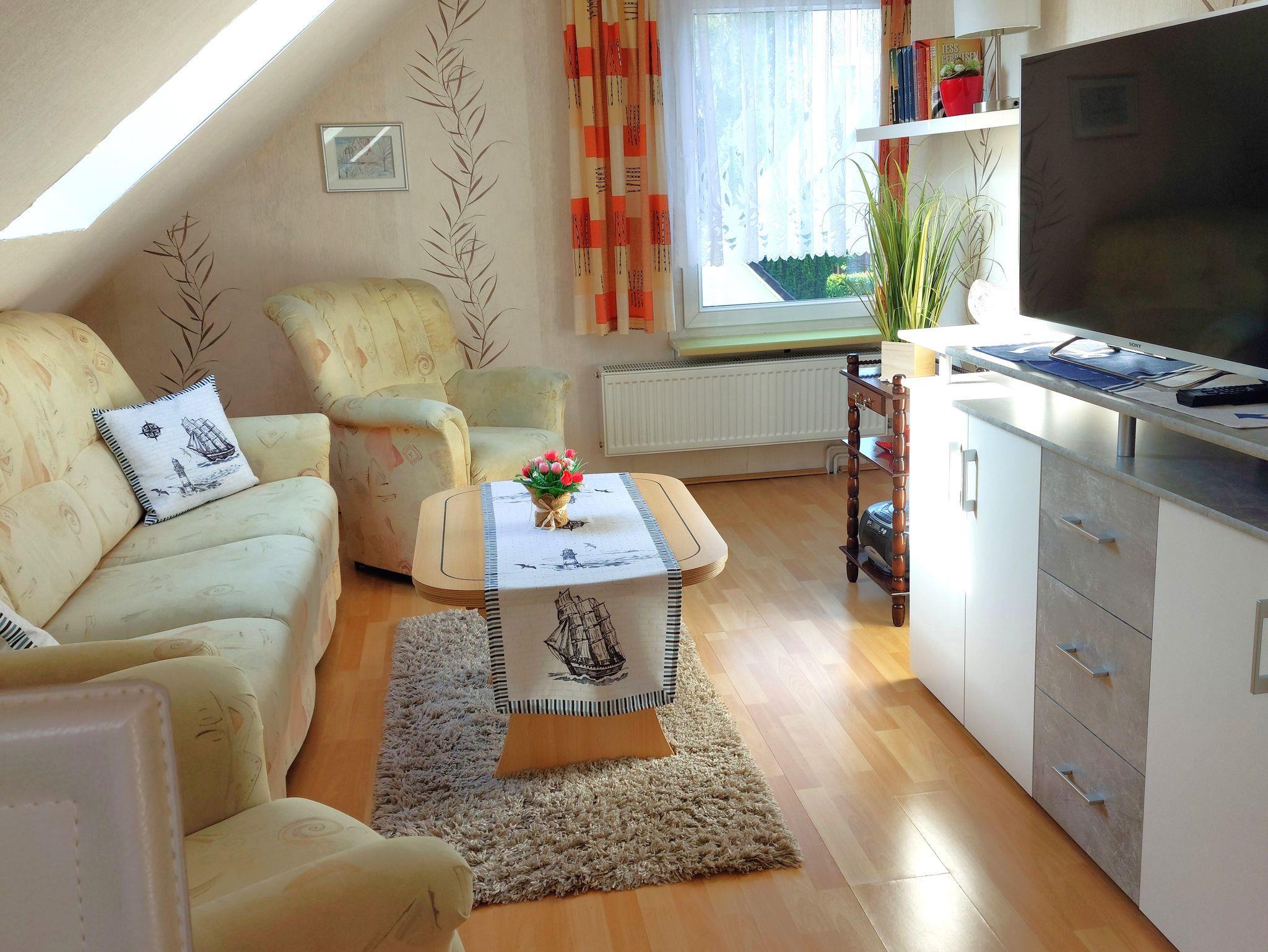 Die 2 Raum Ferienwohnung befindet sich im 1 OG und ist eine Dachgeschoß Wohnung eines Einfamilienhauses im Seebad Trassenheide.