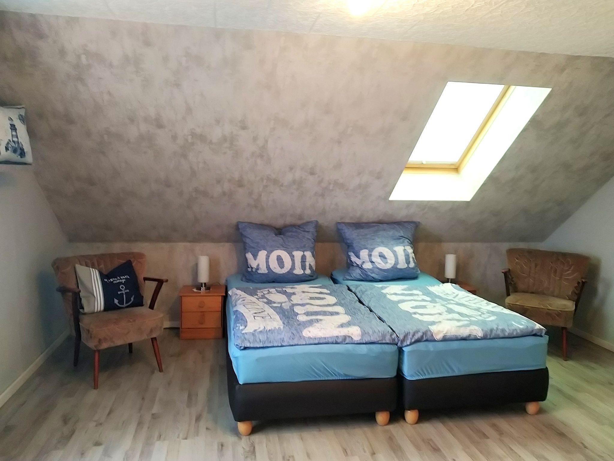 Die 56 qm große 2 Raum Ferienwohnung befindet sich im 1. Obergeschoß mit Dachschrägen. Die Treppe kann durch einen Treppenschutzgitter für Kinder sicher gemacht werden.