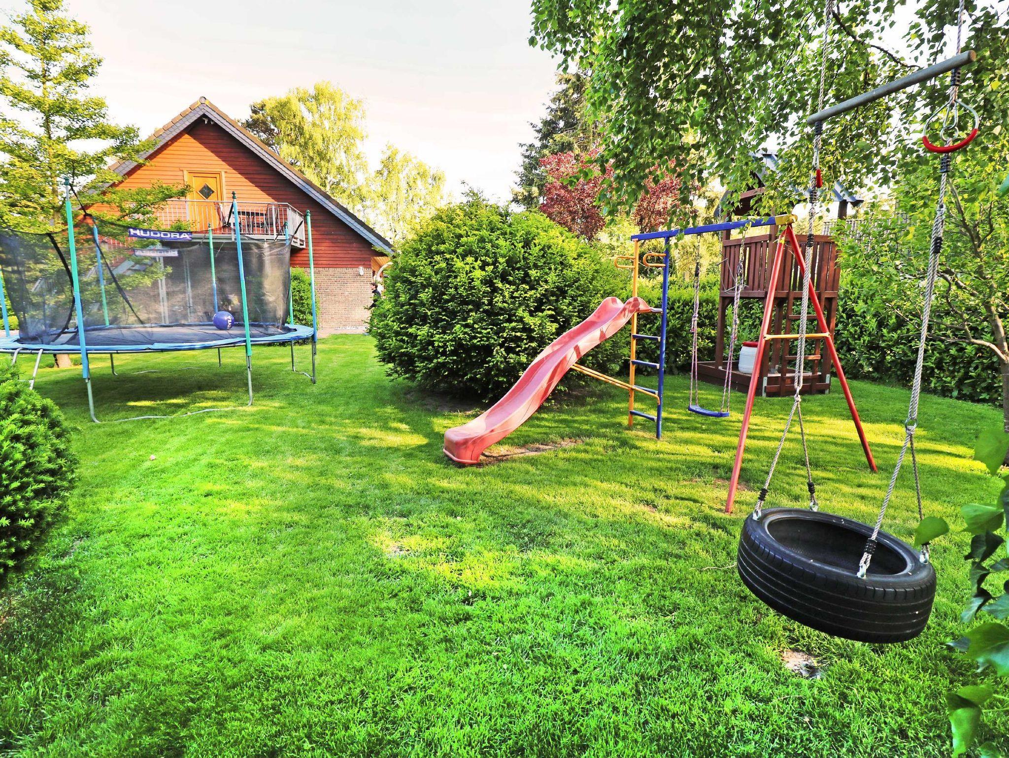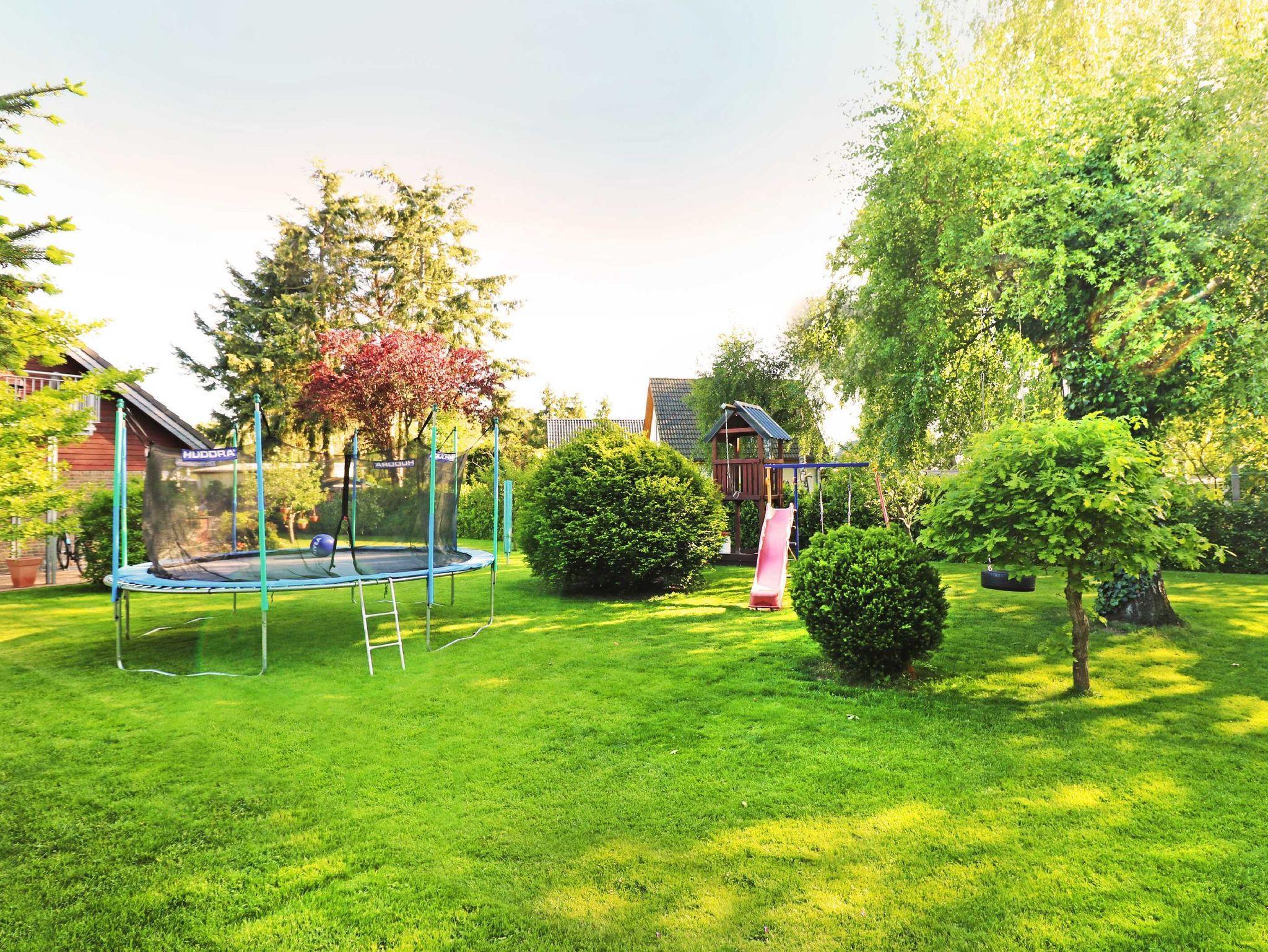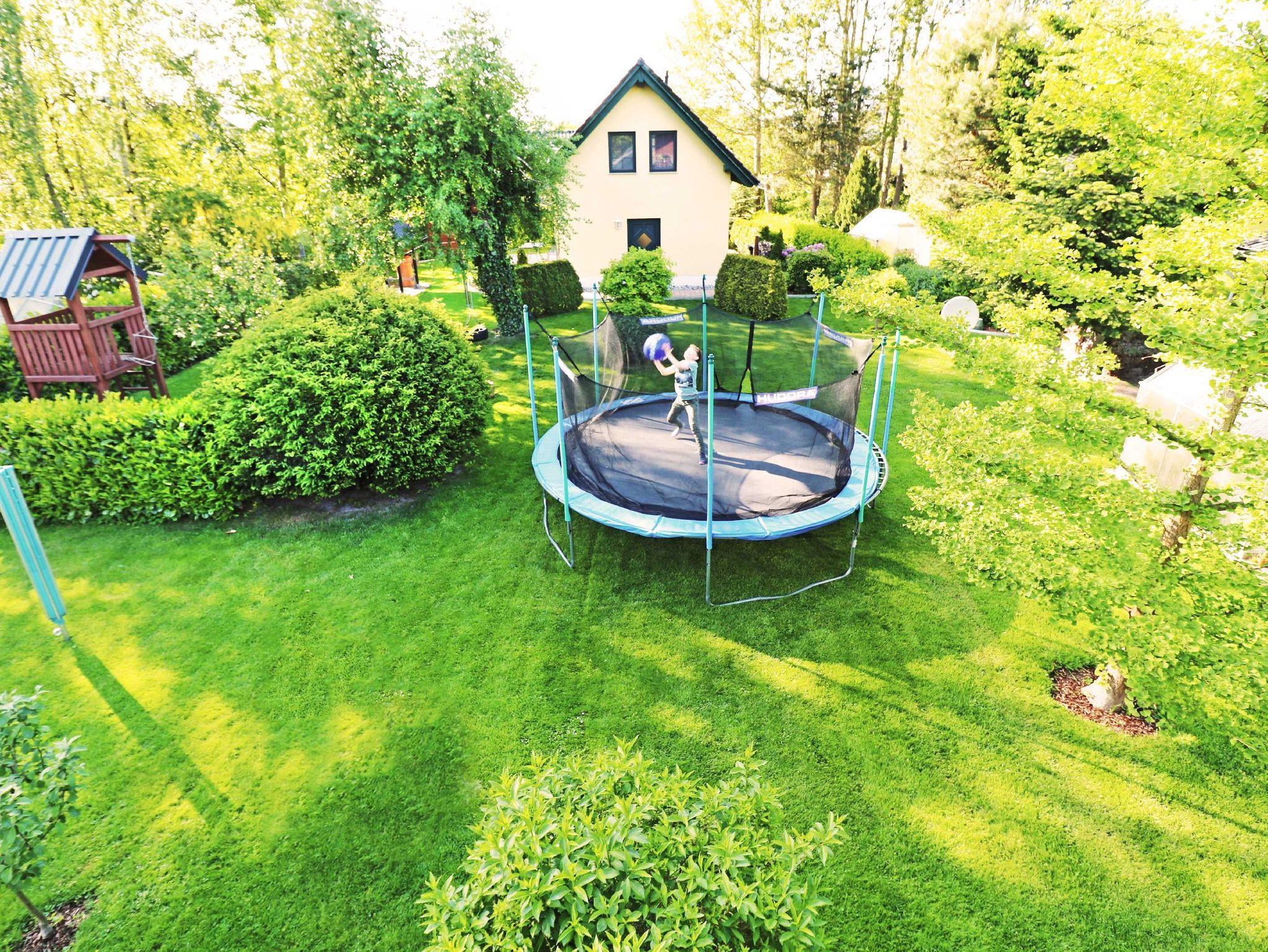 Der vollständig umzäunte Garten, der Spielbereich mit einem Trampolin und einem kleinen Baumhaus kann während Ihres Aufenthaltes von Ihren Kindern genutzt werden. Mit dem nur 1 km entfernten Kinderland ist das Objekt ideal für einen Familienurlaub geeignet. Ein PKW-Stellplatz ist vorhanden.