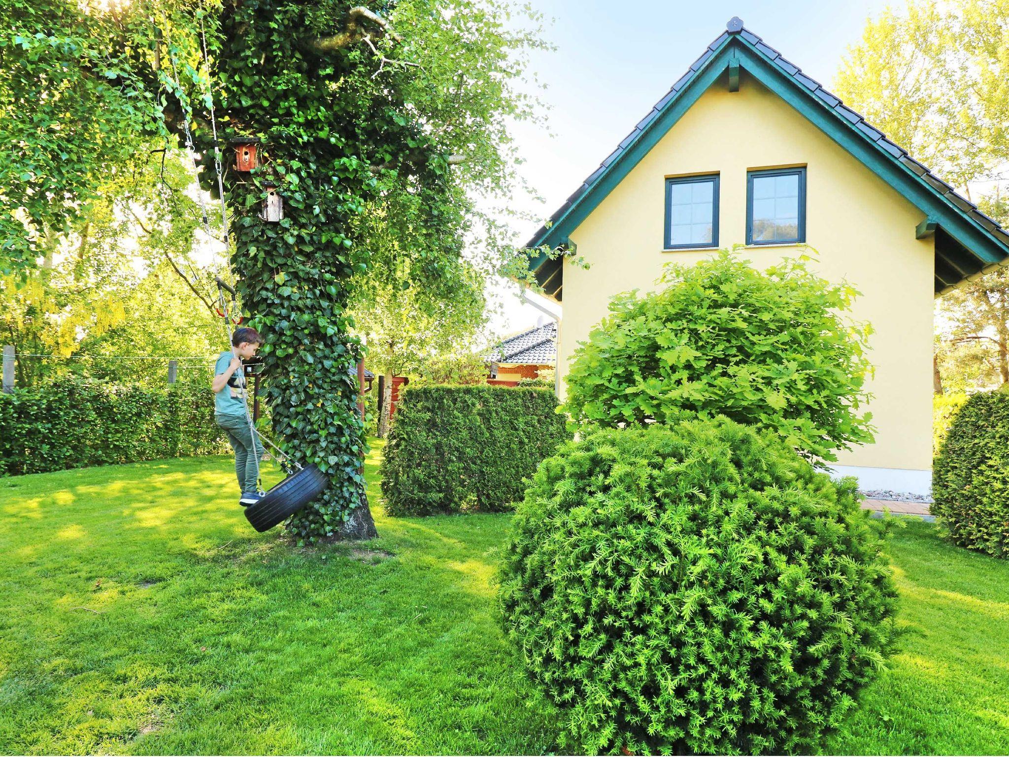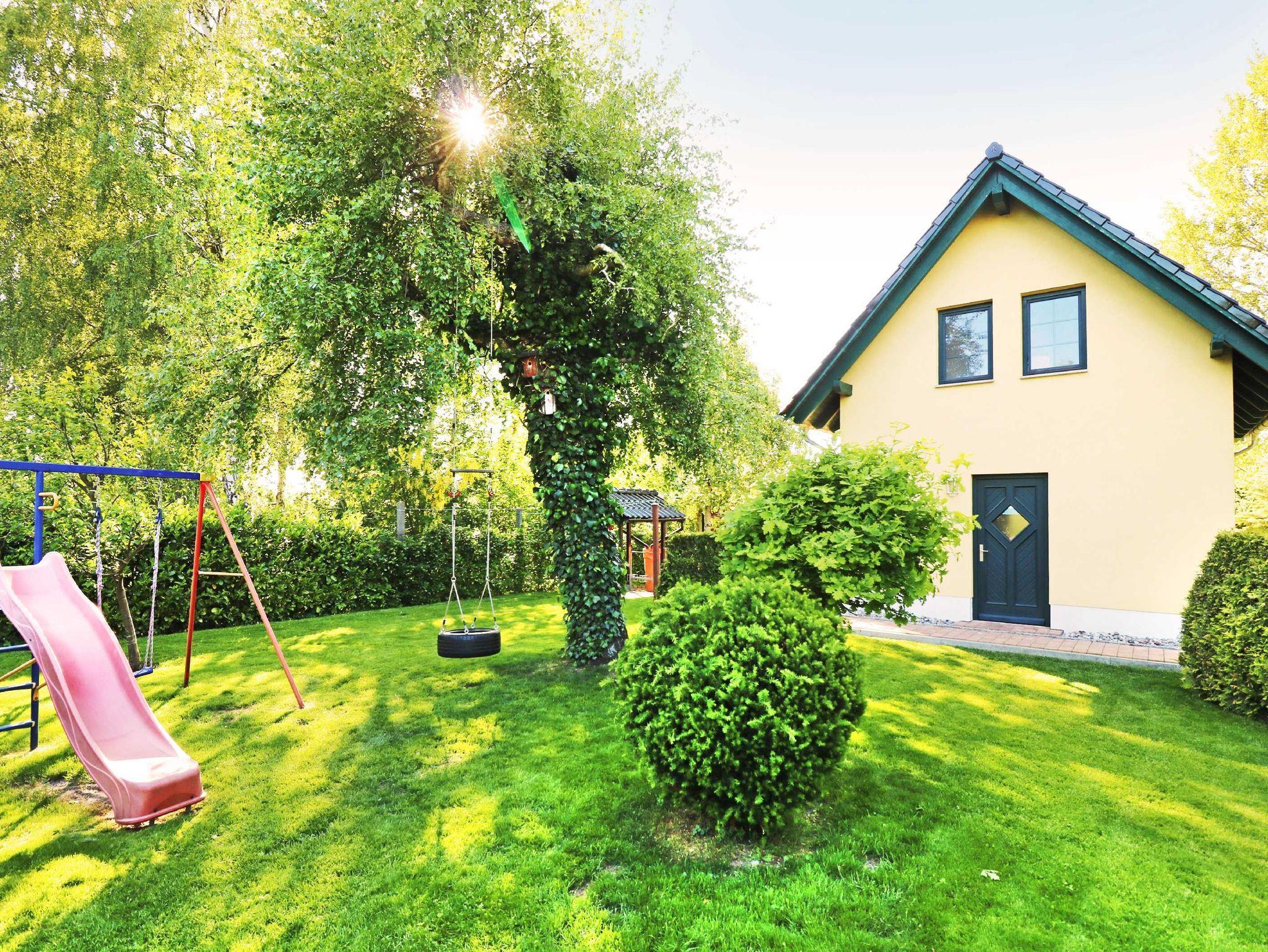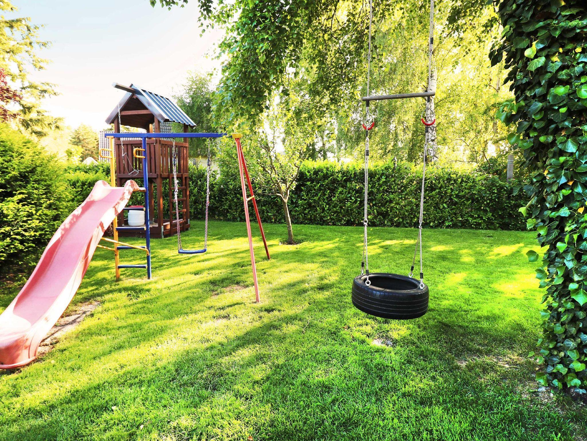 Der vollständig umzäunte Garten, der Spielbereich mit einem Trampolin und einem kleinen Baumhaus kann während Ihres Aufenthaltes von Ihren Kindern genutzt werden. Mit dem nur 1 km entfernten Kinderland ist das Objekt ideal für einen Familienurlaub geeignet. Ein PKW-Stellplatz ist vorhanden.