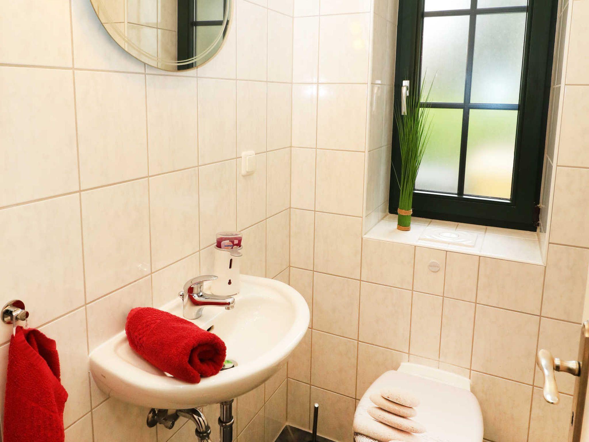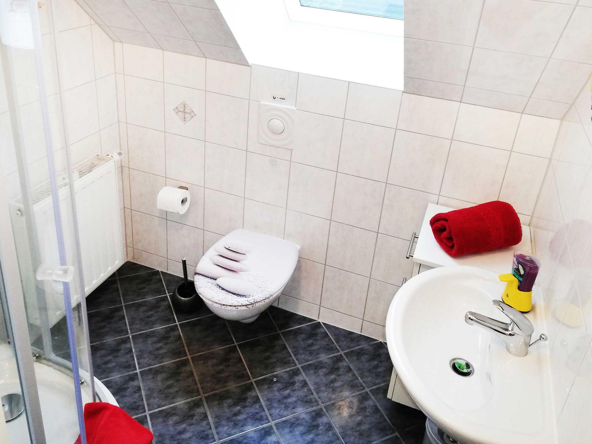 Außerdem befindet sich im Obergeschoss noch ein vollausgestattetes Badezimmer mit einer Dusche und einem WC.