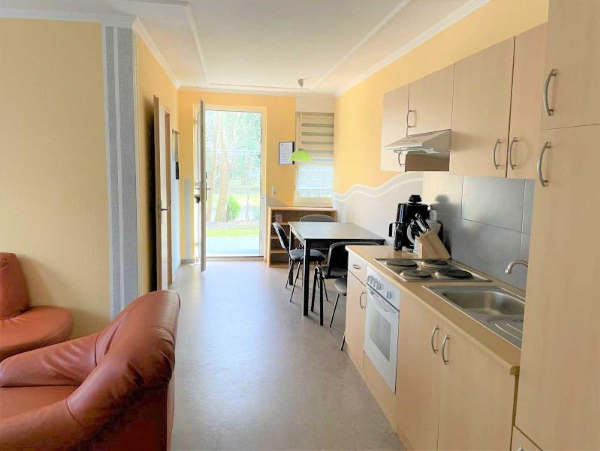 Die Ferienwohnung verfügt über 2 Schlafräume (1x Doppelbett, 1x Etagenbett & 1 Einzelbett und zus. TV), einer voll ausgestatteten Küche mit Backofen, Kühlschrank mit Gefrierfach, Wasserkocher, Toaster und Kaffeemaschine. Der Wohn- und Essbereich verfügt über einen Flat-TV für gemütliche Stunden. Das Badezimmer ist mit Dusche/WC, Waschmaschine und Fön ausgestattet. Die Fußböden sind teilweise mit Teppich im Wohn- und Schlafbereich, mit Linoleum im Küchen- und Essbereich und mit Fliesen im Bad ausgelegt. Die Wohnung hat eine separate Sitzmöglichkeit im Außenbereich. Ein PKW-Stellplatz und WLAN stehen Ihnen kostenfrei zur Verfügung.