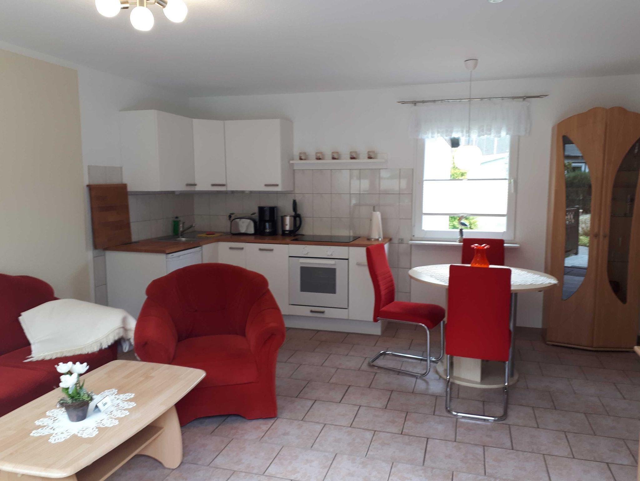 Das Ferienhaus ist ausgestattet mit WC/DU, einem Schlafzimmer für 2 Pers.und eine Aufbettung für eine 3.Person im Wohnzimmer, eine Küche mit Backofen und Spülmaschine , sowie Wohnzimmer mit SAT-TV /Radio. Das Haus hat Heizung (Gasheizung) und eine Terrasse mit Gartenmöbeln. Parkplatz, Grillmöglichkeit sowie Kinderspielplatz mit Tischtennis und eine Liegewiese sind auf dem Grundstück vorhanden.