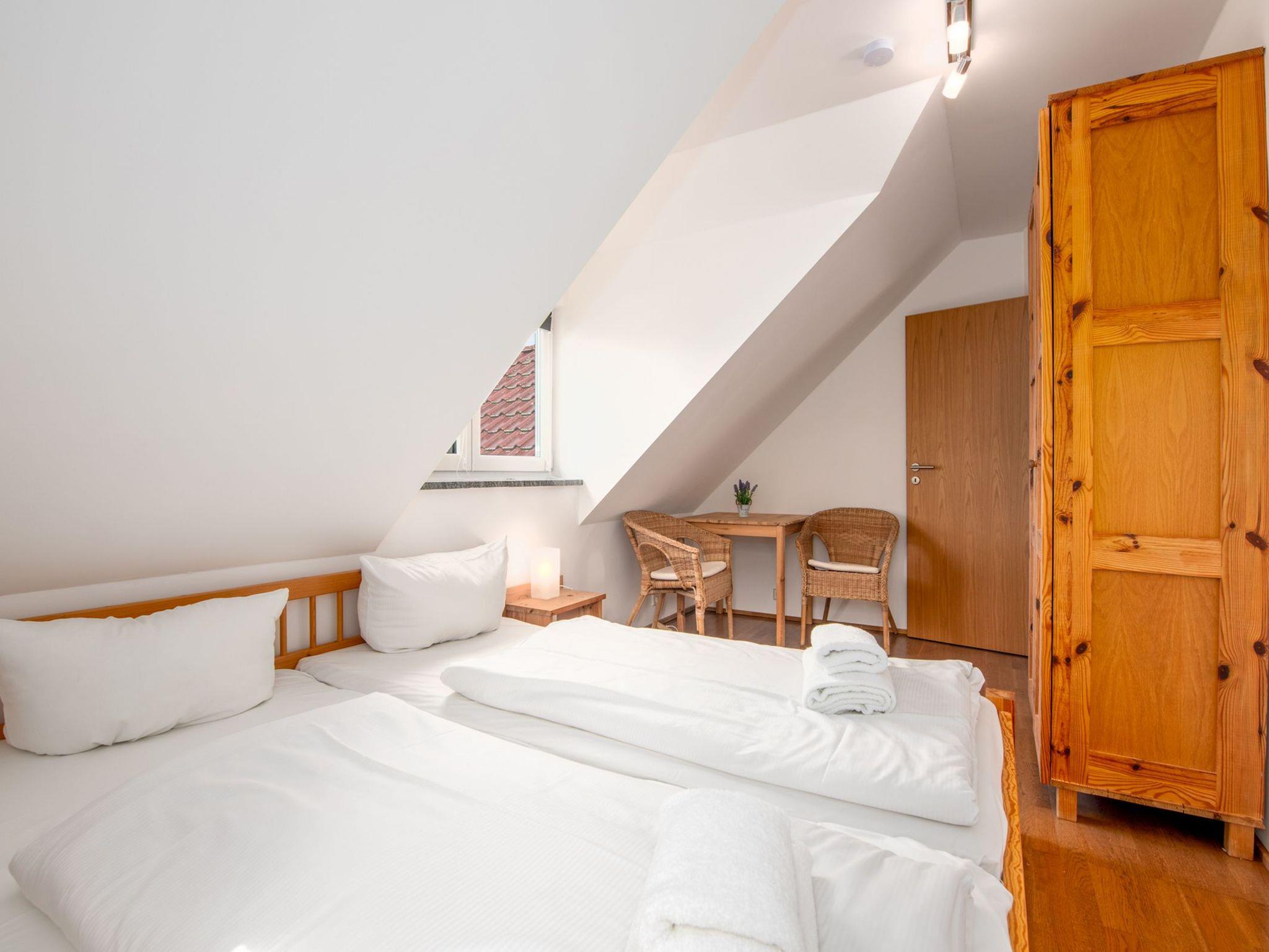 Insgesamt stehen drei separate Schlafzimmer mit Echtholzmöbeln und jeweils einem Doppelbett zur Verfügung. Zwei moderne Badezimmer eines davon mit Sauna sorgen für Komfort und ausreichend Platz für alle Gäste.