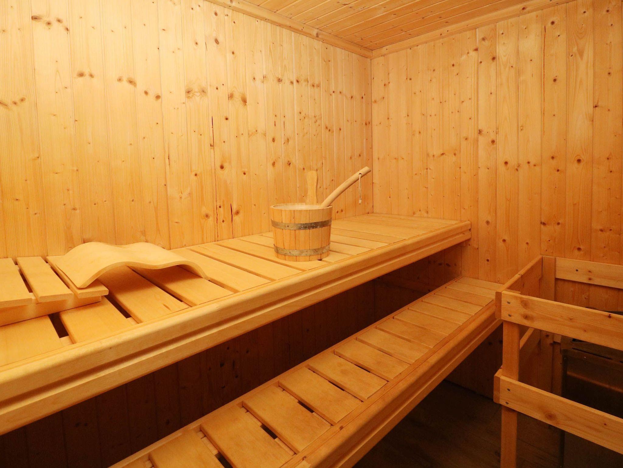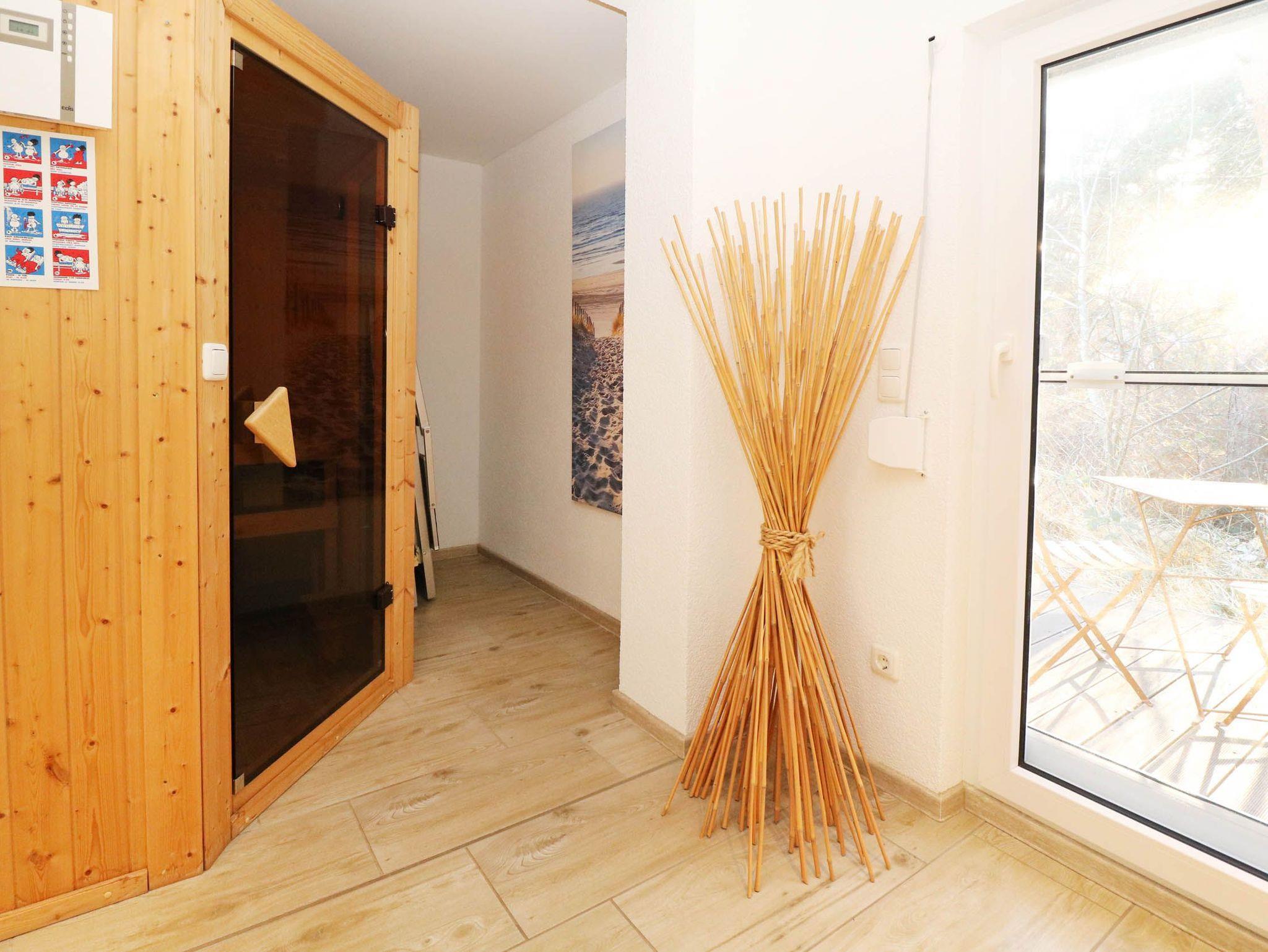Ein weiteres Schlafzimmer mit 2 Einzelbetten sowie ein eigenes Dusch-Bad stehen Ihnen im Hinterhaus zur Verfügung. In diesem Gebäude befindet sich auch eine Sauna mit Ruheraum.