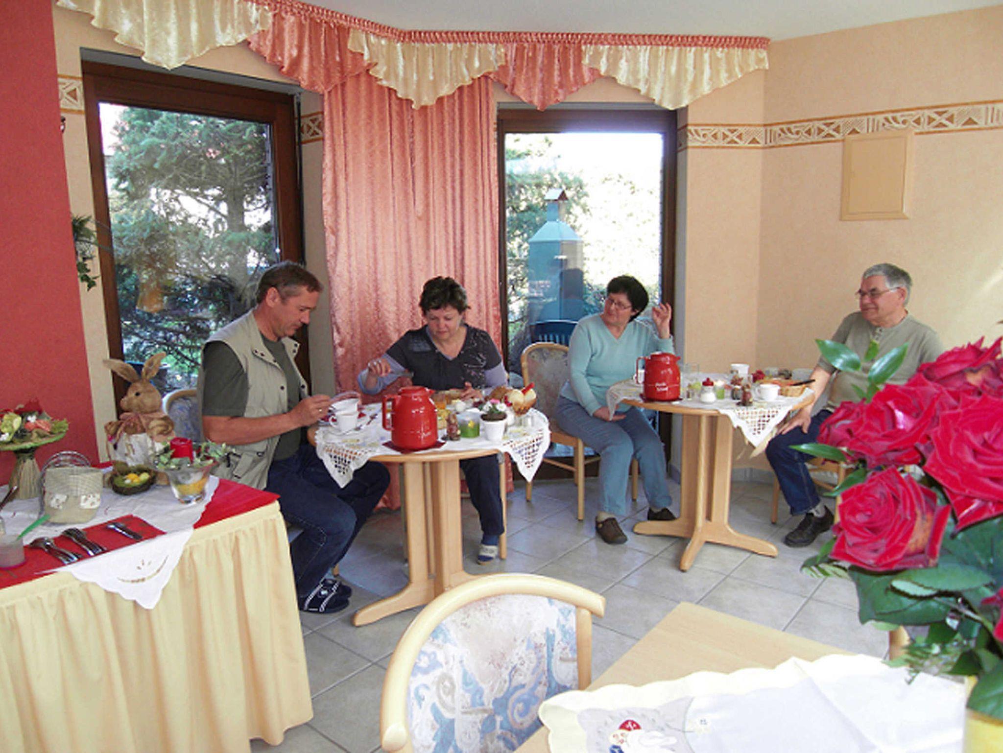 Nichtraucherzimmer; Raucherzimmer,gebuchtes Zimmer mit Haustier nach telefonischer Absprache durch Zimmerwechsel möglich. TV- und Telefonanschluß, Sitzgruppe mit Tisch und teilweise eine zusätzliche Couch, Doppelbett mit Bandscheibenmatratzen, DU/WC gefliest, ruhige u. sonnige Lage, inklusive Bettwäsche und Handtücher. Behindertenfreundlich und teilweise Rollstuhlgerecht dazu bitte vorher anfragen. W-LAN verfügbar. Frühstück auf Wunsch im Kaminzimmer.