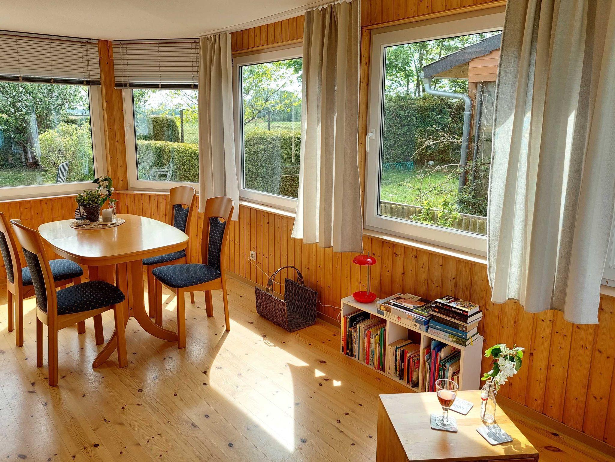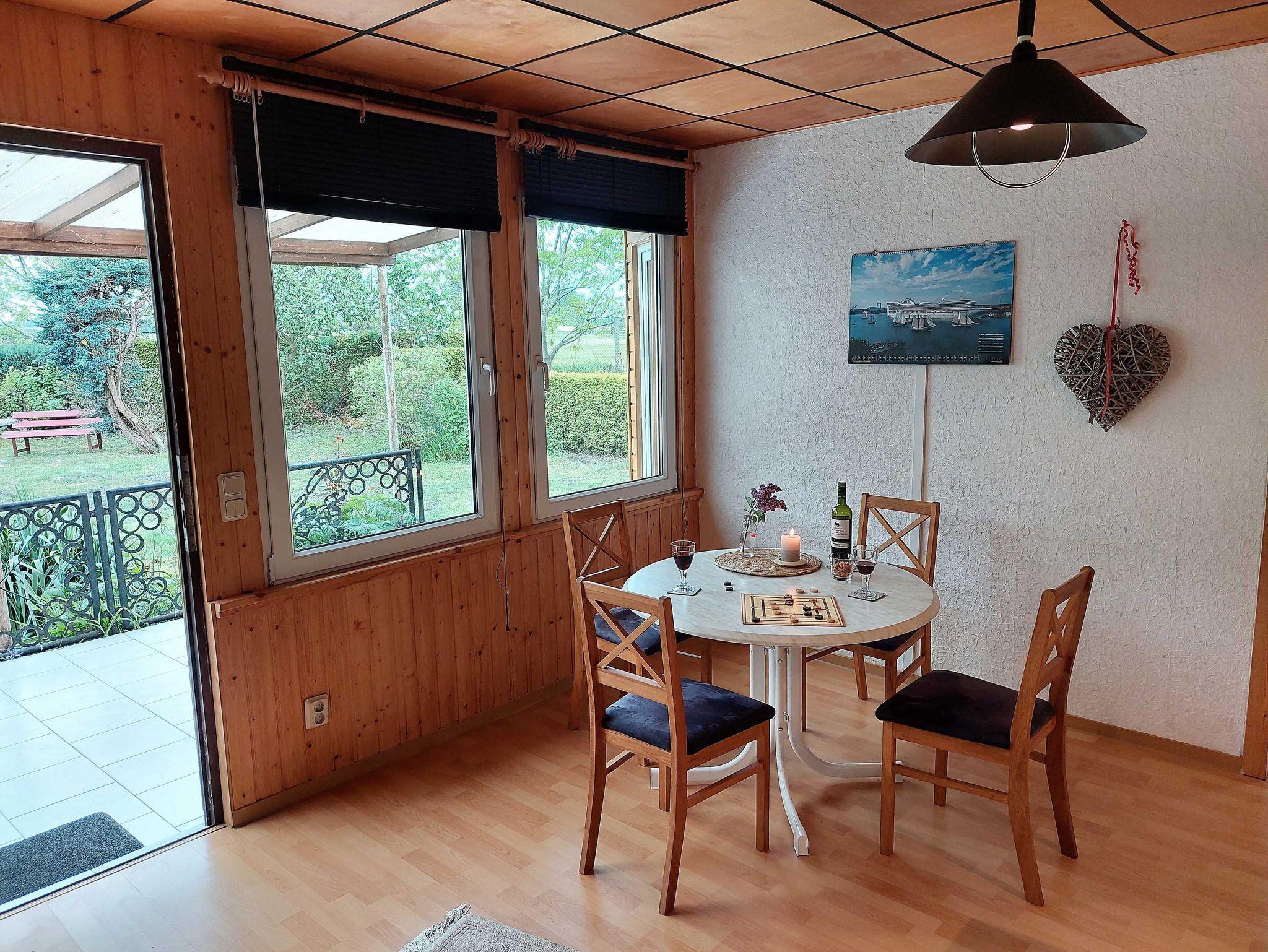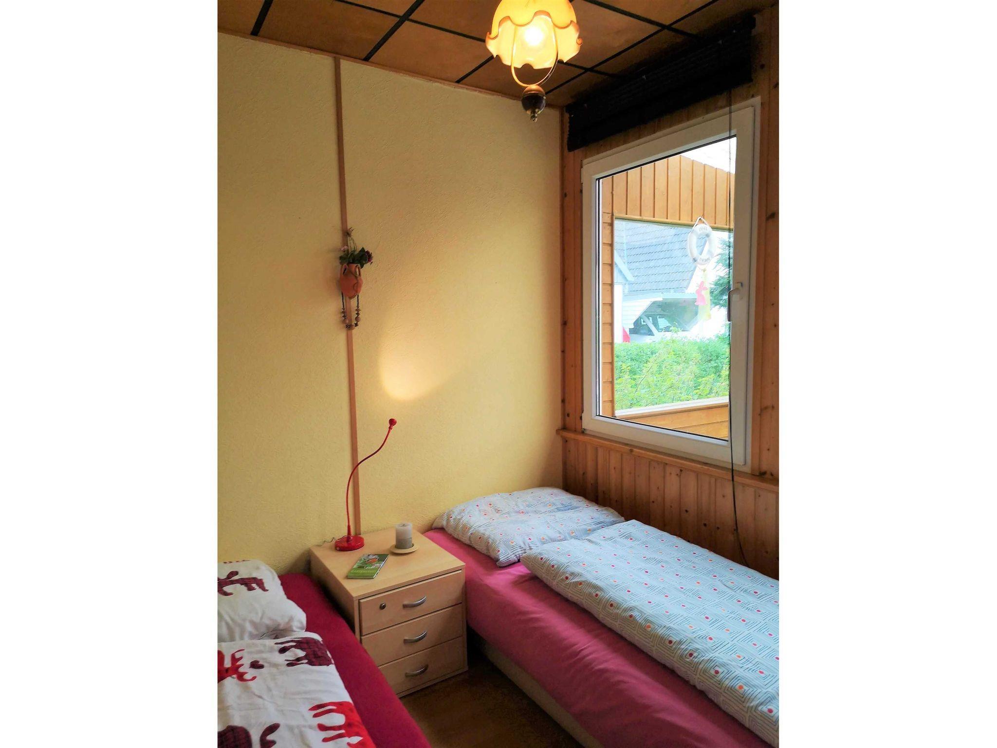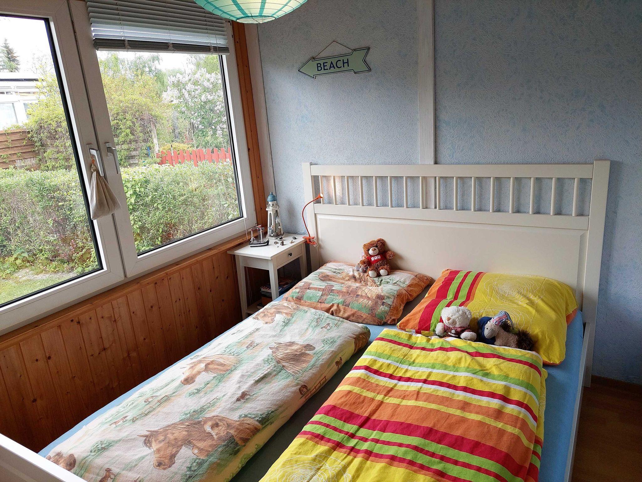 Der ca. 50qm große, liebevoll ausgestattete Bungalow verfügt über eine große überdachte Terrasse auf der Südseite. Der Wohn-Essbereich ist mit einer Couch (Aufbettungsmöglichkeit für die 5.& 6. Person, Liegefläche ca. 1,60x2,00m), Flat-TV, Esstisch und offener Küche mit Backofen, Kochfeld, Geschirrspüler und Kühlschrank mit 1*Gefrierfach ausgestattet. In den zwei separaten Schlafzimmern finden Sie einmal zwei verschiebbare Einzelbetten und in dem anderen Schlafzimmer ein Doppelbett. Das Badezimmer verfügt über Dusche/WC und Haartrockner. Der großzügige Garten bietet viel Platz zum Spielen und Erholen.