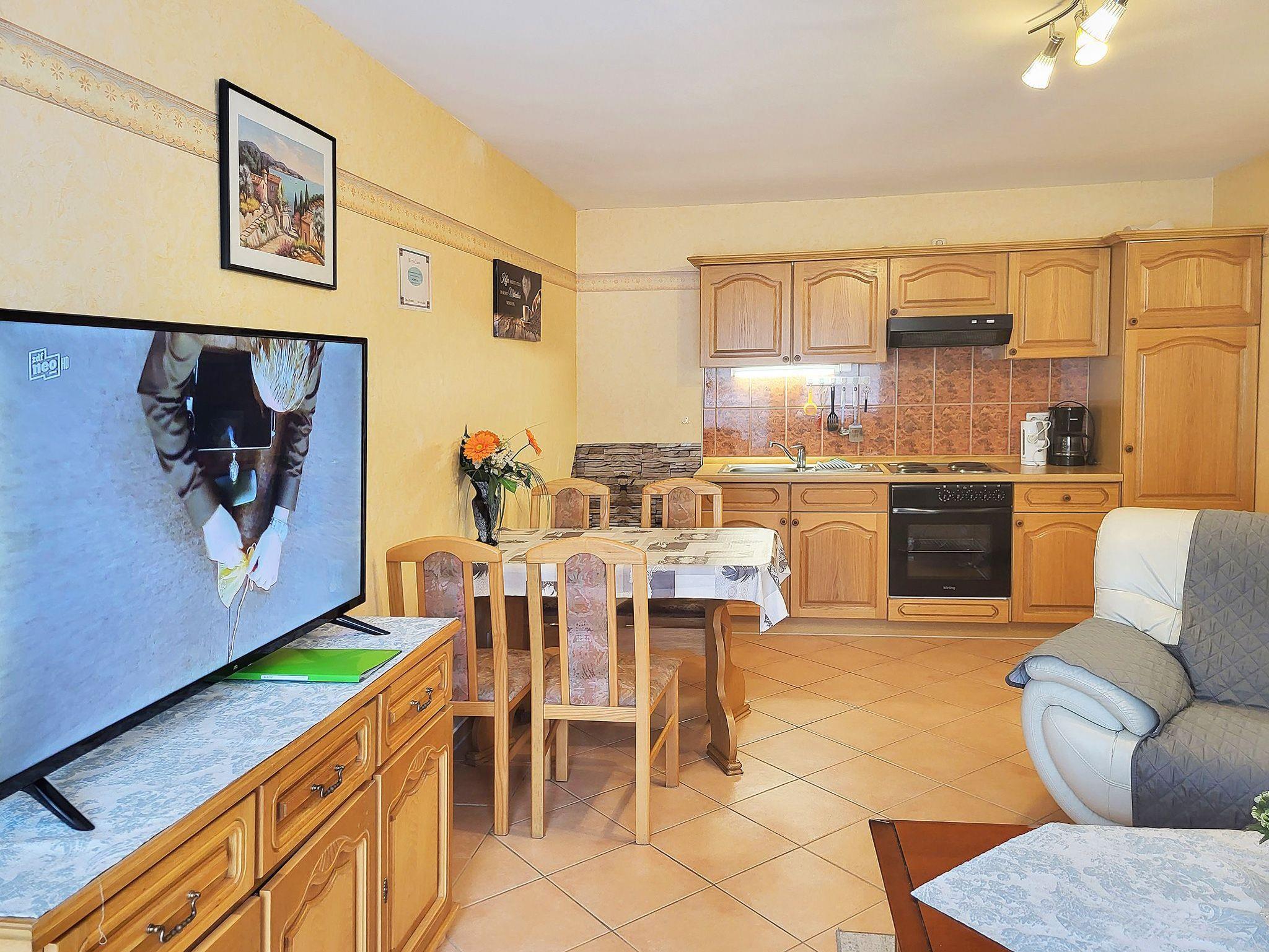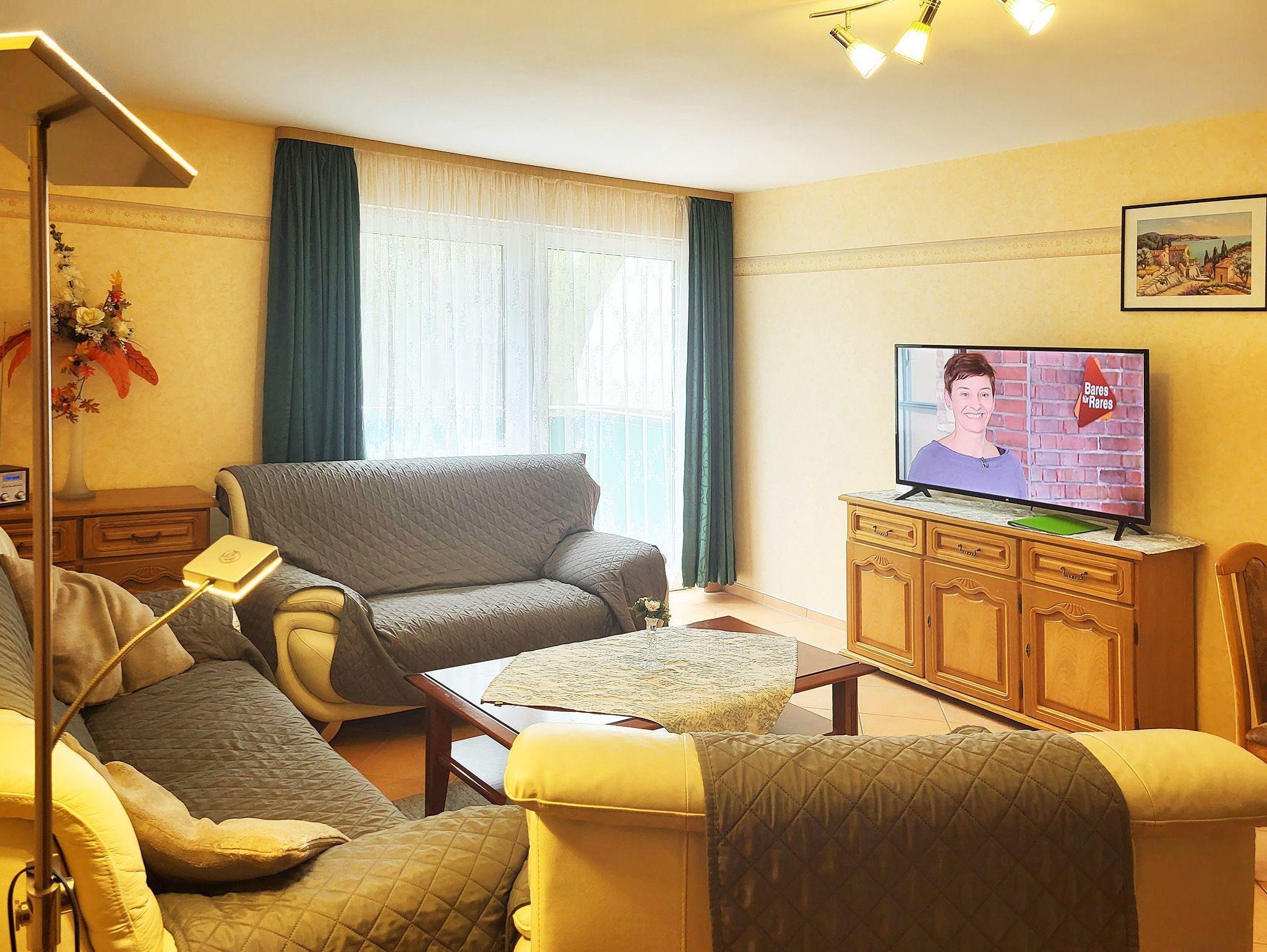 3 Raum-Wohnung mit 2 Schlafzimmer, mit DB und 1 EB (Aufbettung), Wohnzimmer mit Küchenzeile, Bad mit Dusche/WC, Flur, Balkon. Haustiere nur auf Anfrage! Frühstücksbüfett mit Voranmeldung möglich und auch Abendessen à la carte.