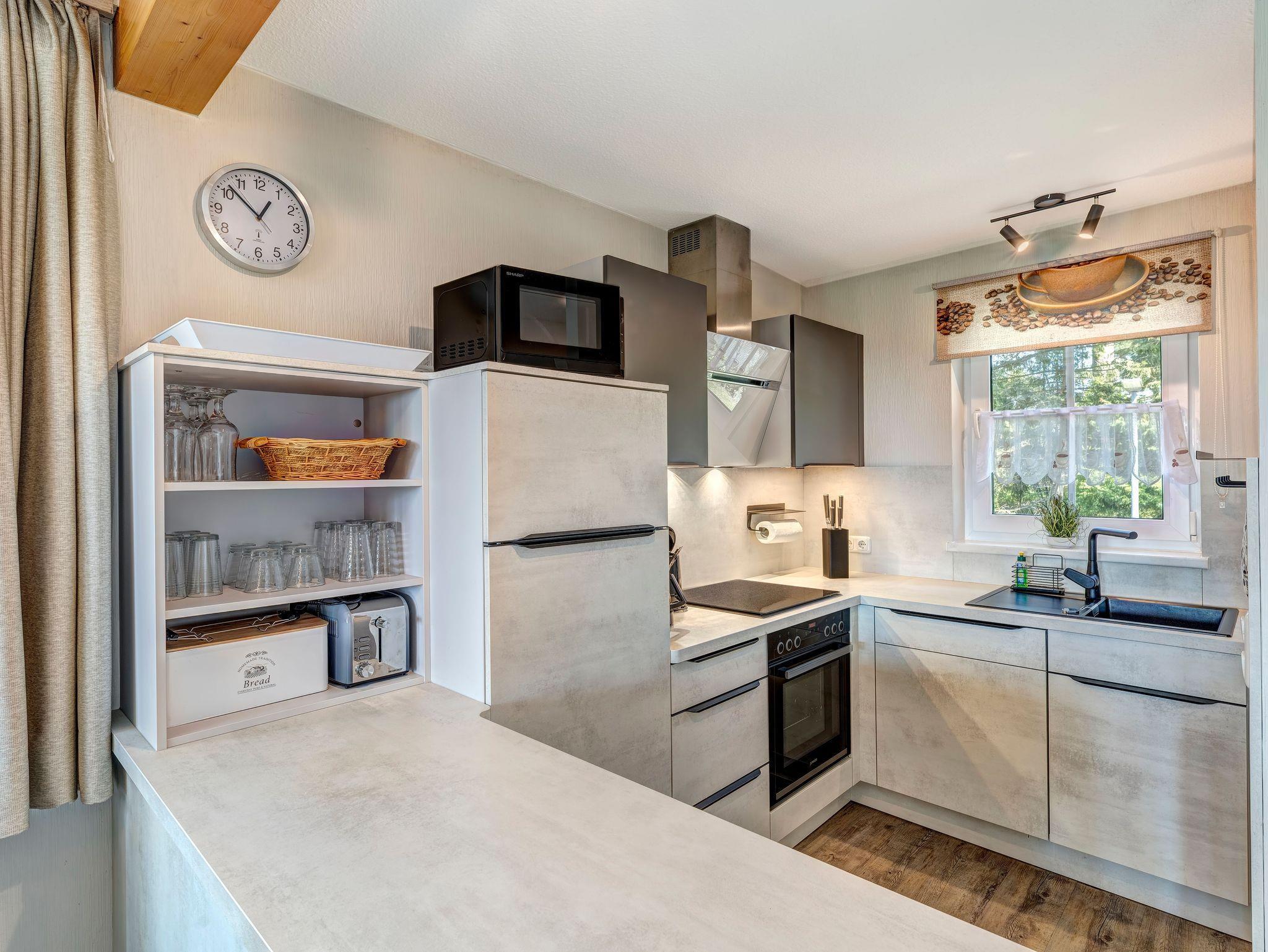 Die Küche bietet Geschirrspüler, Mikrowelle, Kaffeemaschine, Wasserkocher ect. und eine Grundausstattung mit