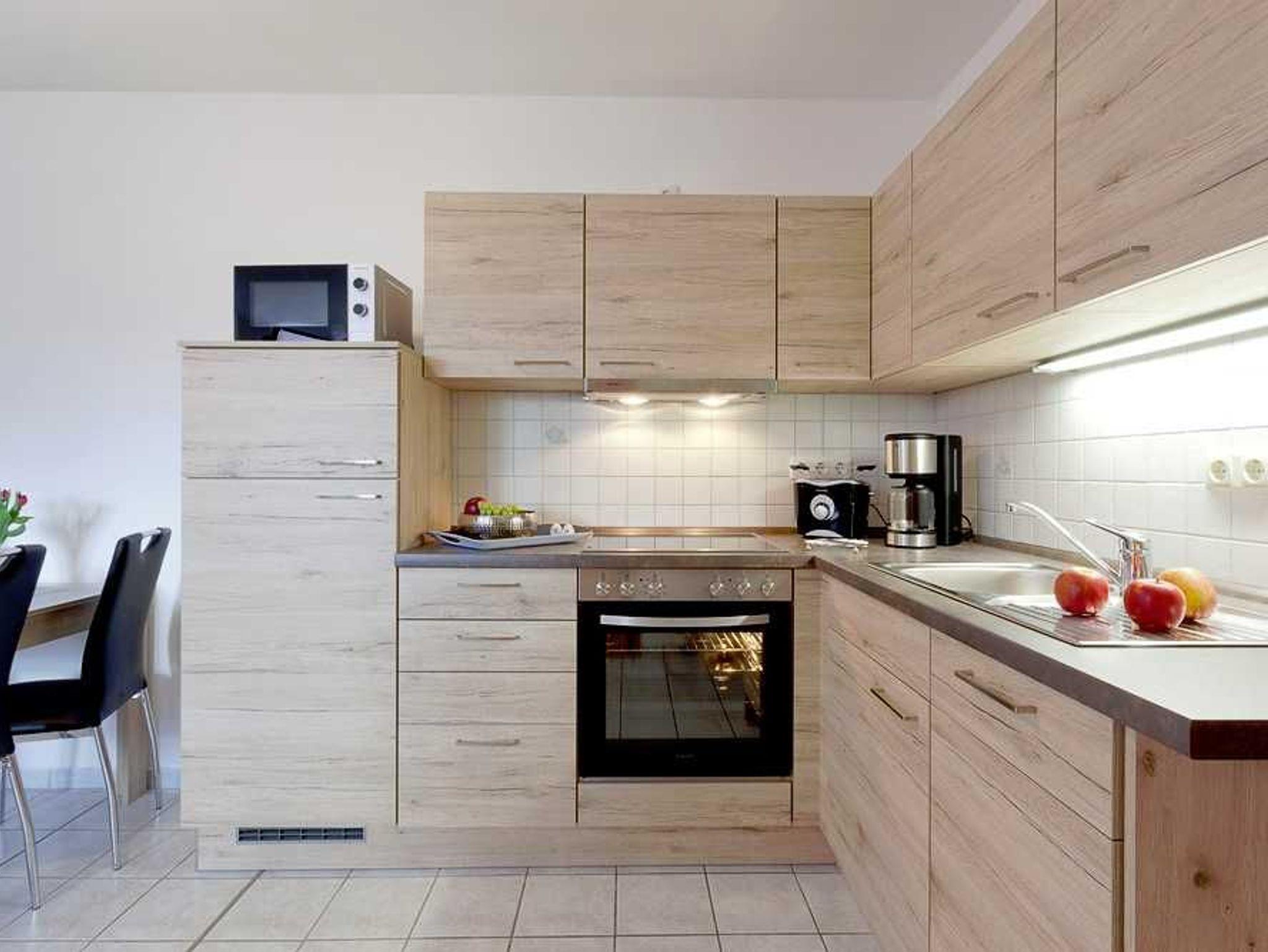 Die Wohnung befindet sich im EG und verfügt über Wohnzimmer mit Flachbildschirm, Sofa, Sssel, Leselampe. Schlafzimmer mit Doppel- und Einzelbett, DU/WC, Küche mit Kühlschrank inkl. Gefrierfach, Cerankochfeld, Backofen, Geschirrspüler, Mikrowelle, Kaffeemaschine, Wasserkocher, Toaster, Koch- und Eßgeschirr. Die Wohnung hat, außer im Schlafzimmer, Fußbodenheizung. Das Aufstellen eines Reisebettchens ist leider nicht möglich. Zur Wohnung gehört eine möblierte Terrasse im Garten dazu, mit einem freien Blick über die Wiesen. Der Parkplatz kostet 1,00 € die Nacht und befindet sich auf dem Grundstück! Ein Kinderbettchen kann nicht aufgestellt werden. Kinder ab 3 Jahren sind gestattet.