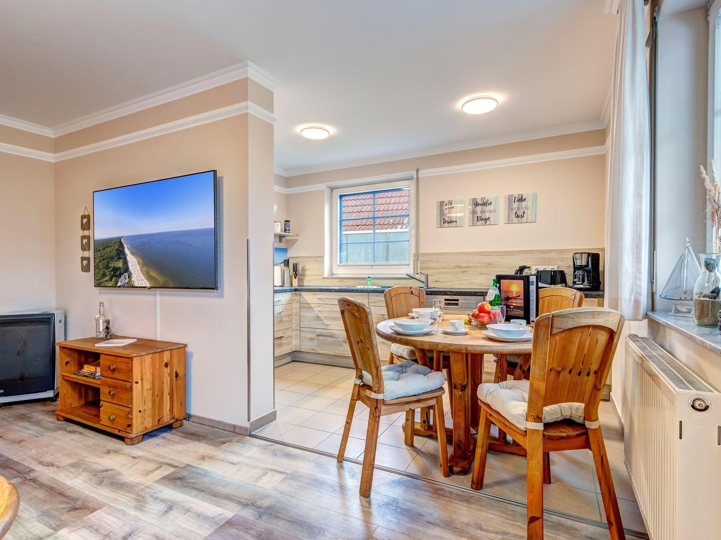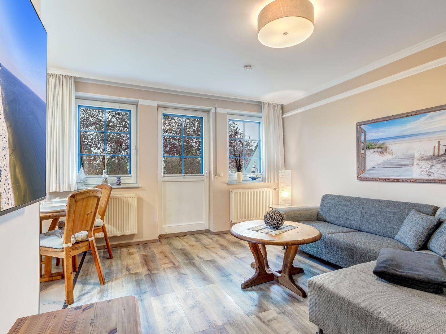 Genießen Sie Ihre Urlaubszeit in einem hellen, gemütlichen Wohnbereich oder auf der großzügigen, geschützten Terrasse, wo Sie die frische Luft in vollen Zügen auskosten können.