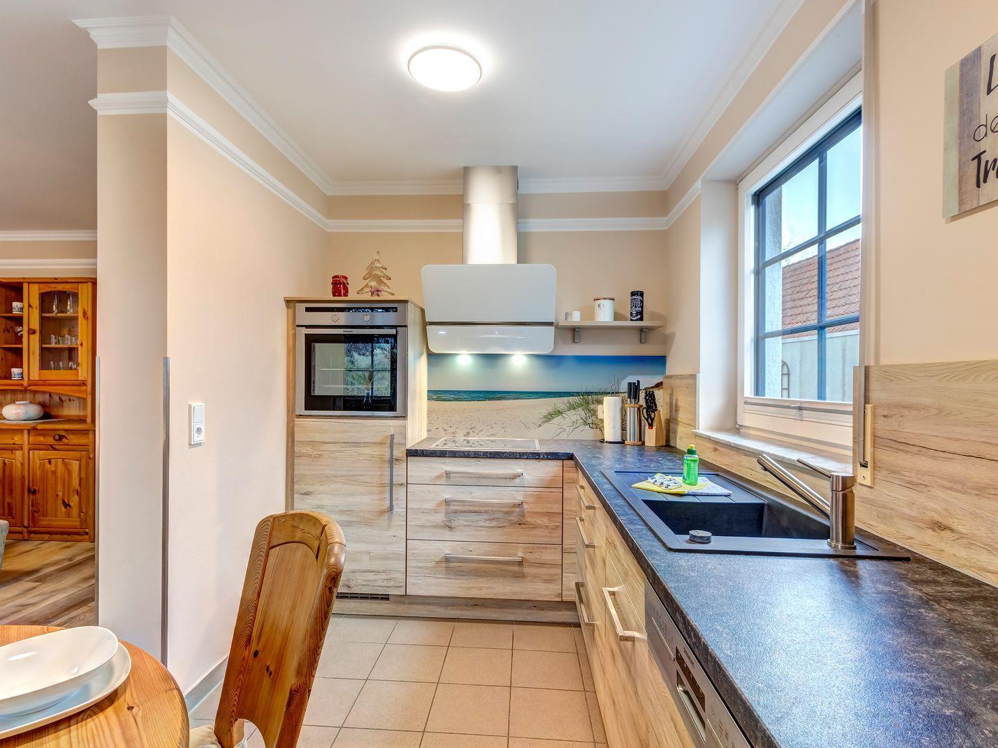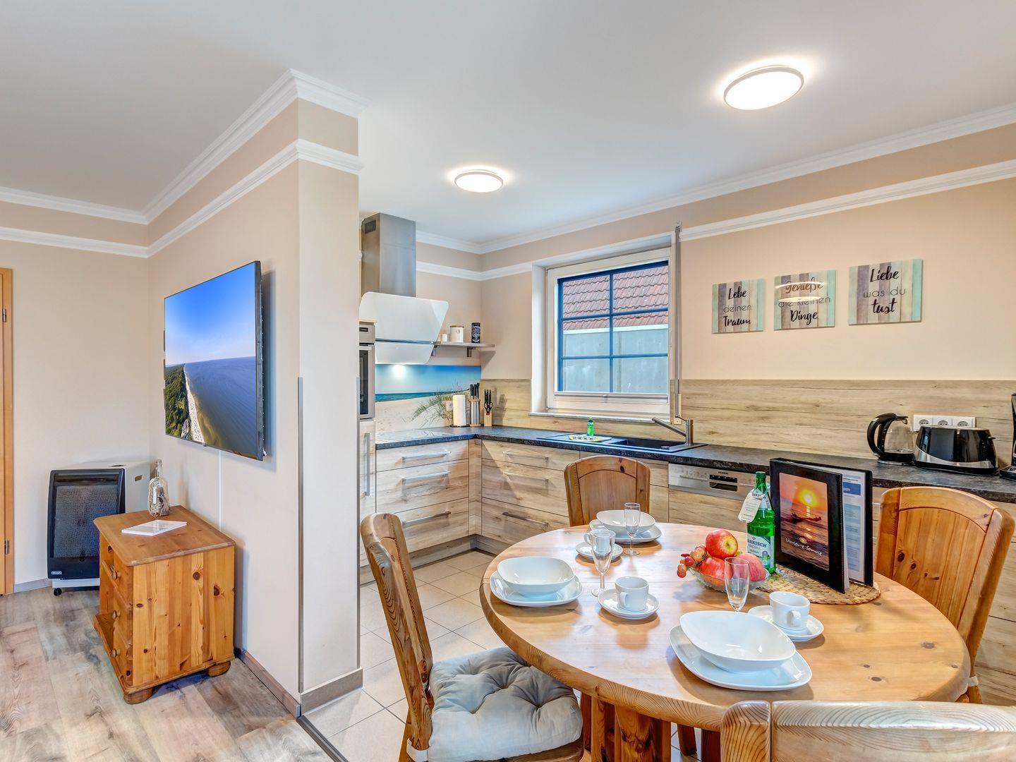 Die moderne Küche ist hochwertig ausgestattet und lädt zum gemeinsamen Kochen ein. Ergänzt wird das Angebot durch ein Duschbad mit einer praktischen Waschmaschine für zusätzlichen Komfort.